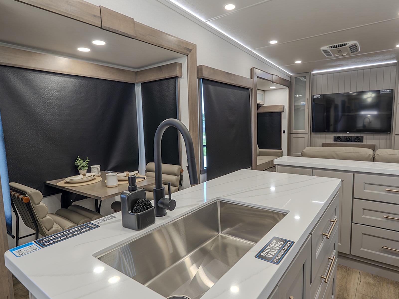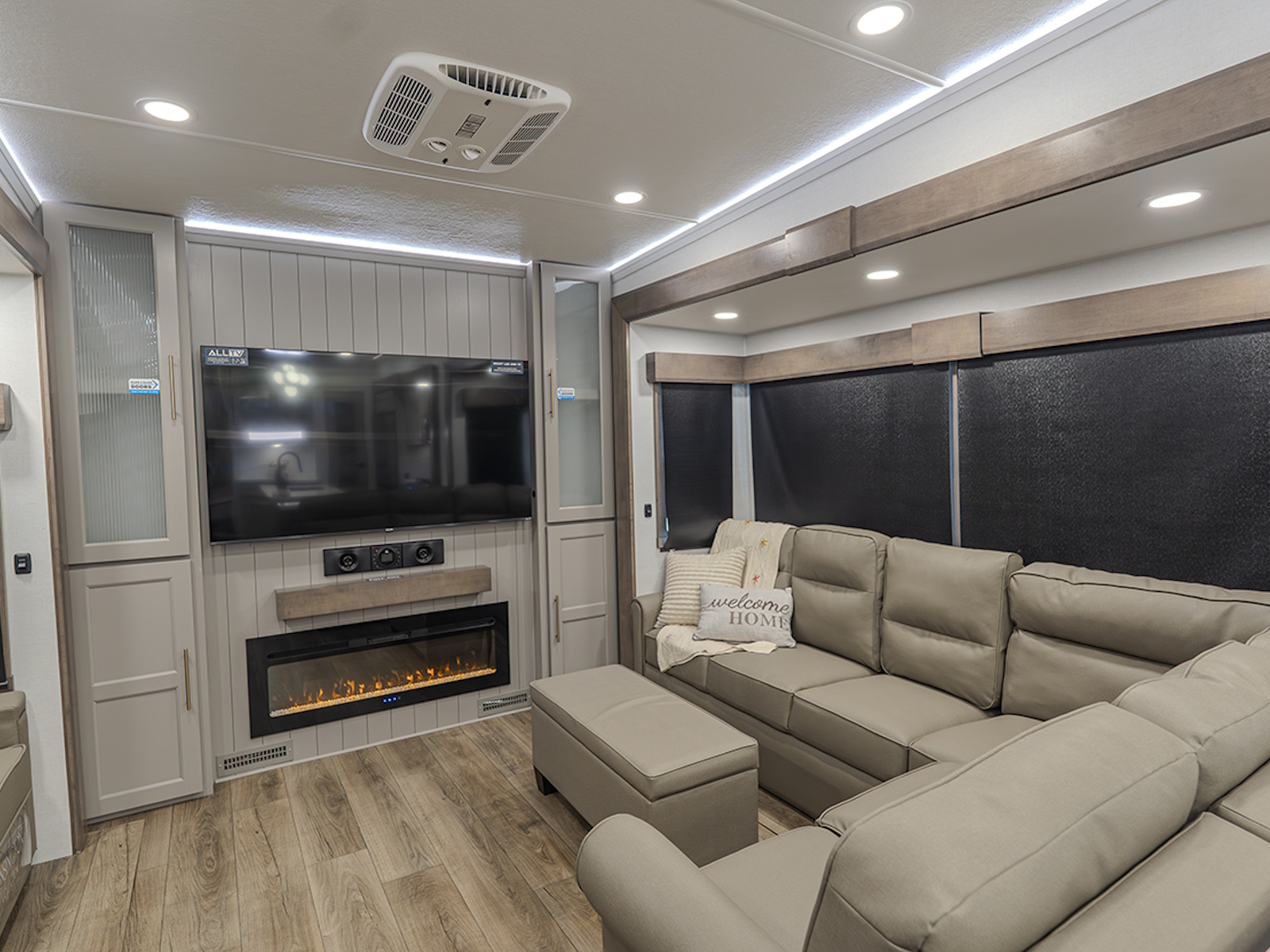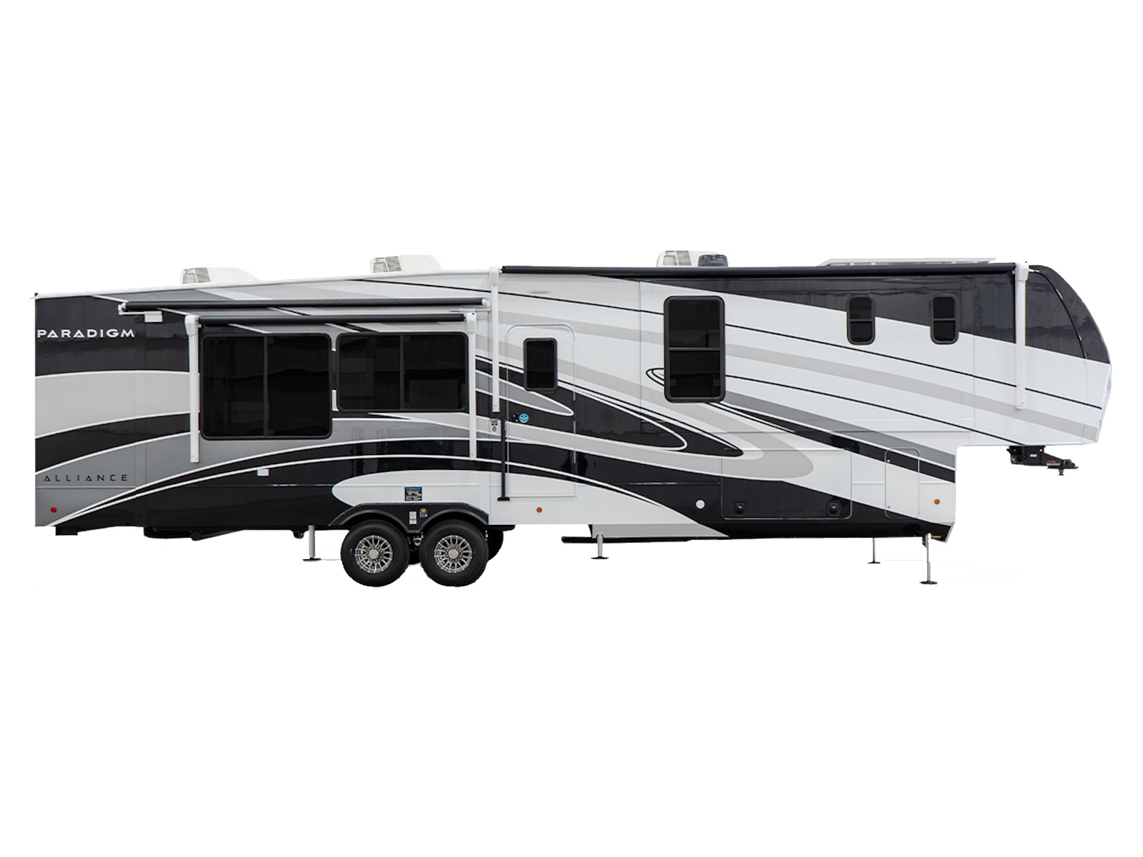 The Alliance RV Paradigm 375RD fifth wheel combines luxury, space, and functionality, making it perfect for both long-term travel and full-time living. With five slide-outs, this model provides unparalleled space and comfort, giving you the freedom to stretch out and relax wherever you go.