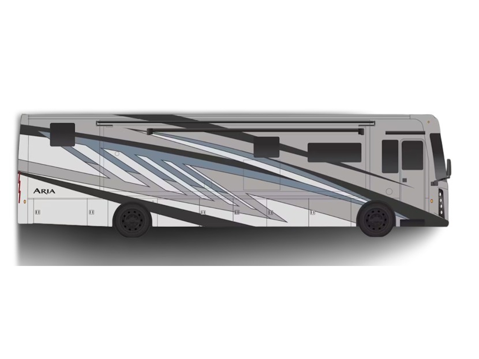 - Aria is the perfect Class A motorhome for full-time travel. With the large basement pass-through storage compartments, you can easily store all your gear and travel necessities, thanks to the easy-slide trays and plenty of space. Once you’ve found the perfect camping spot, unwind under the powered patio awning and enjoy the great outdoors with your favorite film on the exterior 40-inch TV and Bluetooth® soundbar. Grill up your favorite meals using the external LP connection, and enjoy your evening outdoors.