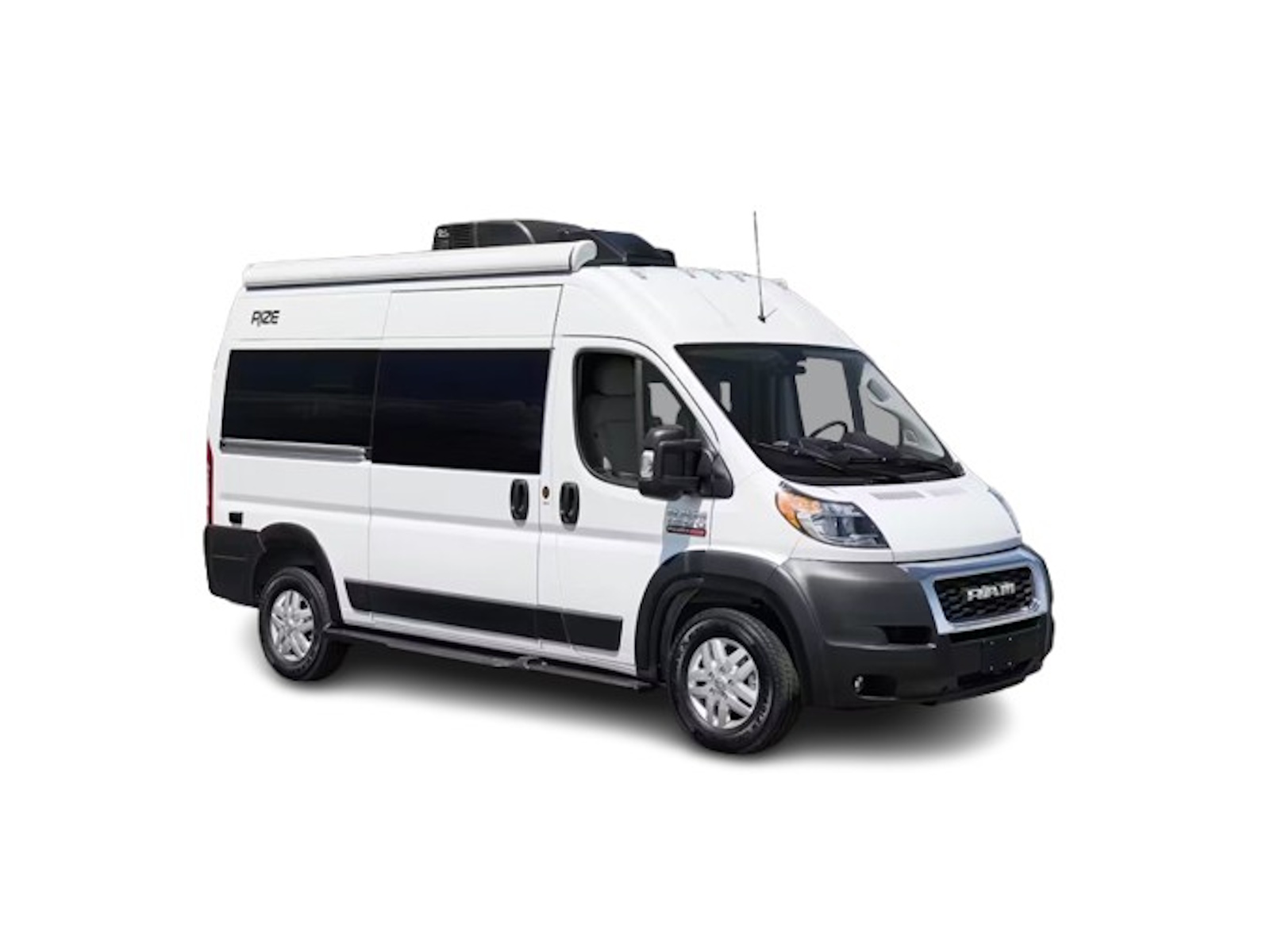 - Embark on an adventurous journey with the Rize® camper van, built on the Ram ProMaster® 1500 XT van chassis with a 3.6-liter V6 engine and front-wheel drive for a smooth driving experience. Safety features include attention assist, traffic sign assist, active lane keeping assist, and blind spot assist for confidence on the road. Depending on your load's weight, utilize the 5,000-pound hitch to tow small boats or trailers to your campsite. Travel comfortably with cruise control, keyless entry, aluminum wheels, and a backup camera.