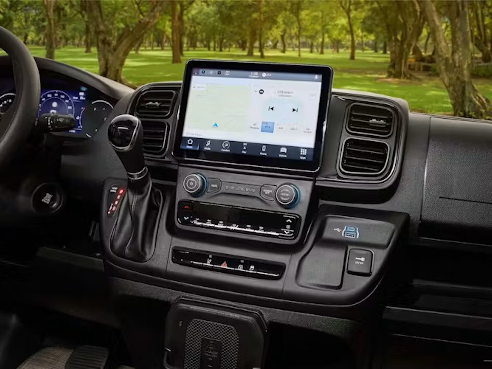 - Thanks to the advanced Uconnect® 5 system, road trips are never boring in the Scope®. This touchscreen dash radio features Apple CarPlay® and Android Auto™, keeping your favorite apps and playlists front and center. Adjust the audio using the telescoping leather steering wheel’s convenient controls while focusing on the road ahead. When it’s time to park, the touchscreen transforms into a backup monitor, giving you a clear view for confident maneuvering in any space. All floor plans are TV-prepped, giving you more entertainment options.