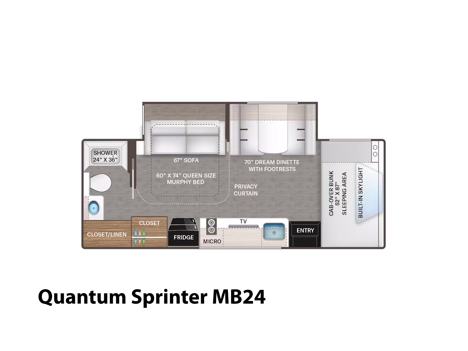Designed for families who love to travel in comfort and style, the Quantum® Sprinter is ready for any adventure. With two thoughtfully designed floor plans, this Mercedes-Benz® RV makes it easy to find the perfect fit for your travel needs. Whether planning a quick weekend getaway or an extended cross-country journey, this Class C motorhome delivers luxury features and modern conveniences that make every trip feel like home.