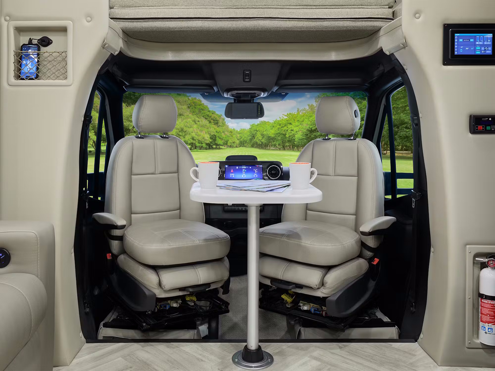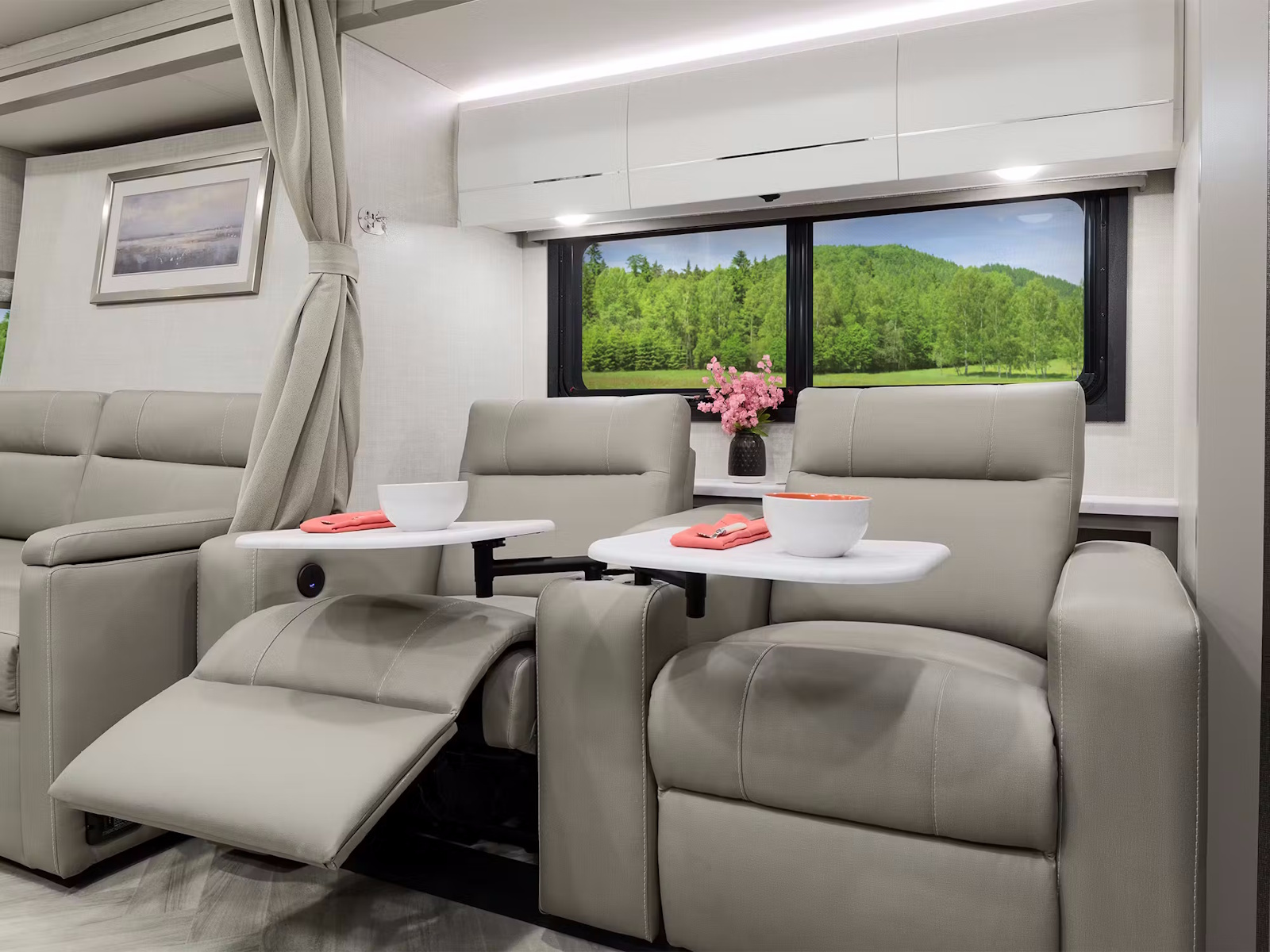 - Kick back in the 24RW and 24XL models’ theater seating with built-in footrests. The 24XL also has a large removable table you can use in front of the seating, while all floor plans offer a small removable table between the captain’s chairs. Enjoy meals in the 24FB and 24TT’s Dream Dinette® booth, or replace it with optional theater seating. Maximize space thanks to the 24RW’s dinette booth with built-in storage drawers and the 24FB’s Queen-size Murphy bed sofa. Manage the generator, lights, water, and more with the Rapid Camp+® system.