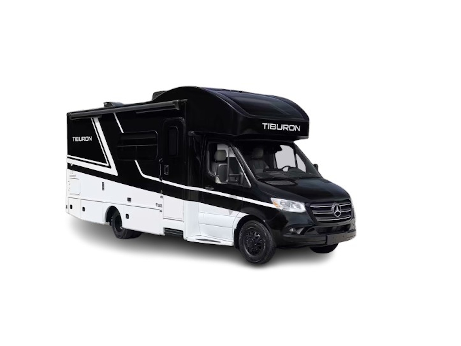 - Start your next adventure in the Tiburon®, built on the reliable Mercedes-Benz® Sprinter chassis and powered by a 2.0-liter I-4 diesel engine. Thanks to the 5,000-pound trailer hitch, towing is effortless. Safety is a top priority, with advanced Mercedes-Benz® features including DISTRONIC PLUS® cruise control with distance regulation, active braking assist, attention assist, active lane-keeping assist, and a wet wiper system. For added peace of mind, all floor plans offer an optional blind spot detection system with audible alerts.