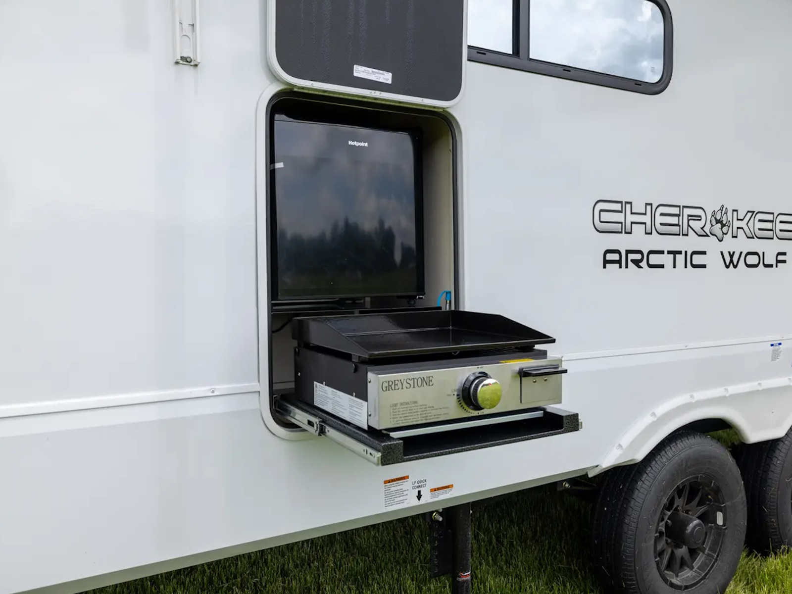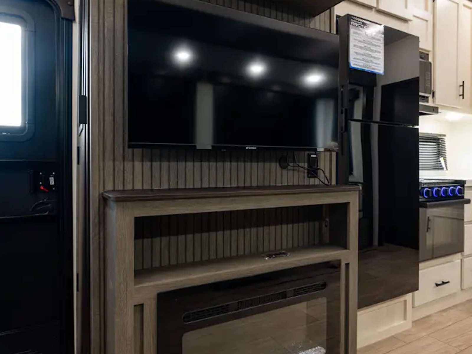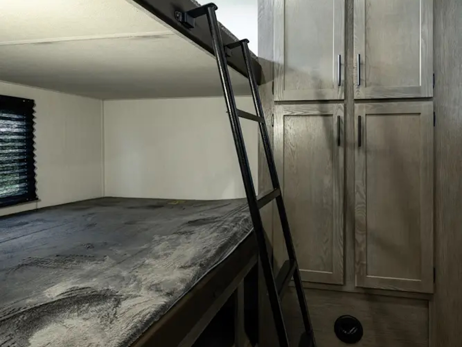 Our most popular multi-sleeper and family fun coach! Interior highlights include an oversized u-dinette seating surface for all the kids, dual pots and pans drawers, oversized double bunk beds, farm-style sink and 6’4” tall slide rooms, electric fireplace and an 80” queen size bed. Some exterior refinements include an oversized 20’ exterior awning, 15,000 BTU A/C, basement storage, Cherokee “Step Above” entry step, one-touch auto leveling and a deluxe outside kitchen for the camp chef!