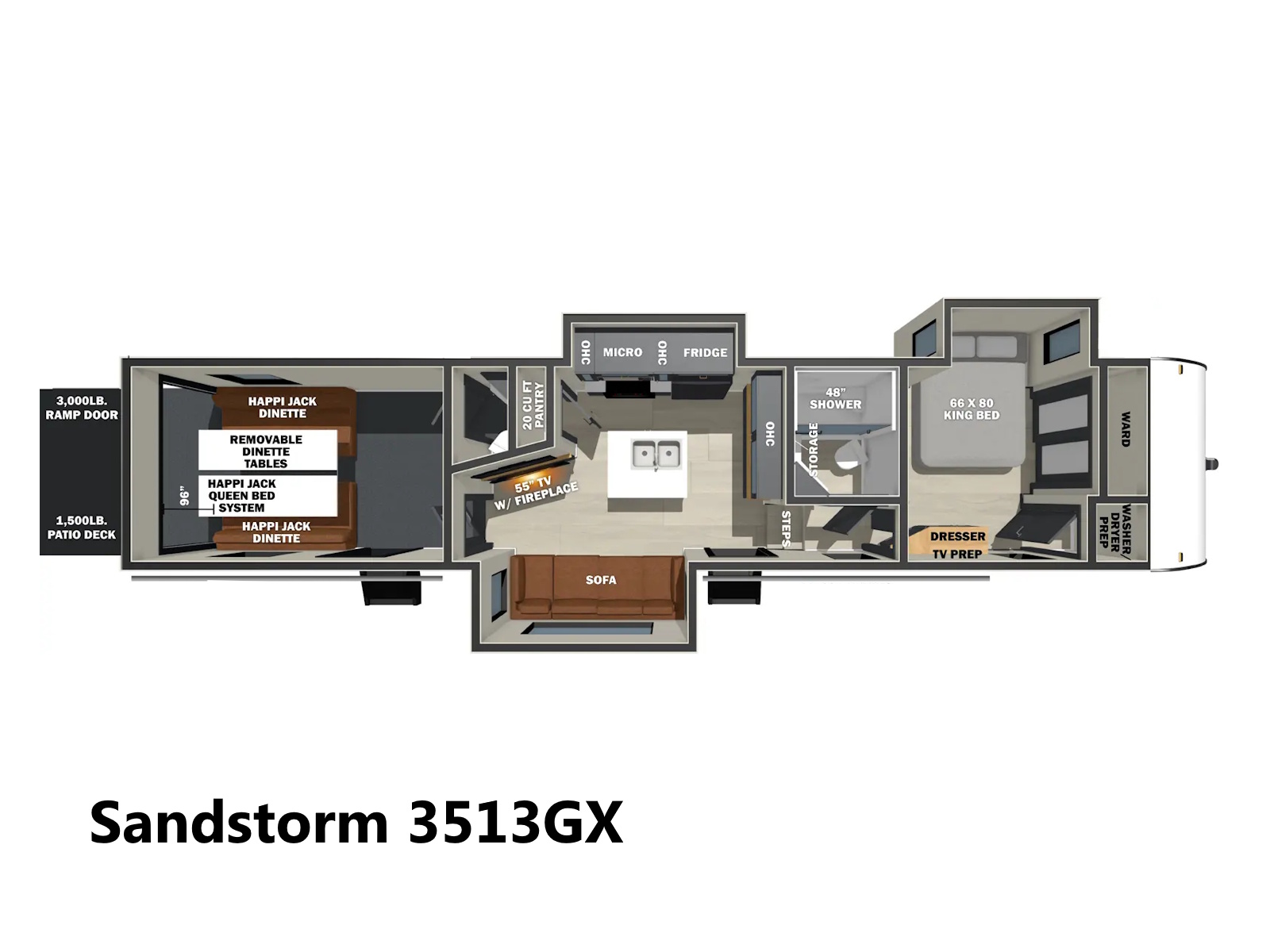 Sandstorm provides a toy hauler with the flexibility of riding in the dunes or camping with the family in the mountains, all at a cost you can afford. So what are you waiting for? Get Dirty in a Sandstorm, Today!