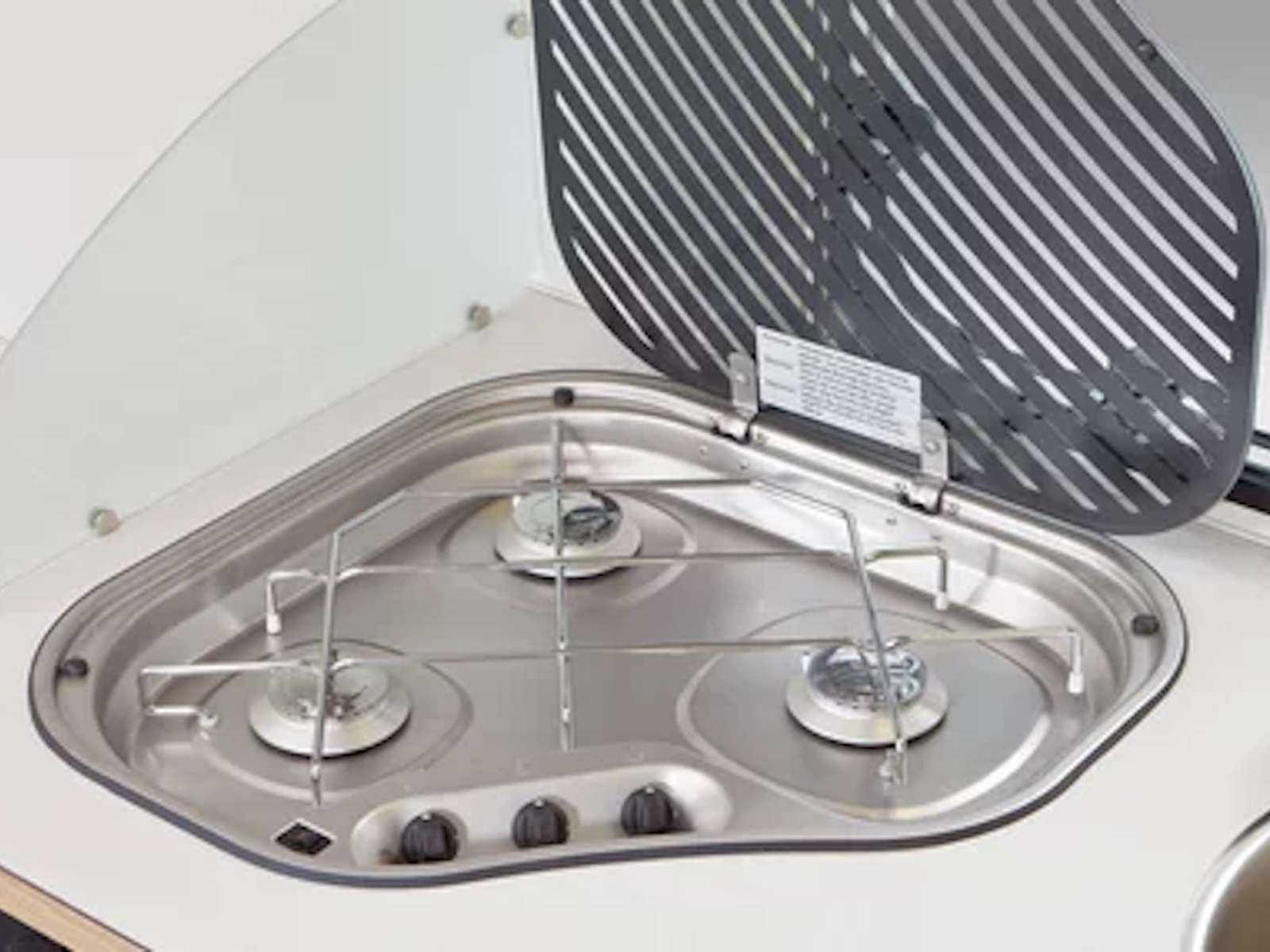 - The user-friendly and easy-to-clean 3-burner hob can also be used to conjure up more elaborate menus in your vehicle's kitchen. The glass lid acts as a flame guard in the kitchen when raised.