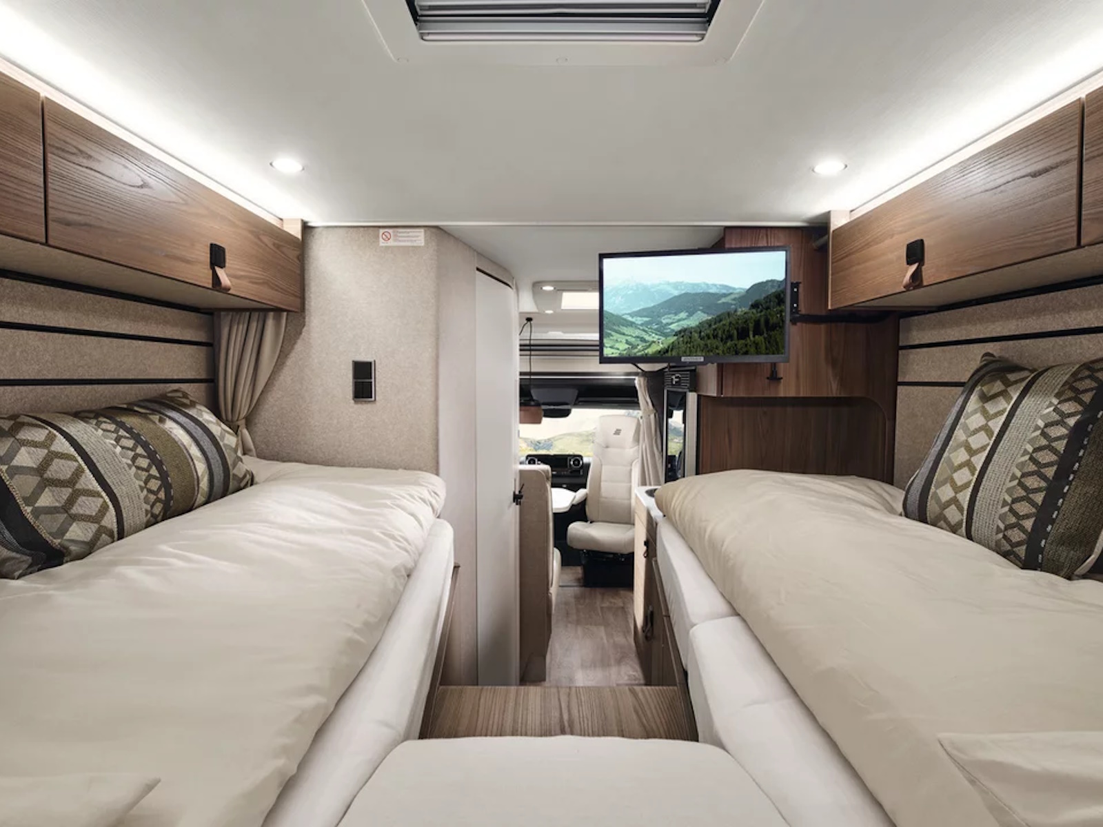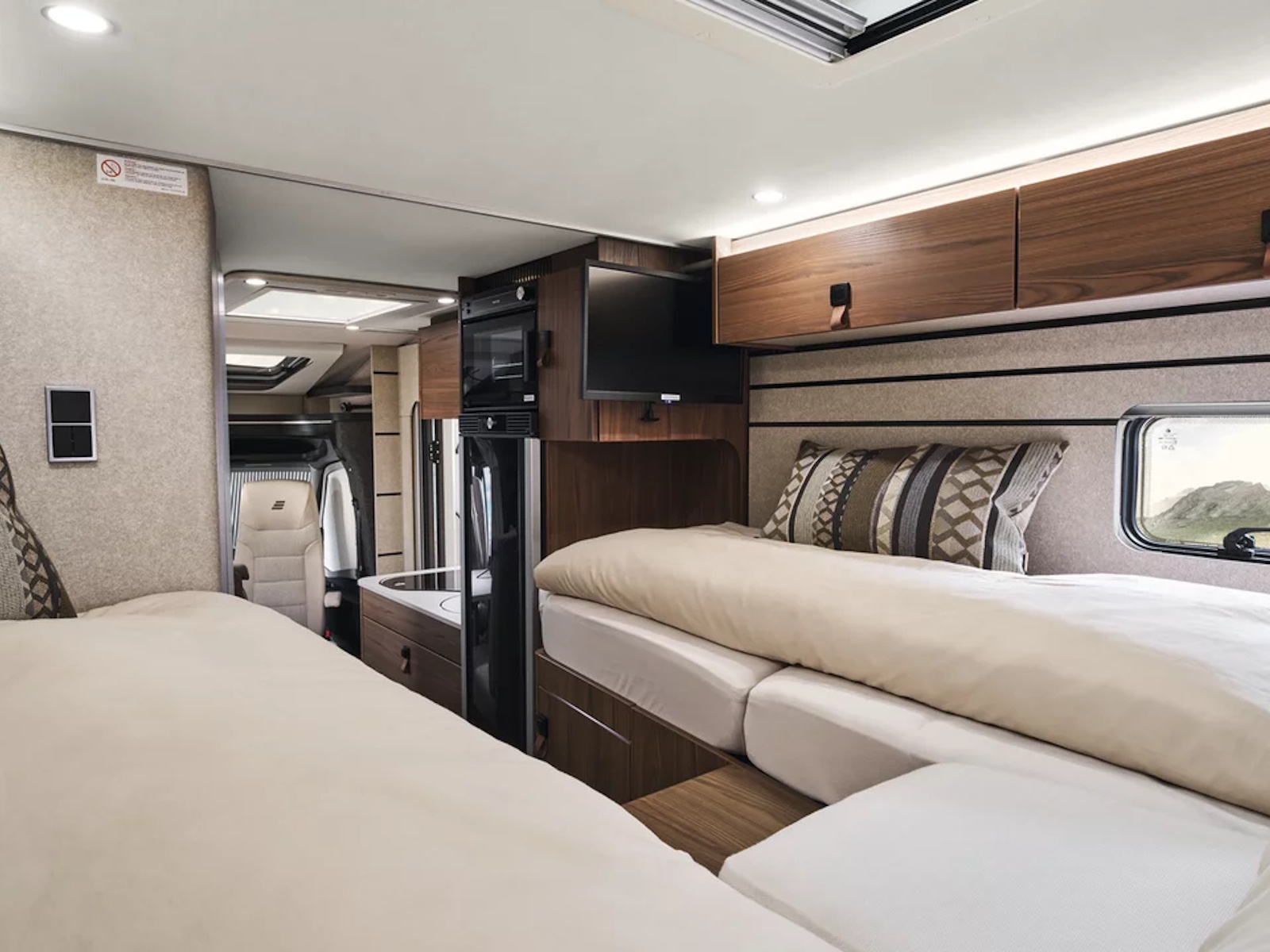 - For optimal air circulation, the rear beds are equipped as standard with multi-zone cold foam mattresses including high-quality mattress toppers. They ensure you sleep comfortably and wake up refreshed.