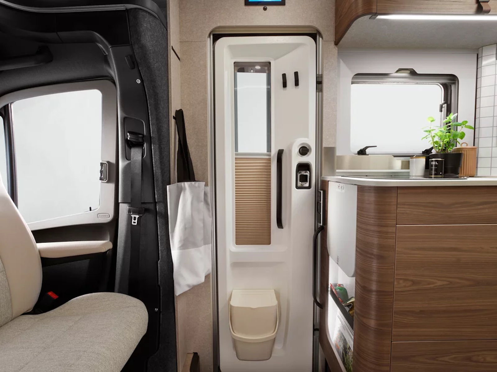 - Comfort habitation door with window, blackout blind, integrated waste bin as well as 2-way lock