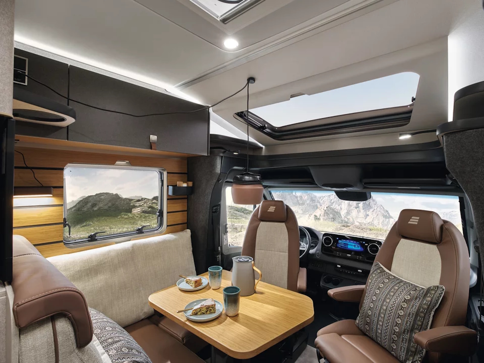 - Connected everywhere. The integrated 5G router with roof antenna ensures maximum connectivity – no matter where your journey takes you.