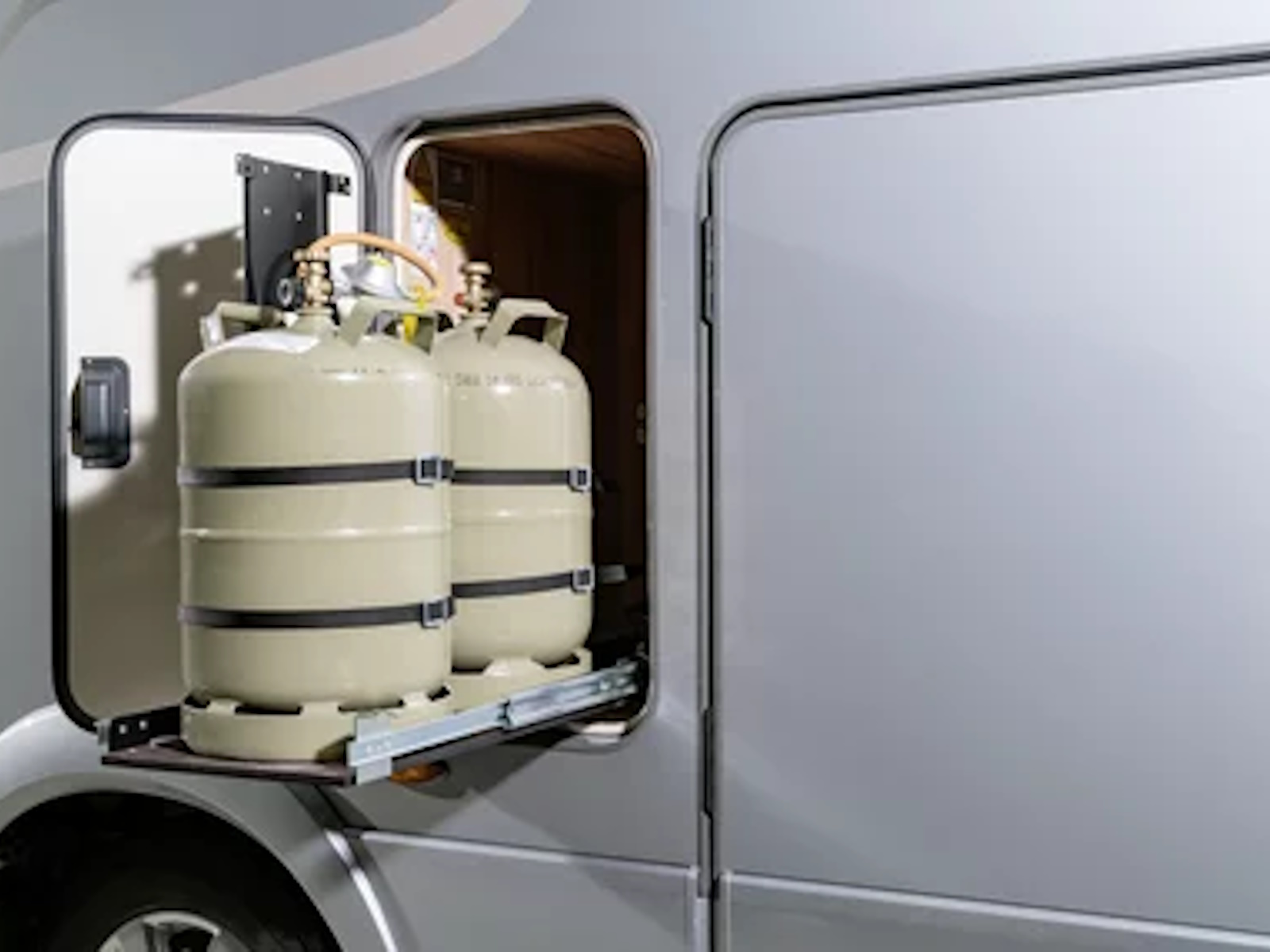 - The gas bottles are housed securely and accessibly in an exterior compartment. Changing the gas bottles couldn’t be easier thanks to the practical sliding shelf.