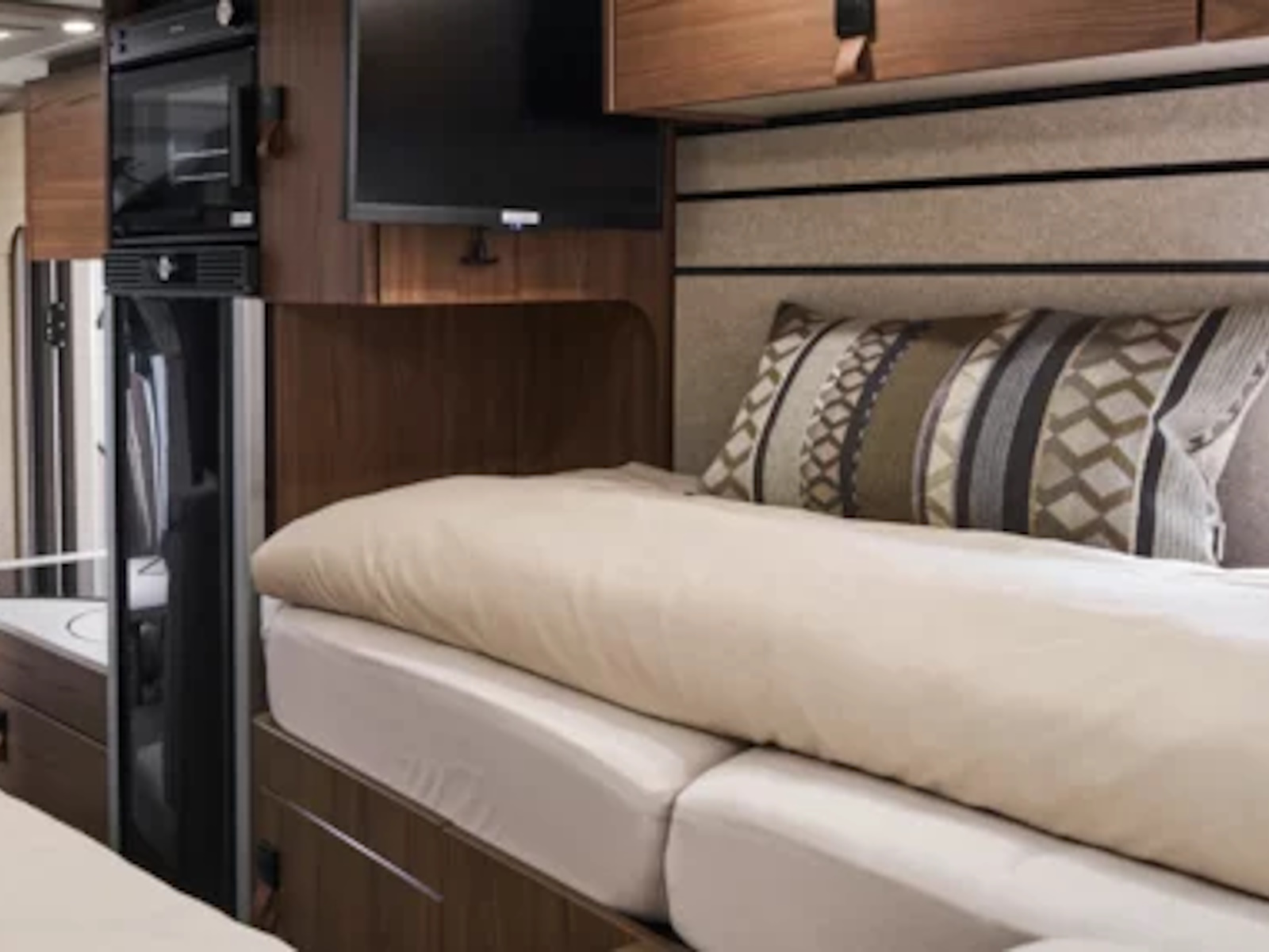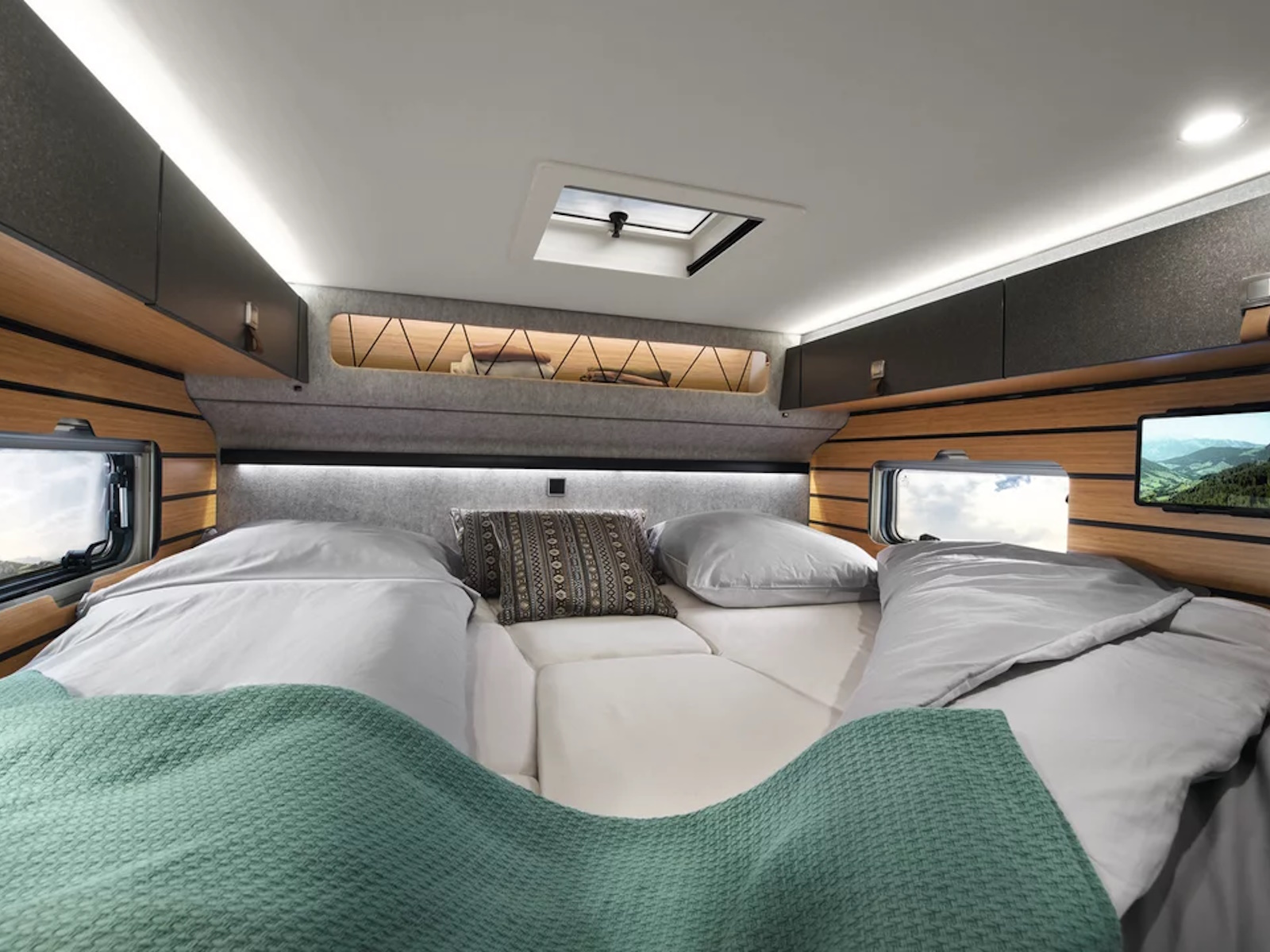 - For optimal air circulation, the rear beds are equipped as standard with multi-zone cold foam mattresses including high-quality mattress toppers. They ensure you sleep comfortably and wake up refreshed.
