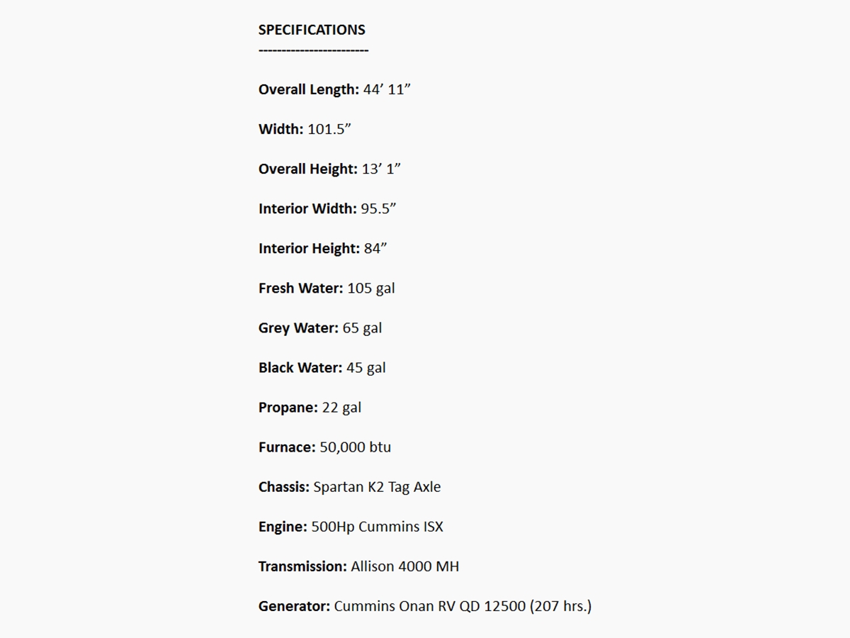 Generator: Cummins Onan RV QD 12500 (207 hrs.)