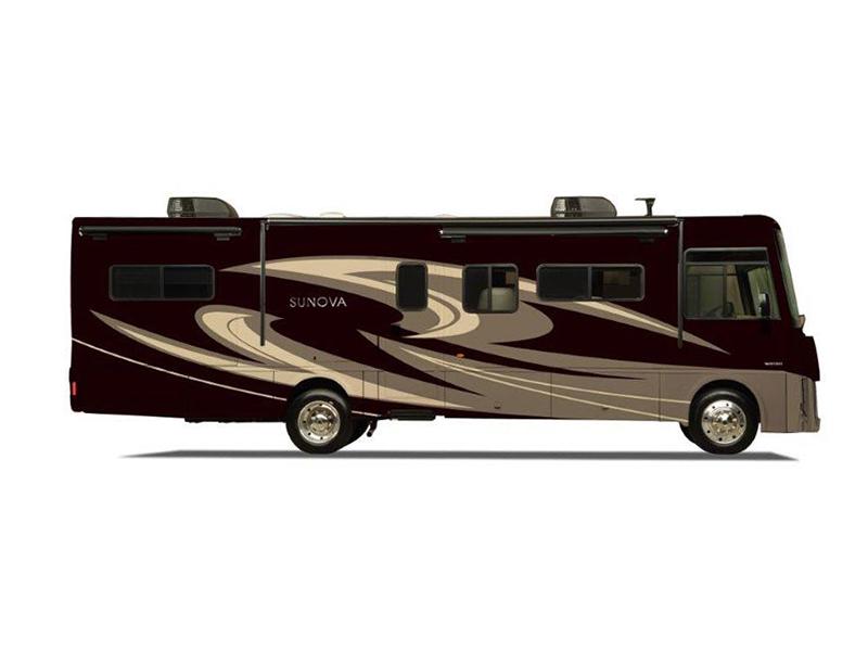 Fun-loving adventurers, meet your fun-loving Class A coach: the Sunova. Built to Winnebagos legendary quality standards, the newly-styled Sunova is packed with features that may have you wishing your trips would never end. Corian countertops, swivel Primera cab seats, and MCD solar/blackout roller shades are as functional as they are beautiful. This year the 36Z brings a new look to the Sunova lineup with a bath-and-a-half floorplan and a powered StudioLoft bed that adds sleeping space on demand. Each floorplan opens wide with three slideouts that offer plenty of relaxation and entertainment options such as a retractable HDTV, Glide & Dine table, an available Rest Easy sofa, and available Euro recliner. Dont miss another year of fun and adventure in your very own Sunova.
