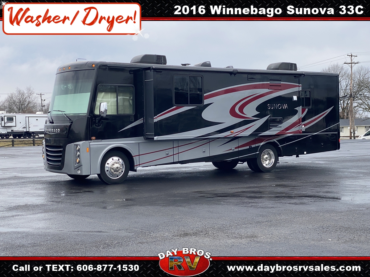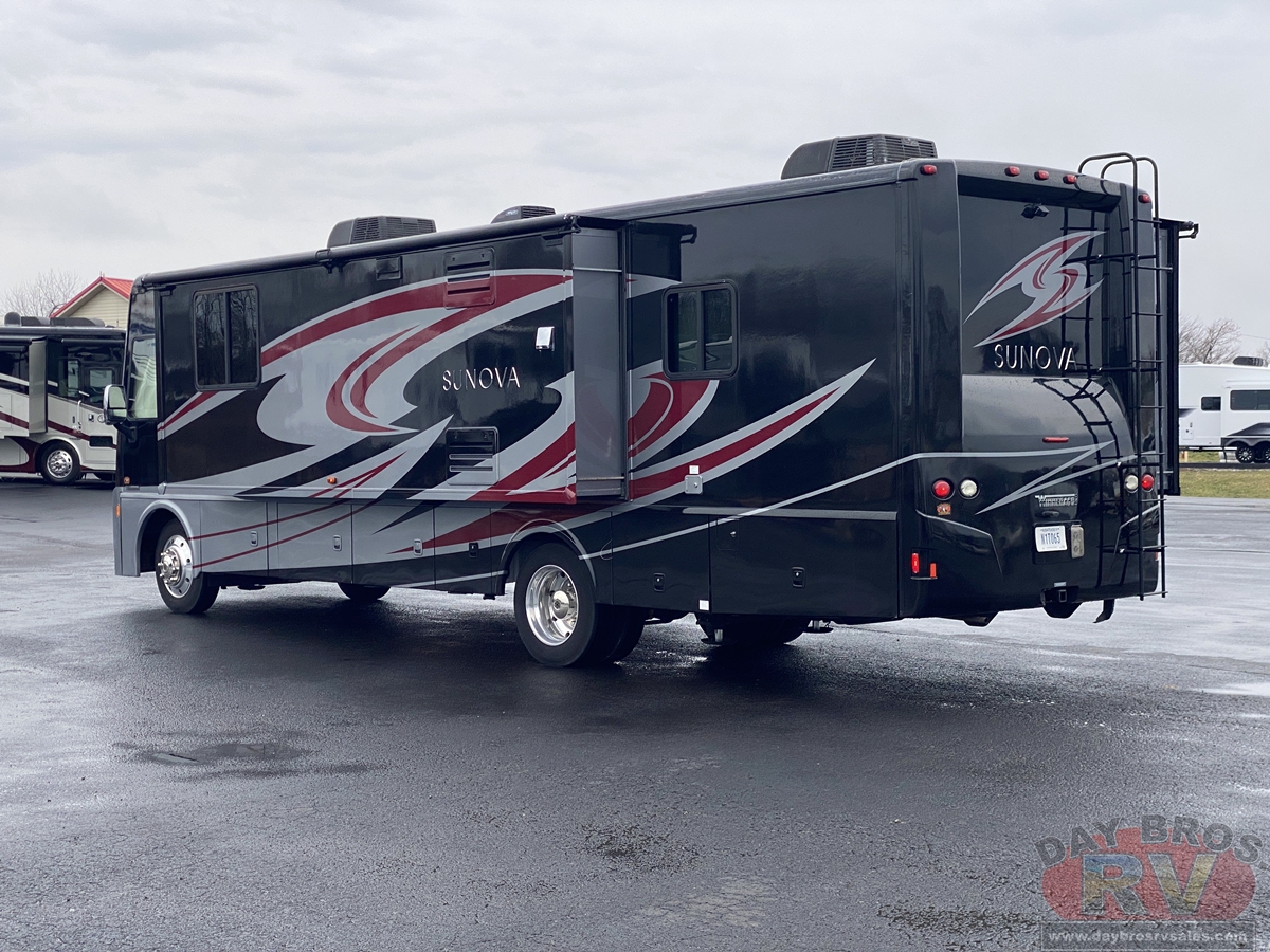 Built for Fun and AdventureFun-loving adventurers, meet your fun-loving Class A coach: the Sunova. Built to Winnebagos legendary quality standards, the newly-styled Sunova is packed with features that may have you wishing your trips would never end. Corian countertops, swivel Primera cab seats, and MCD solar/blackout roller shades are as functional as they are beautiful. This year the 36Z brings a new look to the Sunova lineup with a bath-and-a-half floorplan and a powered StudioLoft bed that adds sleeping space on demand. Each floorplan opens wide with three slideouts that offer plenty of relaxation and entertainment options such as a retractable HDTV, Glide & Dine table, an available Rest Easy sofa, and available Euro recliner. Dont miss another year of fun and adventure in your very own Sunova.
