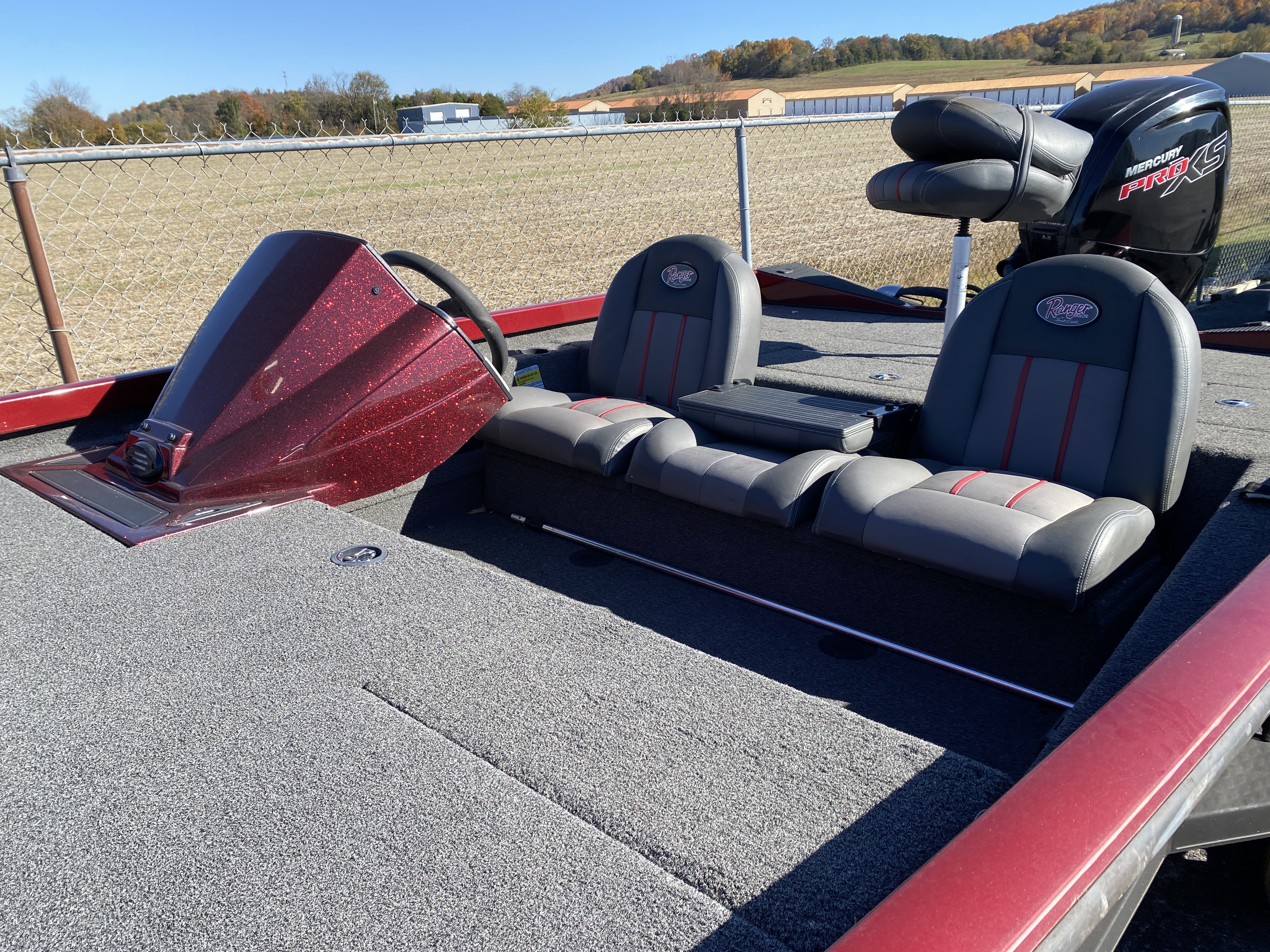- Custom Fitted Marine Upholstery: Driver/Passenger Bucket Seating w/ Under Seat Storage, Matching Fold Down Fishing Seat