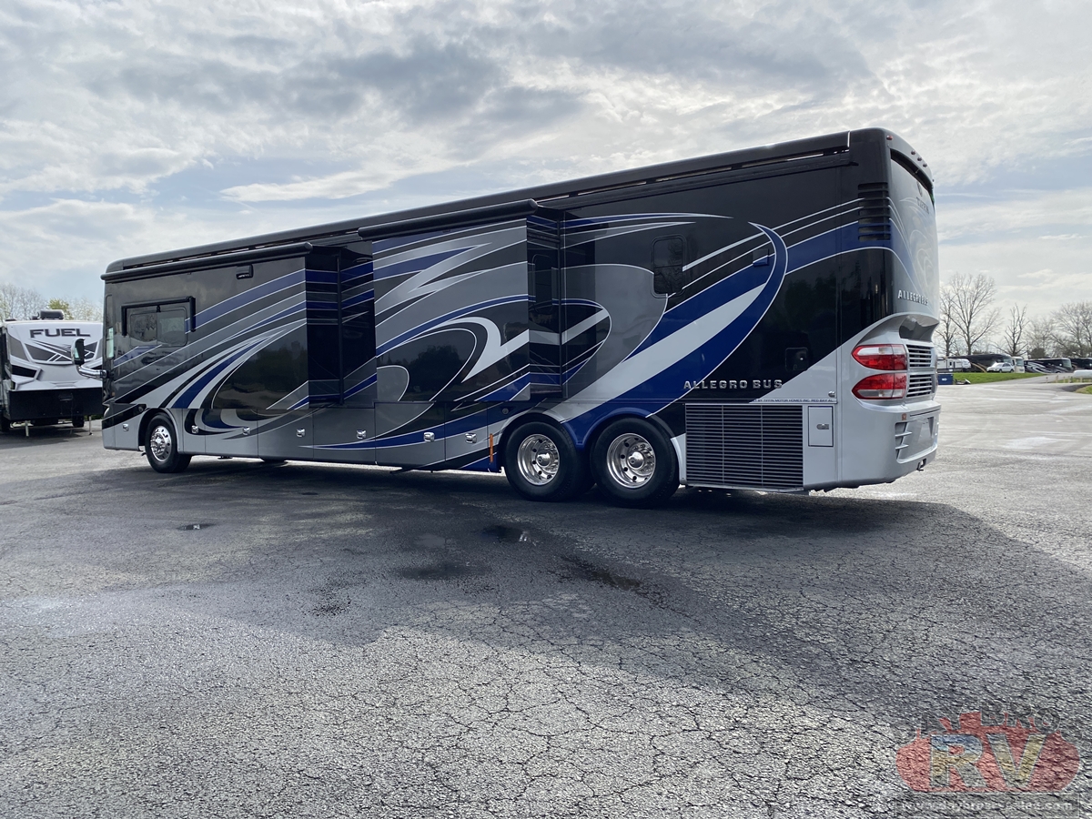 THE PERFECT EXPLORING COMPANION.Handcrafted hardwood cabinetry. Hand-laid porcelain tile. High-end induction cooktop. No detail is missed inside the luxurious Allegro Bus. With 7 ceilings, four slide-outs and floor plans up to 45, it packs plenty of legroom on top of Tiffins own PowerGlide chassis. And our Store-It-All Assurance, with an abundance of interior storage and a basement with up to 177 of cubic storage, means you wont ever run out of space. Your Allegro Bus is ready to go, whether youre taking it all with you or leaving it all behind.