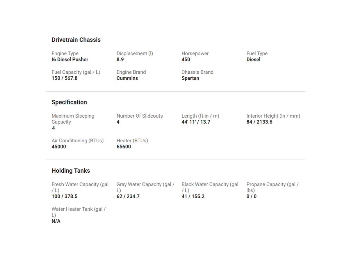 - Type: Motorized Class A
