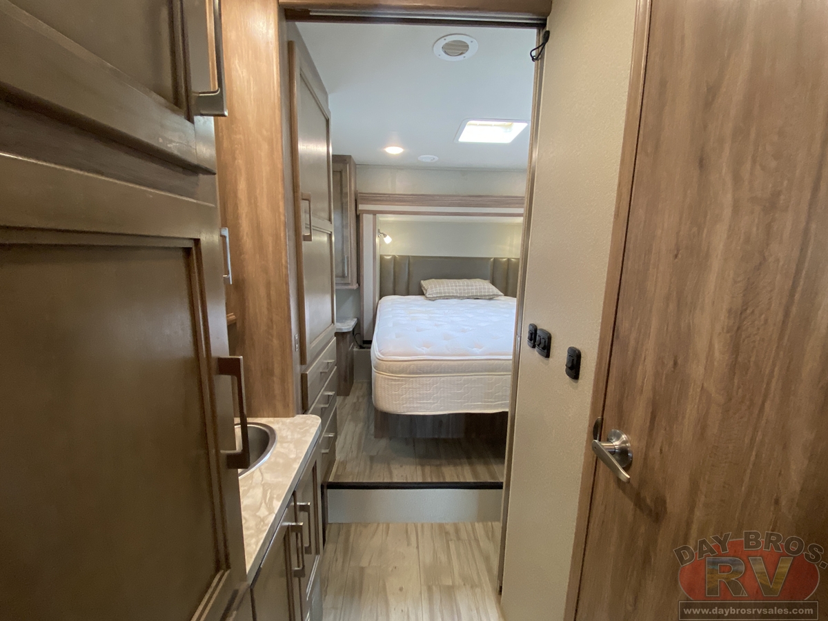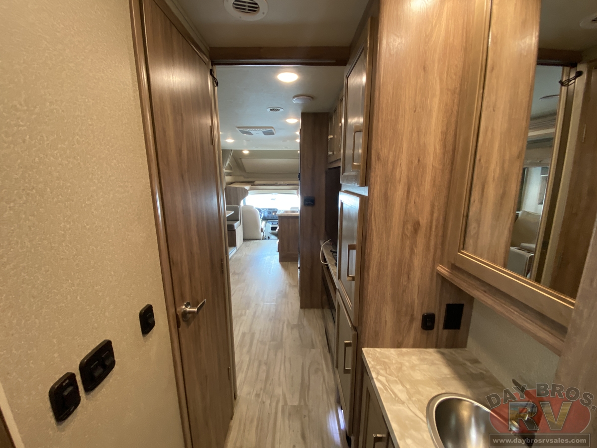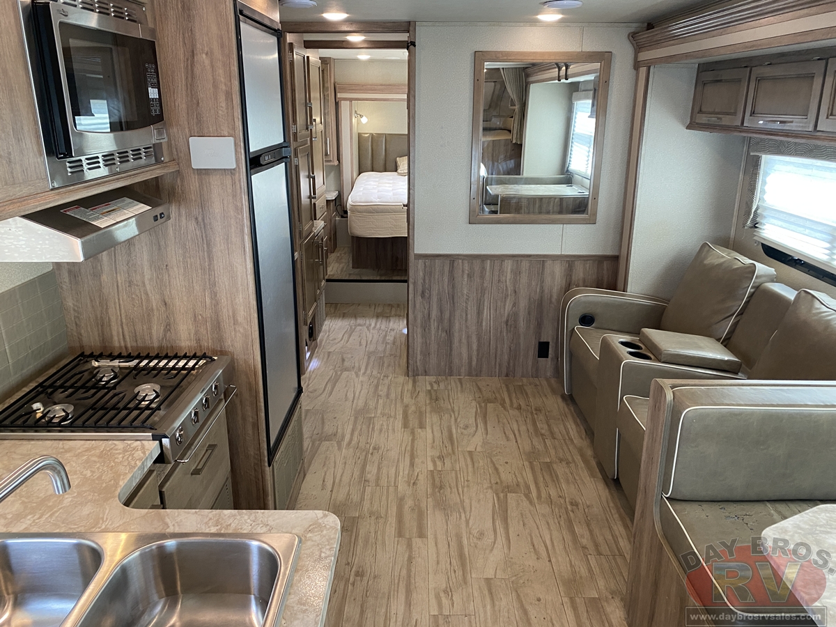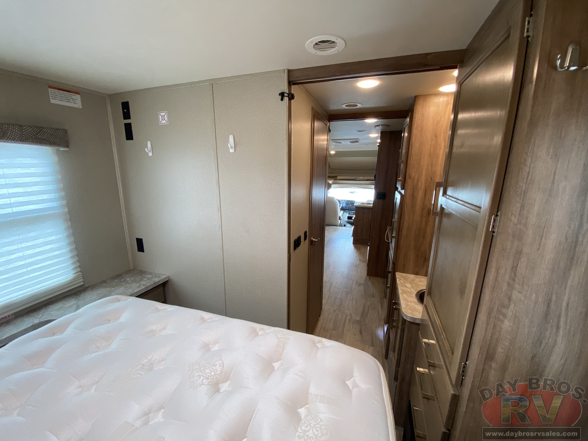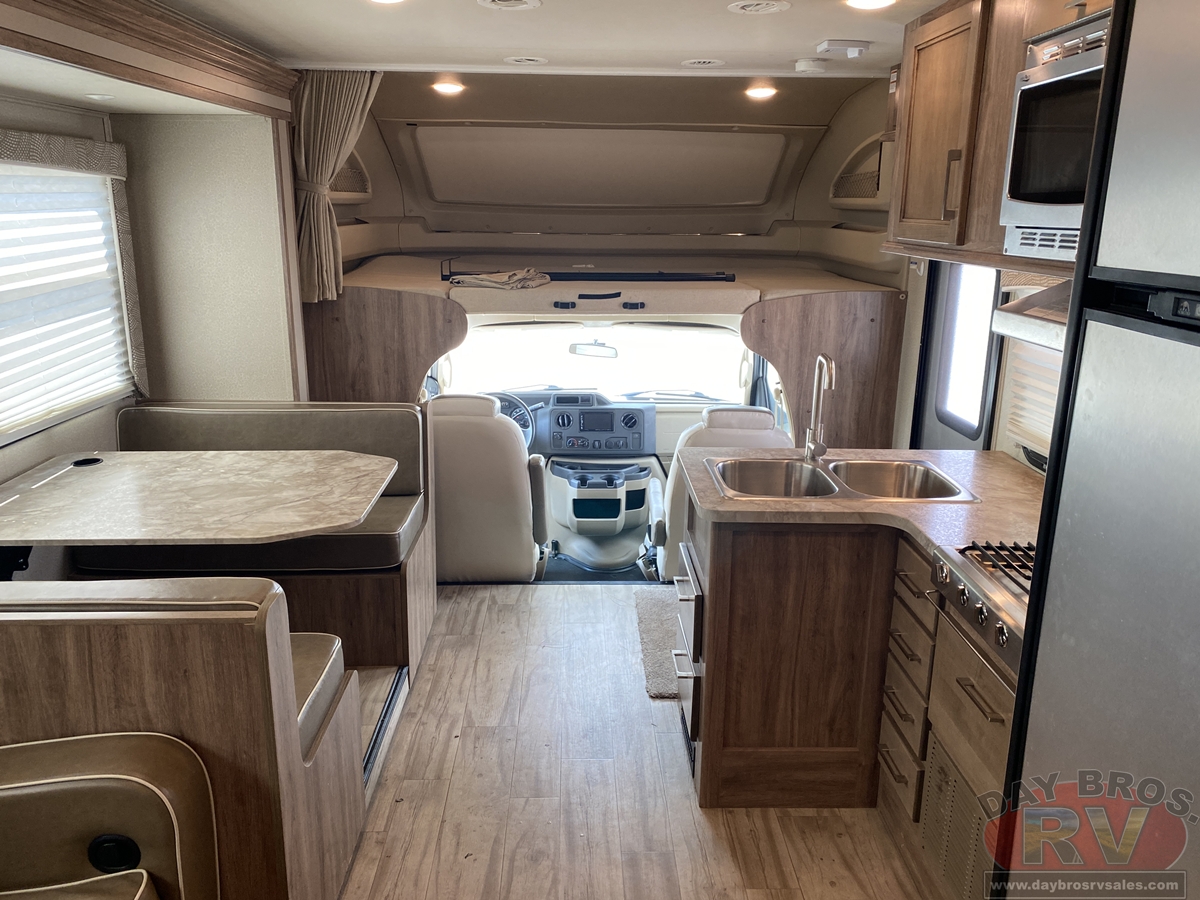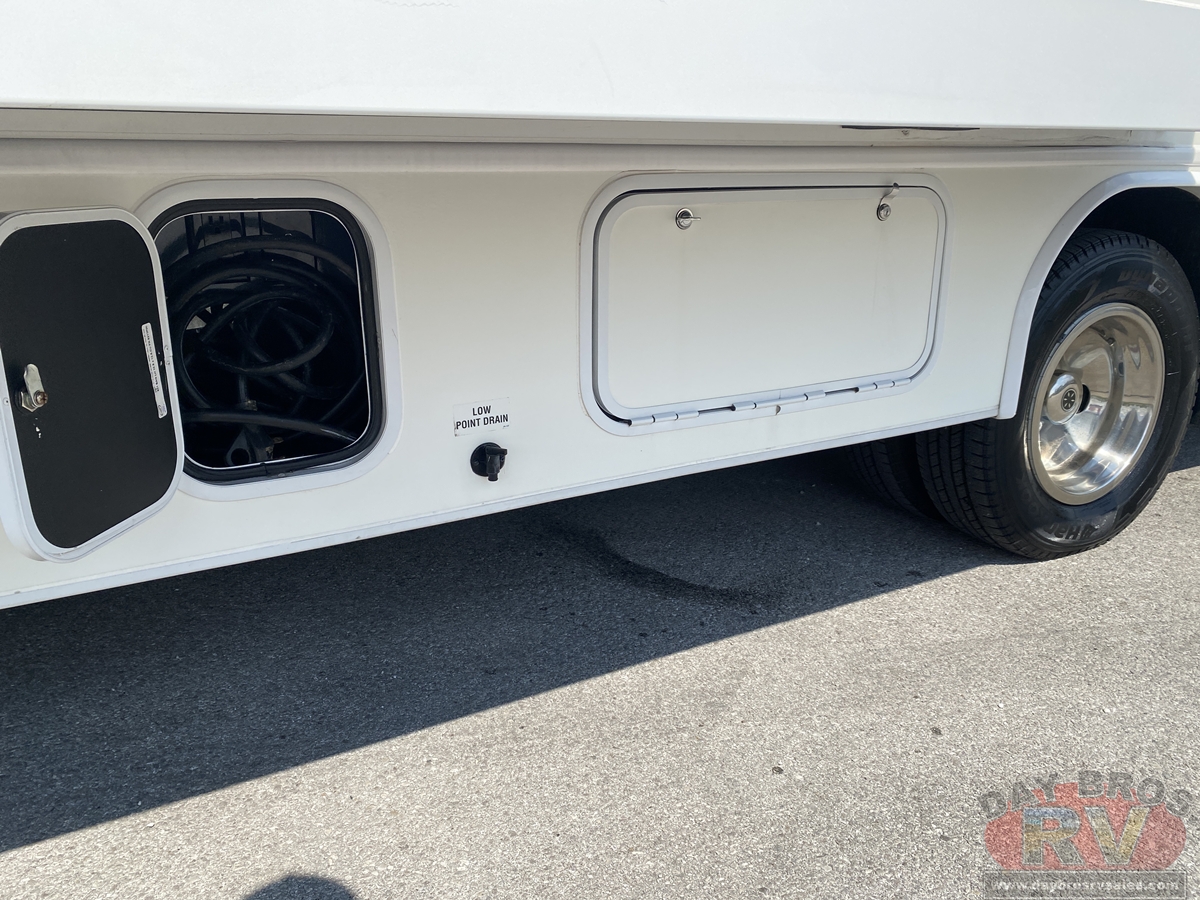 The 2019 Entegra Odyssey Class C RV 30Z features a one piece seamless fiberglass roof, frameless windows, Hellwig Helper Springs, front and rear stabilizer bars, Ford E-450 chassis and a Triton 6.8L V-10 engine. You will also love the Entegra Coach Odyssey's amazing new molded front cap that distinguishes this class C from any other on the market today. The distinctive design also enables the front cab-over to feature a huge built-in skylight with power shade. Just push a button and let Mother Nature light up the beautiful decor that can only be found in an Entegra RV or lie in bed and gaze at the stars at the end of a fun filled day. This amazing RVs options also include the beautiful partial paint exterior, theater seats, bedroom TV, automatic hydraulic leveling jacks and the Customer Value Package option which includes LED TV, large refrigerator, backup camera with monitor, electric awning, infotainment system, and tank heating pads. The Entegra Odyssey also has an incredible list of standard features including a 15,000 BTU A/C, water filtration system, Onan generator, luxurious foam mattress, 3 burner range, running boards, exterior speakers, electric entrance step, infotainment system, exterior shower, ball-bearing drawer guides and much more.