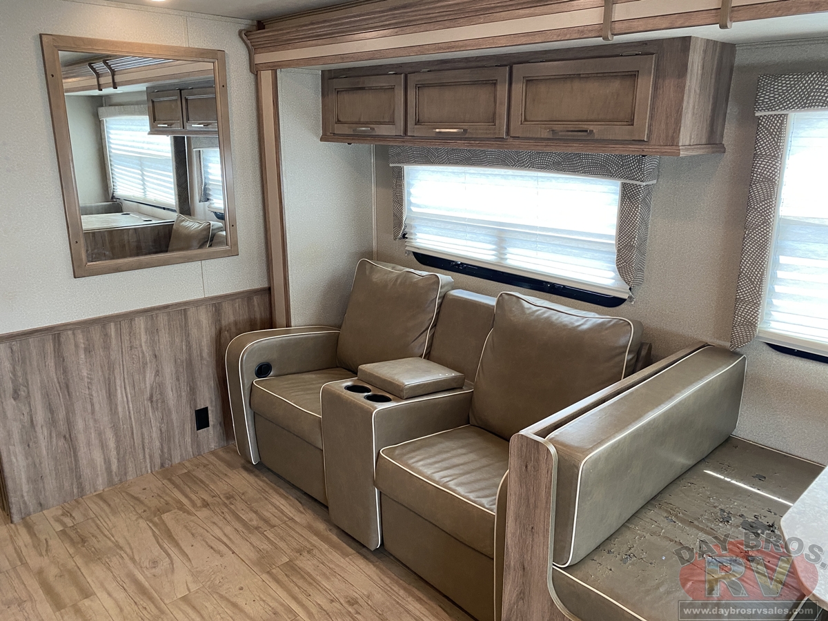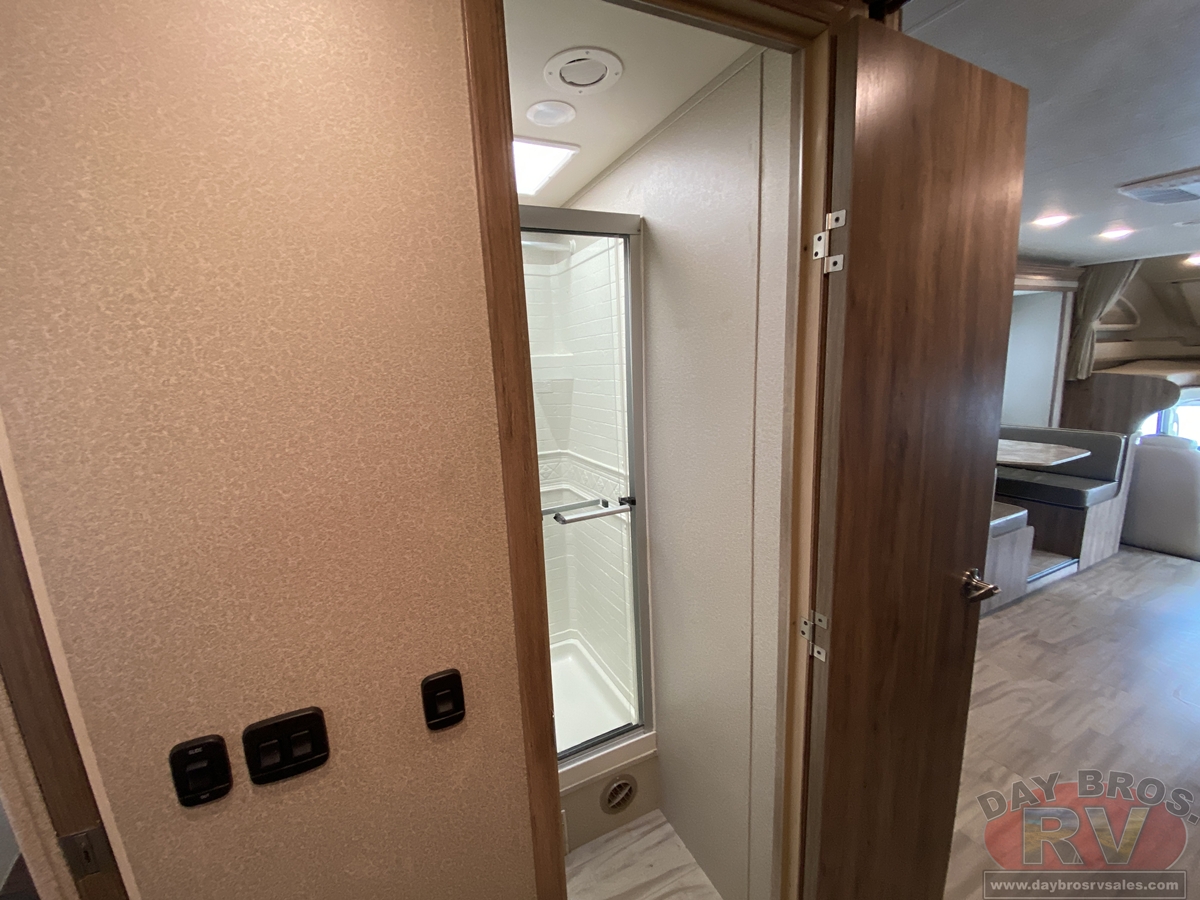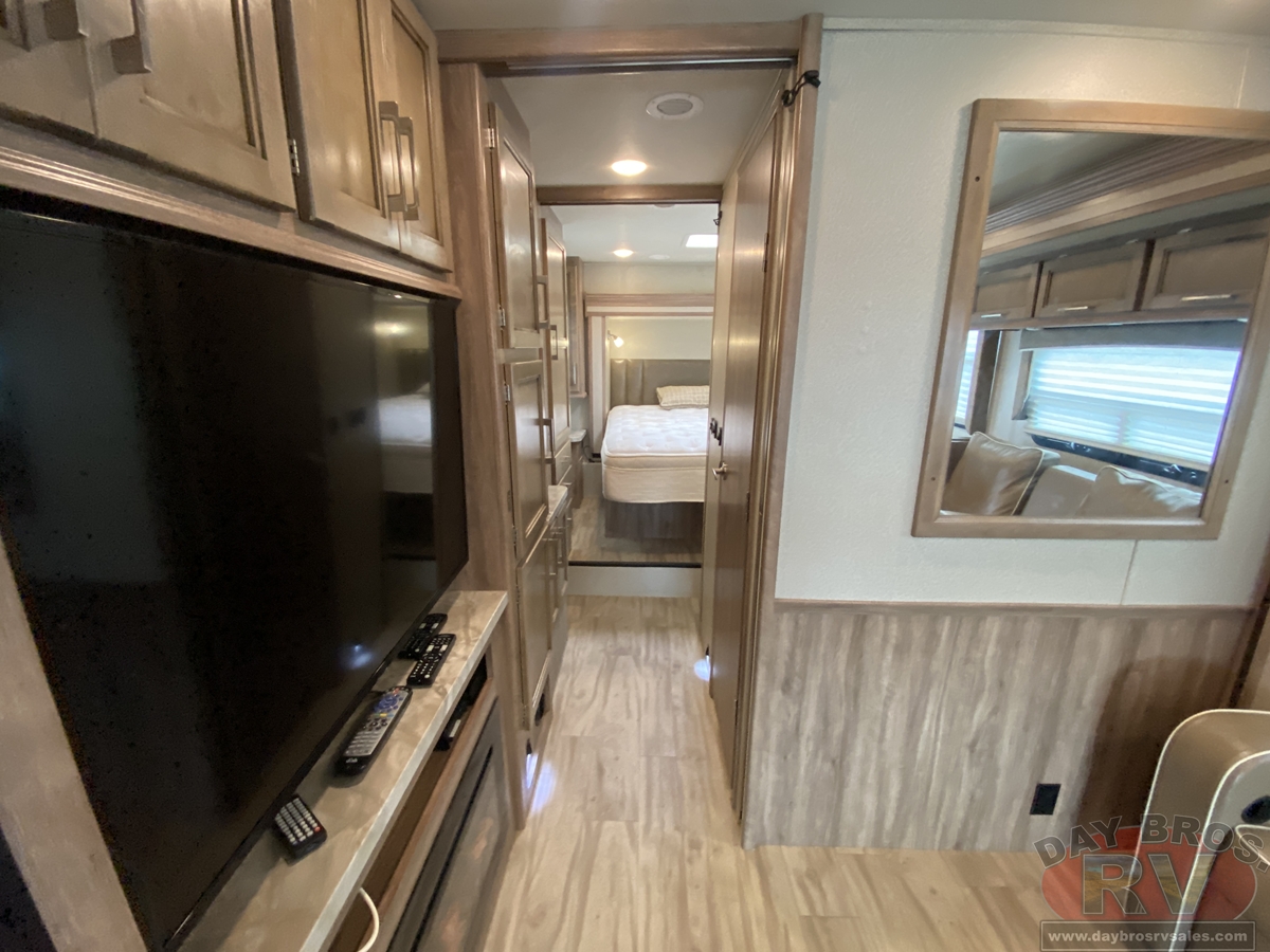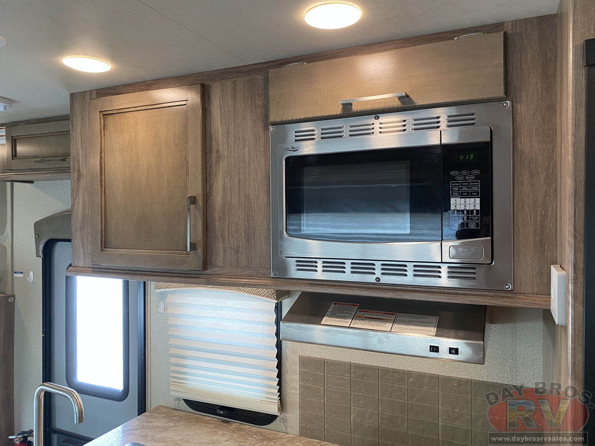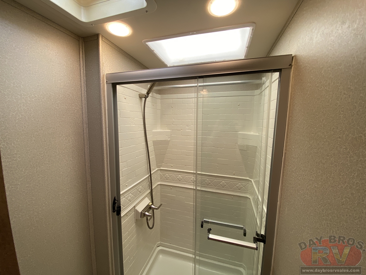 The 2019 Entegra Odyssey Class C RV 30Z features a one piece seamless fiberglass roof, frameless windows, Hellwig Helper Springs, front and rear stabilizer bars, Ford E-450 chassis and a Triton 6.8L V-10 engine. You will also love the Entegra Coach Odyssey's amazing new molded front cap that distinguishes this class C from any other on the market today. The distinctive design also enables the front cab-over to feature a huge built-in skylight with power shade. Just push a button and let Mother Nature light up the beautiful decor that can only be found in an Entegra RV or lie in bed and gaze at the stars at the end of a fun filled day. This amazing RVs options also include the beautiful partial paint exterior, theater seats, bedroom TV, automatic hydraulic leveling jacks and the Customer Value Package option which includes LED TV, large refrigerator, backup camera with monitor, electric awning, infotainment system, and tank heating pads. The Entegra Odyssey also has an incredible list of standard features including a 15,000 BTU A/C, water filtration system, Onan generator, luxurious foam mattress, 3 burner range, running boards, exterior speakers, electric entrance step, infotainment system, exterior shower, ball-bearing drawer guides and much more.