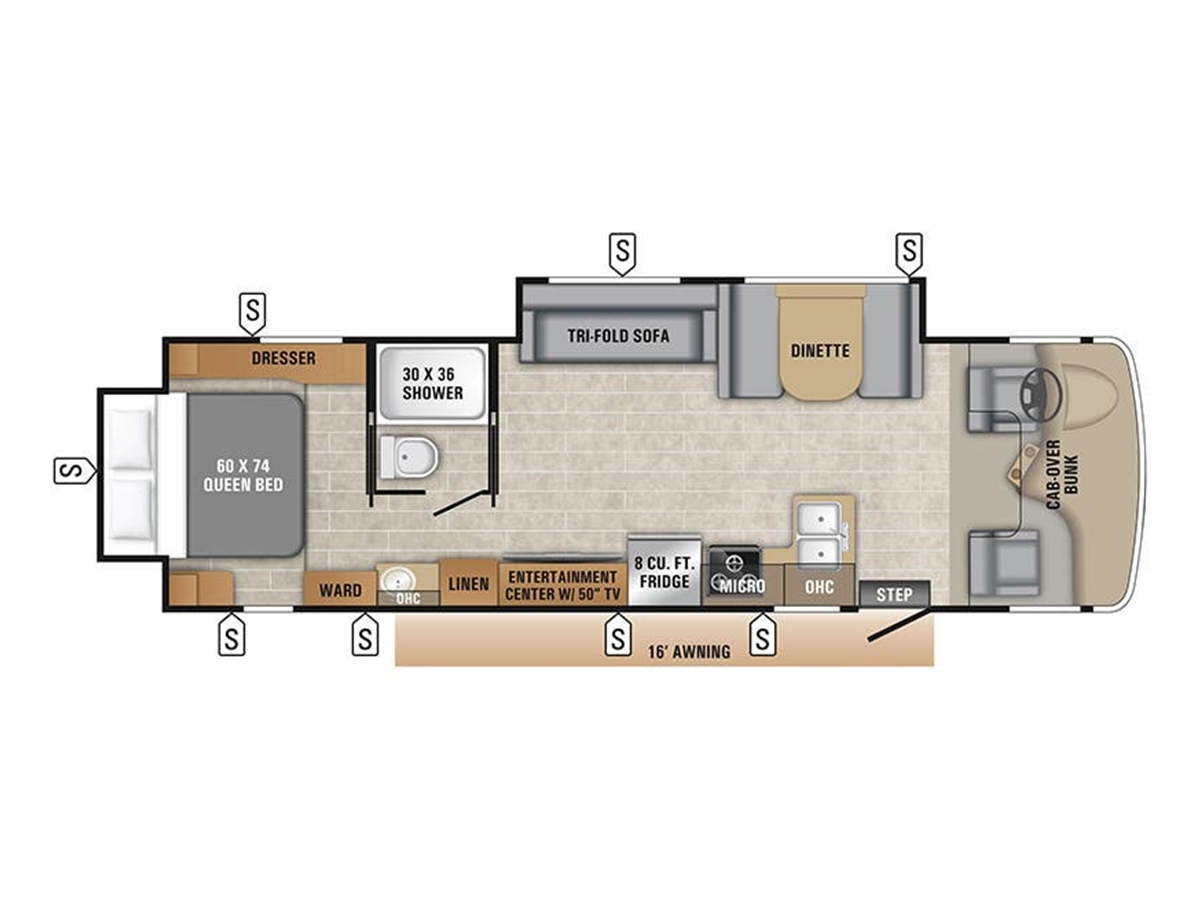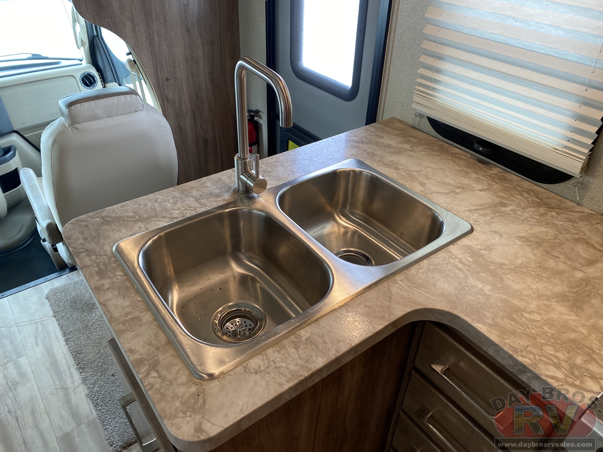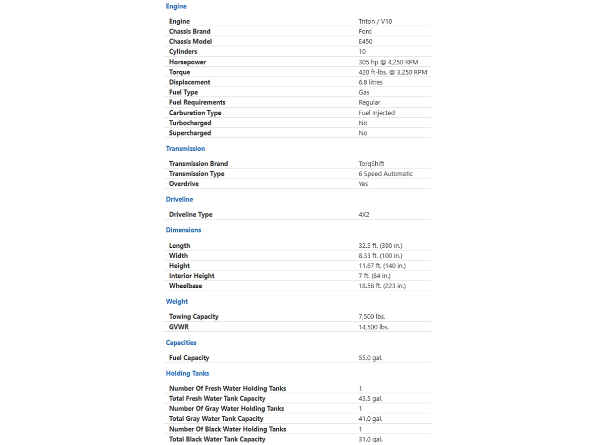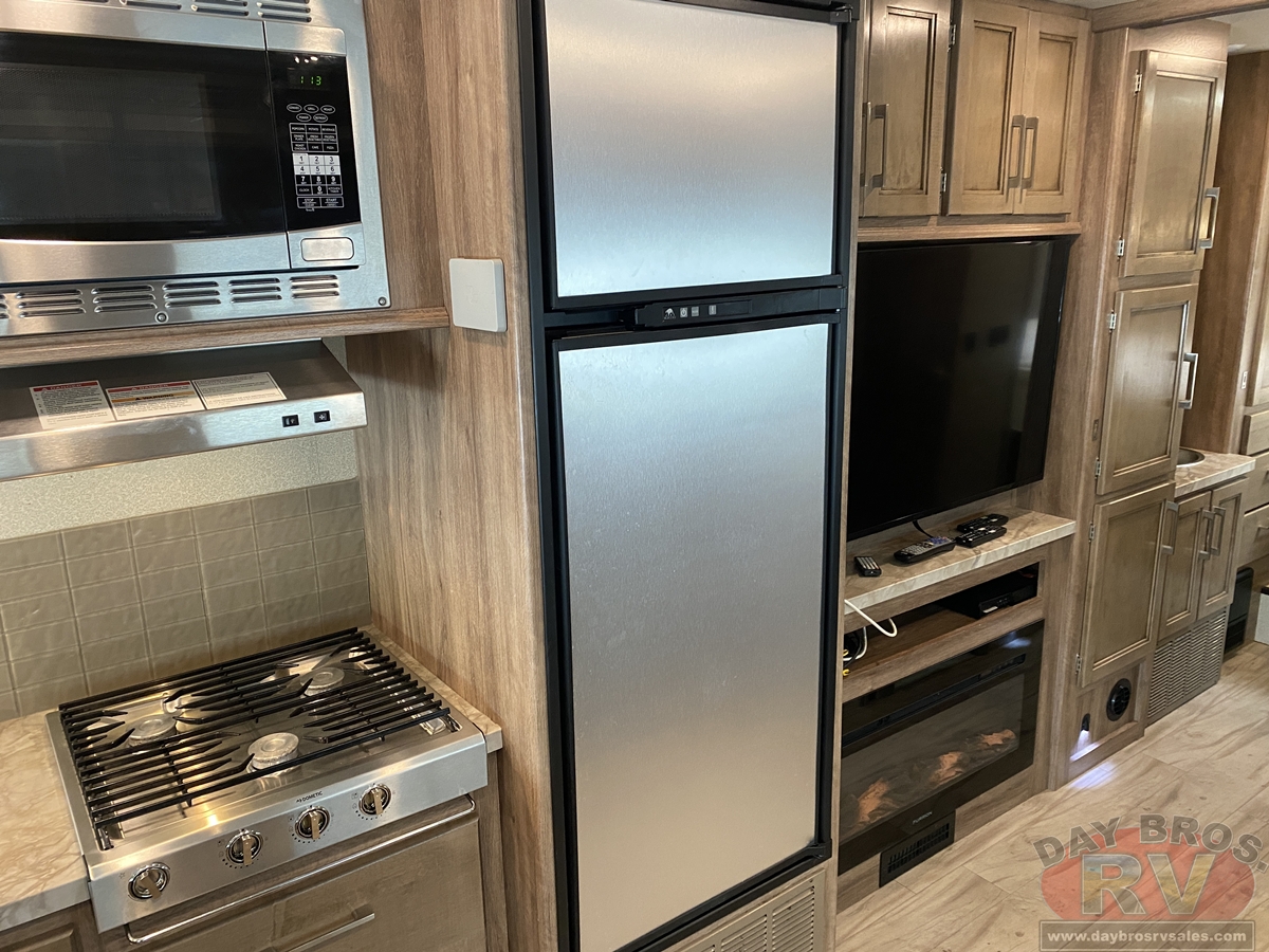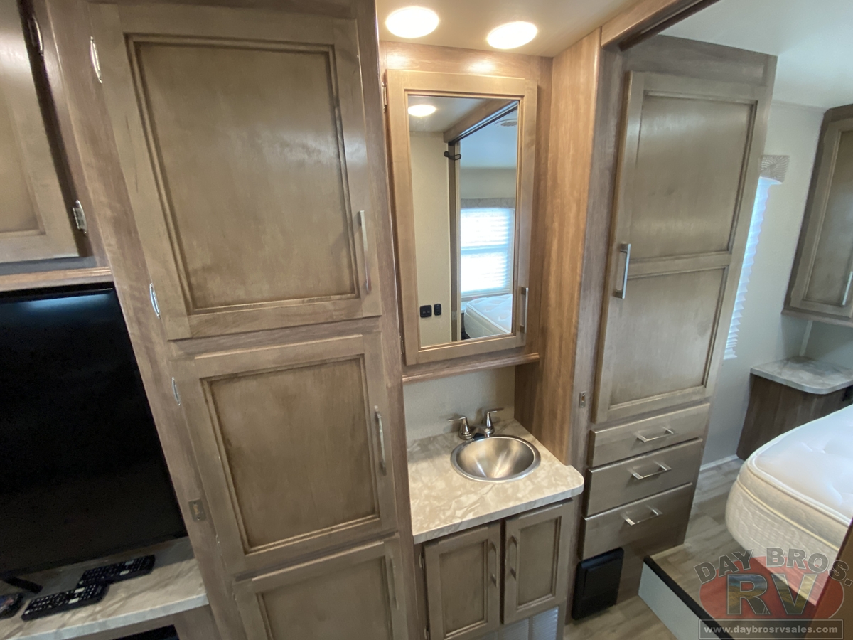 The 2019 Entegra Odyssey Class C RV 30Z features a one piece seamless fiberglass roof, frameless windows, Hellwig Helper Springs, front and rear stabilizer bars, Ford E-450 chassis and a Triton 6.8L V-10 engine. You will also love the Entegra Coach Odyssey's amazing new molded front cap that distinguishes this class C from any other on the market today. The distinctive design also enables the front cab-over to feature a huge built-in skylight with power shade. Just push a button and let Mother Nature light up the beautiful decor that can only be found in an Entegra RV or lie in bed and gaze at the stars at the end of a fun filled day. This amazing RVs options also include the beautiful partial paint exterior, theater seats, bedroom TV, automatic hydraulic leveling jacks and the Customer Value Package option which includes LED TV, large refrigerator, backup camera with monitor, electric awning, infotainment system, and tank heating pads. The Entegra Odyssey also has an incredible list of standard features including a 15,000 BTU A/C, water filtration system, Onan generator, luxurious foam mattress, 3 burner range, running boards, exterior speakers, electric entrance step, infotainment system, exterior shower, ball-bearing drawer guides and much more.