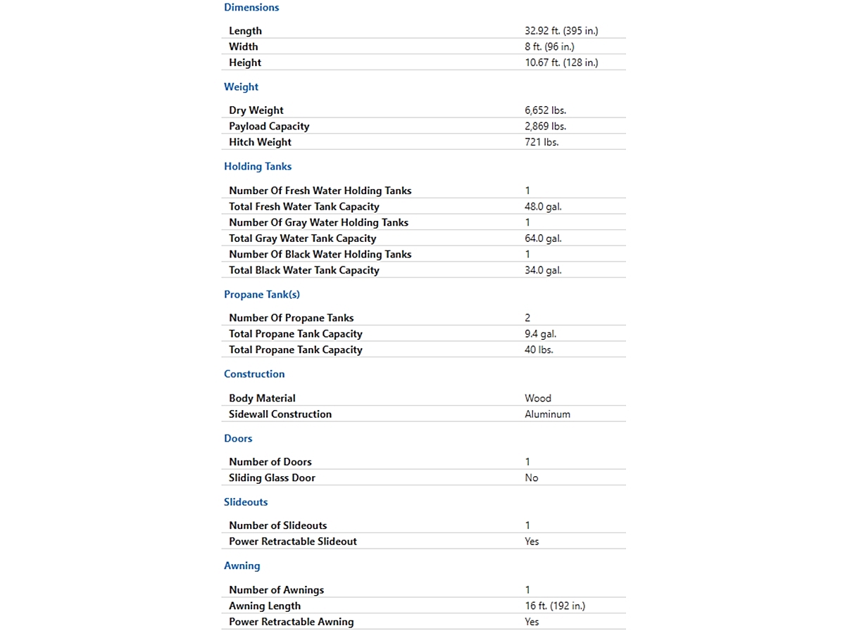 - Grey Water: 64.0 gal