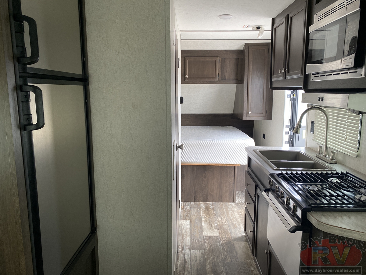 The Autumn Ridge Outfitter line of small travel trailers offers outstanding living space in a compact, easy-to-tow camper. Theyre perfect for active lifestyles, letting you haul bikes or kayaks to explore the world at your leisure. Featuring family-friendly style and comfort, each floorplan offers a different set of advantages to help you do camping your way. Select floorplans feature a large U-dinette, and the 239TBS has the added convenience of a dinette slide-out. This remarkable layout also features three queen beds, each with ultra-plush bunk mats. Upscale amenities include a three-burner range, large refrigerator and a double sink with a high-rise pull-down faucet. And you can count on Starcraft for plush, durable upholstery that enhances your interior decor and is up to the challenge of all your camping adventures.
