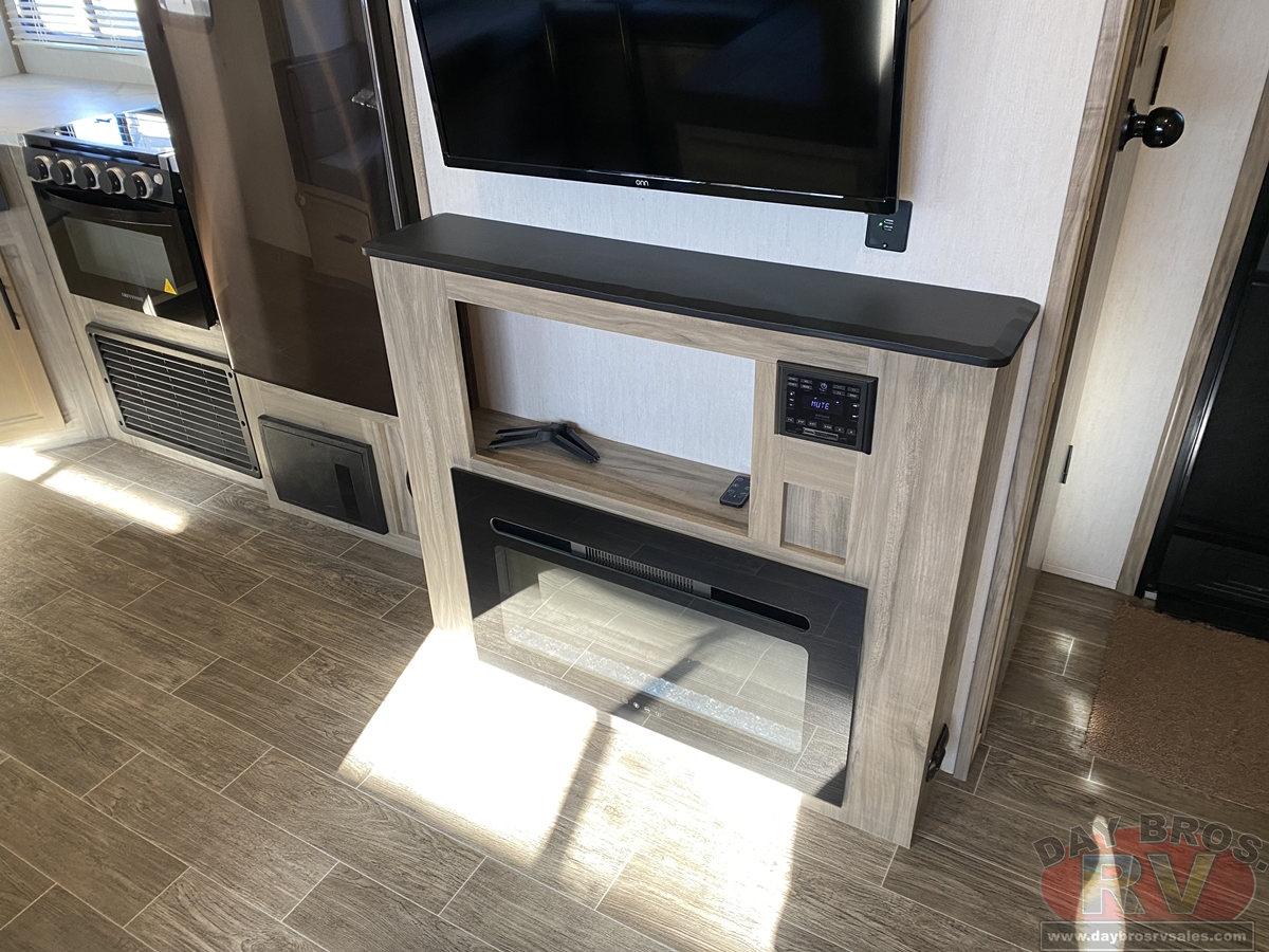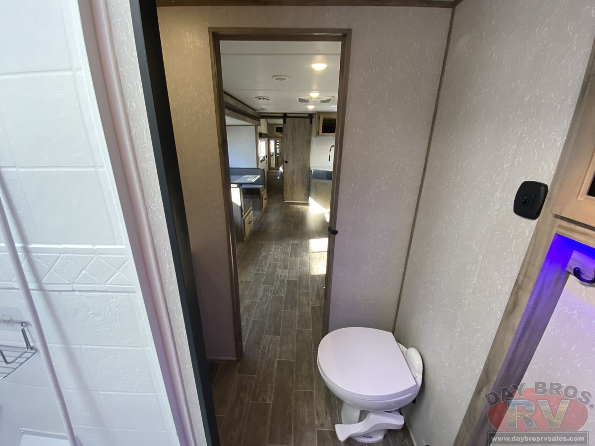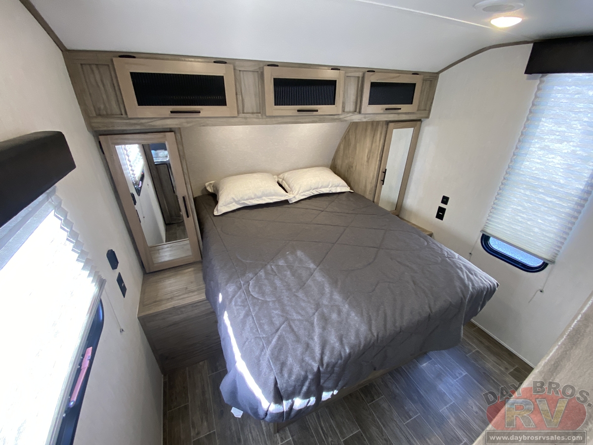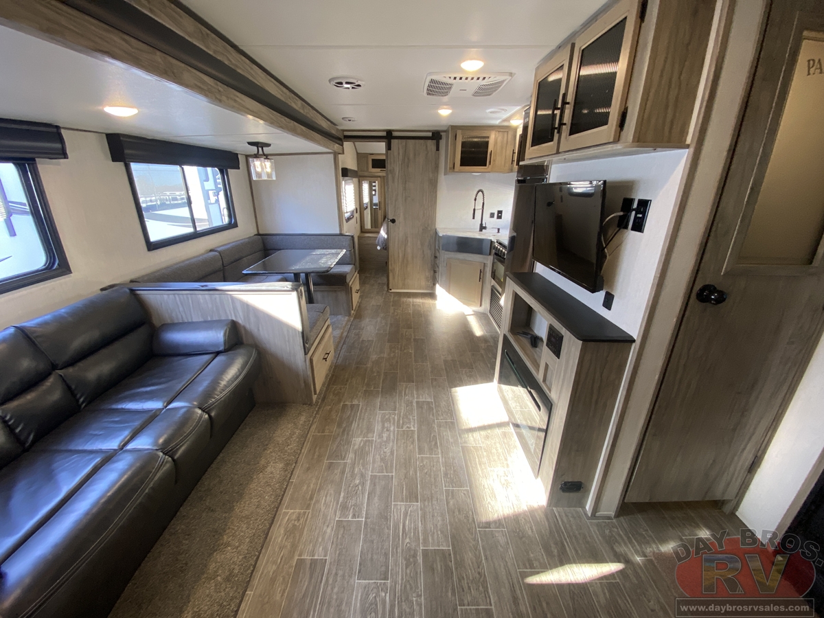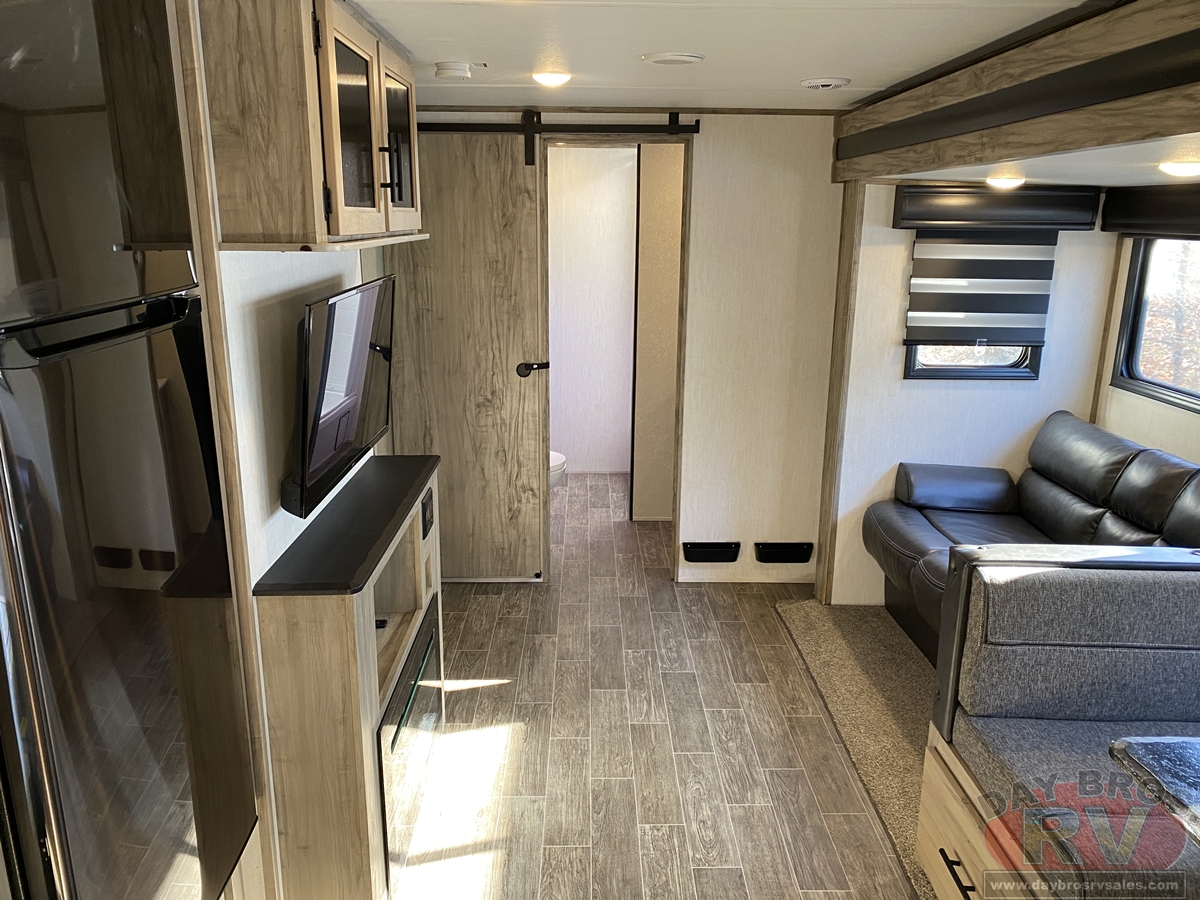 Perfect for the two of you that want to get out and tour or spend the summer at your favorite camp site! Some interior appointments include, abundant interior storage capacity, oversized rear bath with additional linen cabinet, oversized u-dinette seating surface, dual pots and pans drawers, farm-style sink and dual barn-style doors. Some exterior refinements include an oversized 20’ exterior awning and a full outside kitchen with fridge/freezer, working sink and cabinet storage!