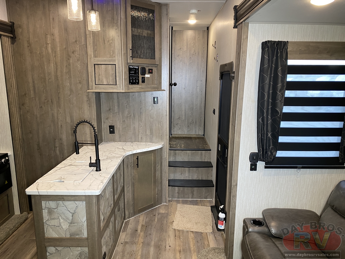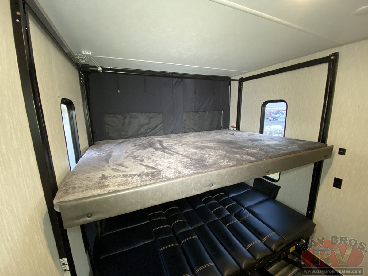 Your search is over! You have found the most affordable and versatile, full-featured toy hauler bunkhouse on the market! Why do we say bunkhouse? Because the Cherokee Wolf Pack is a toy hauler that converts to a bunkhouse in a matter of minutes. In fact, approximately half of Wolf Pack customers are bunkhouse buyers looking for more sleeping room and versatility in their unit. The Wolf Pack is not always a toy hauler or a bunkhouse. It is whatever you need it to be for the trip you are about to take. If your family likes to take a golf cart, motorcycles, ATV’s, bicycles, kayak’s, coolers, grills, firewood and all the other camping staples, but doesn’t like to take the second vehicle to get it there, look no further than the Wolf Pack! Versatility is the name of the game!