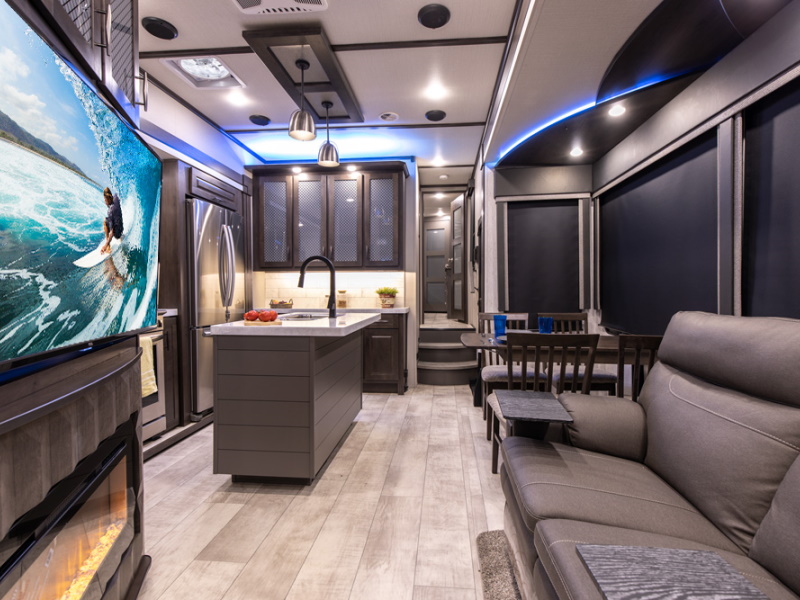 The public has spoken, and Grand Design has answered with the introduction of the all-new Momentum G-Class to its toy hauler lineup. The lighter G-Class series is built without surrendering any of the legendary quality, innovation, and functionality that our family of Momentum owners have come to love. Ceiling and slide out heights still stand tall along with our wide-body platform to create a feel of spaciousness.