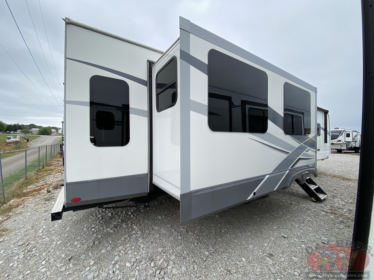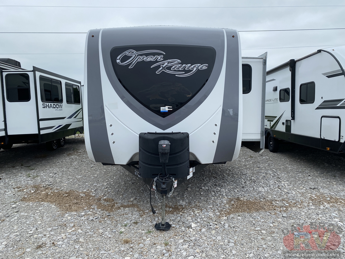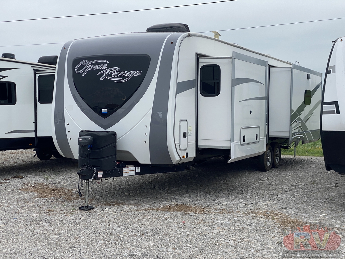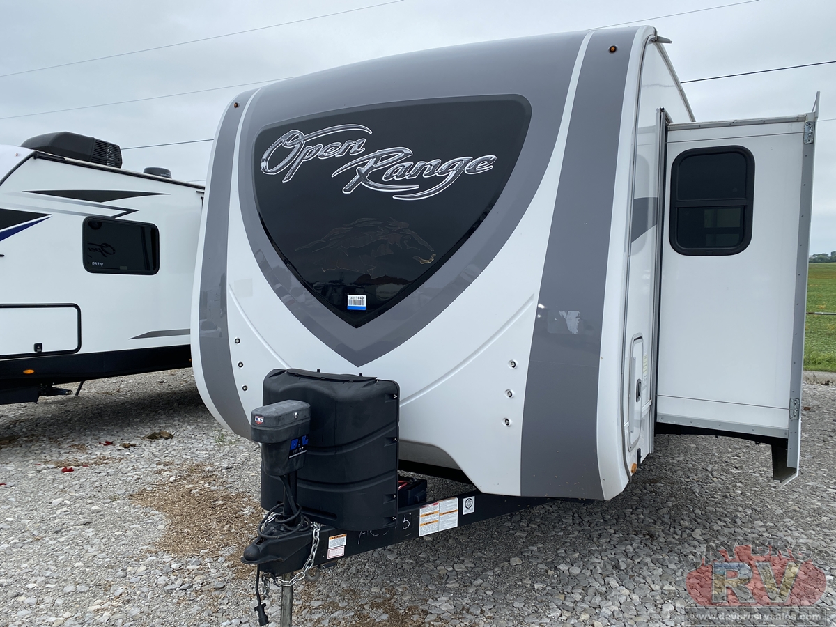 Planning your next adventure? Take us along for the ride! The Open Range travel trailer is constructed with space and durability in mind. With a 100" wide body, patented flush floor slides and a PVC roofing membrane, this travel trailer has comfort you can count on. Its stylish interiors coupled with its list of standard amenities make this travel trailer the perfect choice. Features include a power awning with LED lighting and integrated speakers, Keyed-Alike™ entry and baggage doors, a large freestanding range and oven and much more. These units are all wired for Wi-Fi and feature our RidgeLINK™ Bluetooth system, for convenience and connection. Live in the moment with the Open Range travel trailer.