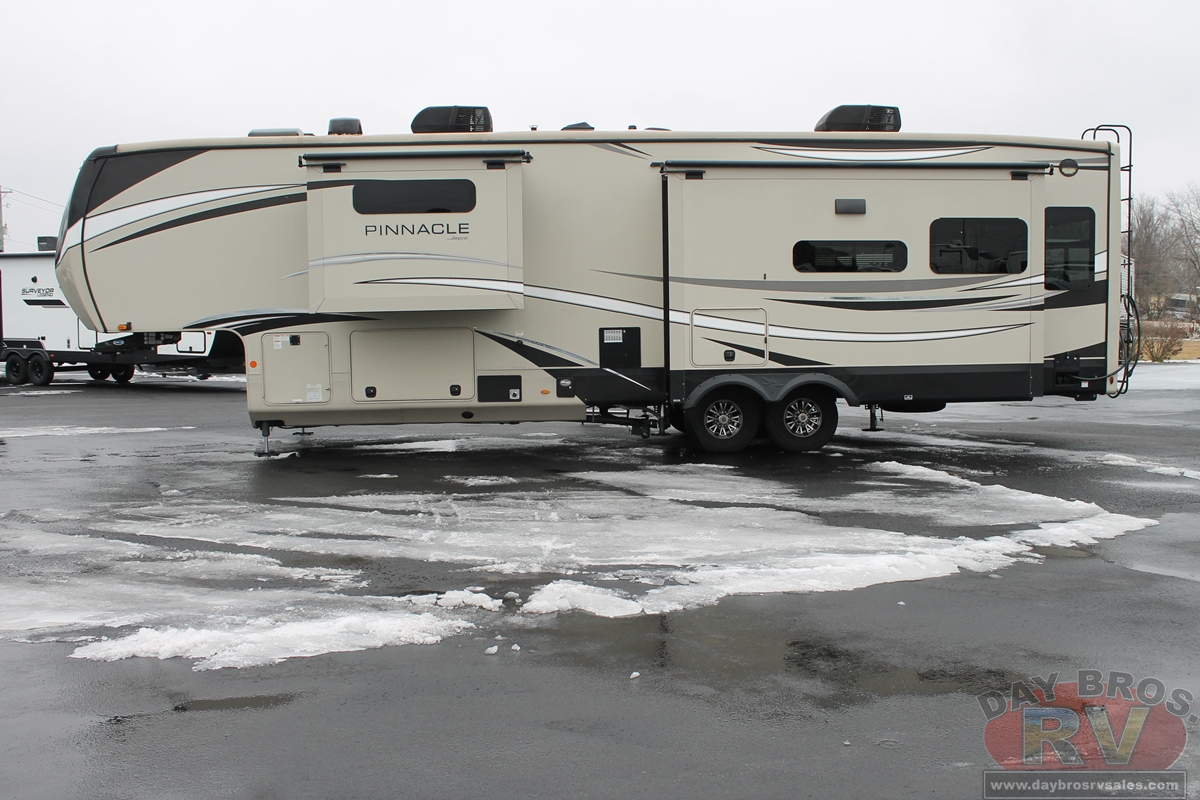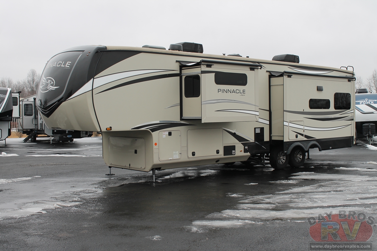 The Pinnacle is among the most luxurious RVs in the Jayco lineup. Plus, its premium towing gear and full-time warranty coverage make this luxury fifth wheel the complete package.