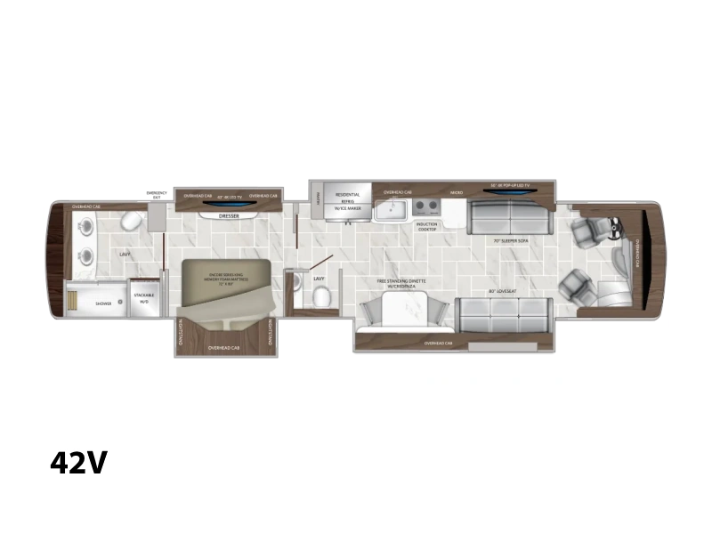 The list of standard features will not disappoint, including quartz countertops throughout, Roadwire® heated and cooled driver and passenger seats, Samsung black stainless appliances and exclusive Apex custom residential furniture. No matter what your expectations are, the American Dream will surpass them.