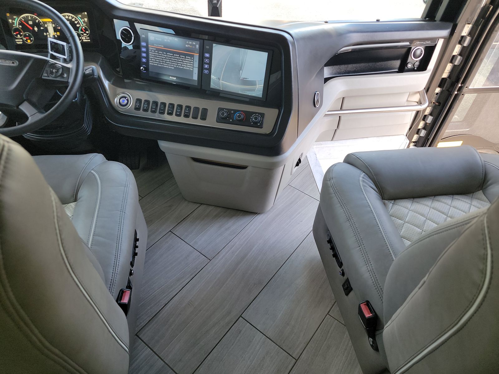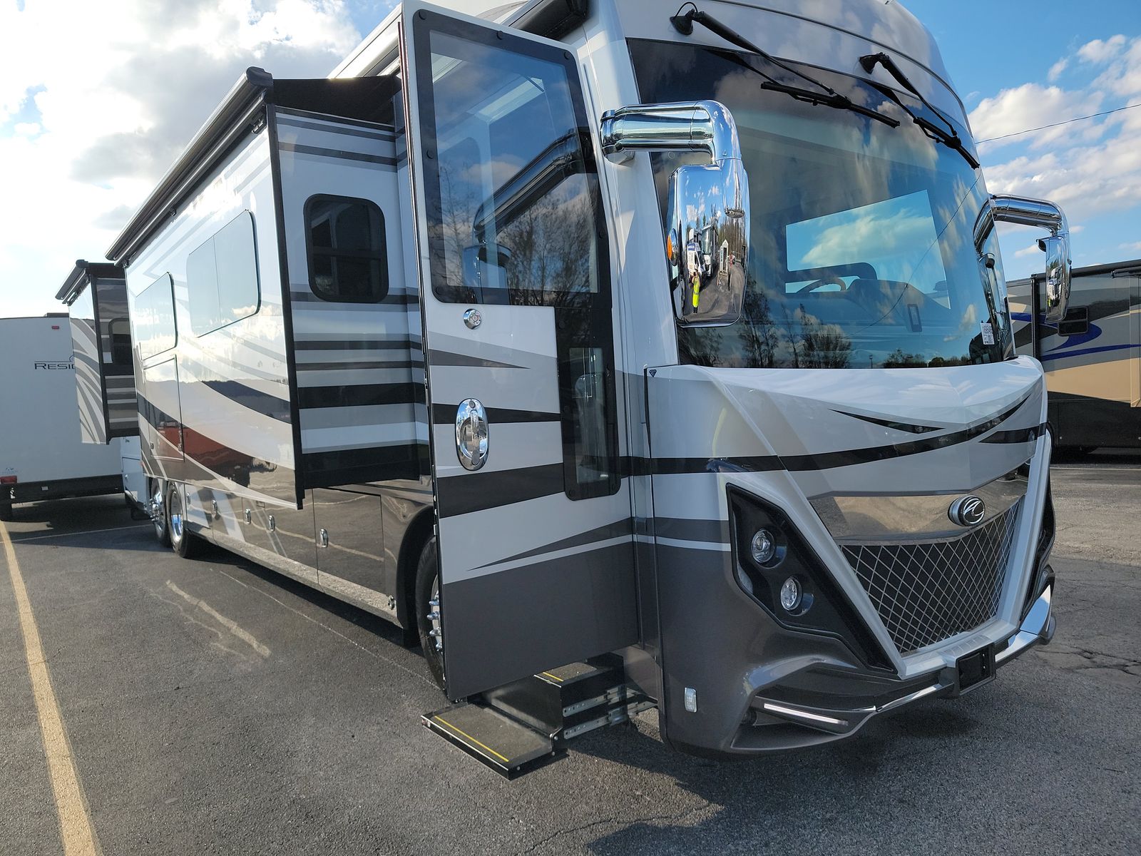 The latest version of American Dream goes beyond your imagination. Powered by an incredible 605 horsepower engine (select floorplans), even our largest 45-foot floorplan is a joy to drive—especially since it’s equipped with V-Ride and UltraSteer, and safety features like OnGuard and RoadWatch.