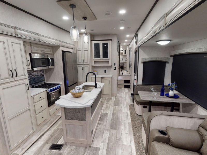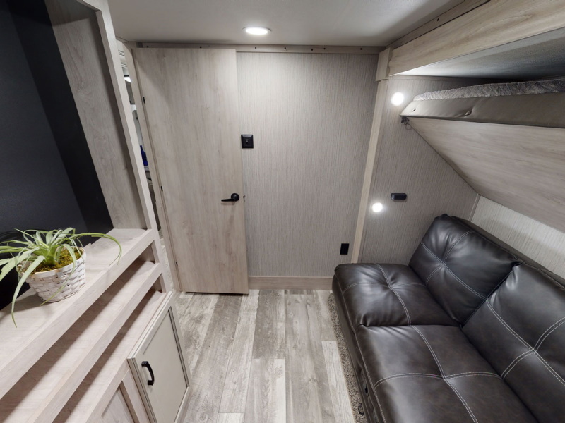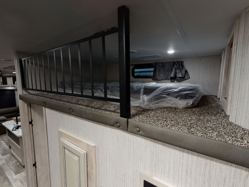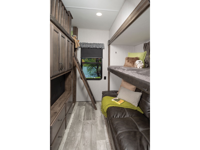 Whether it's just the two of you or the entire family, our 3660MB will fit your needs. This mid bunk loft model gives you all the space you are looking for, without sacrificing living space. The bonus room in the middle provides a haven to sleep, or extra storage for your clothes and hobbies. The 3660MB can transform into anything you can dream of.
