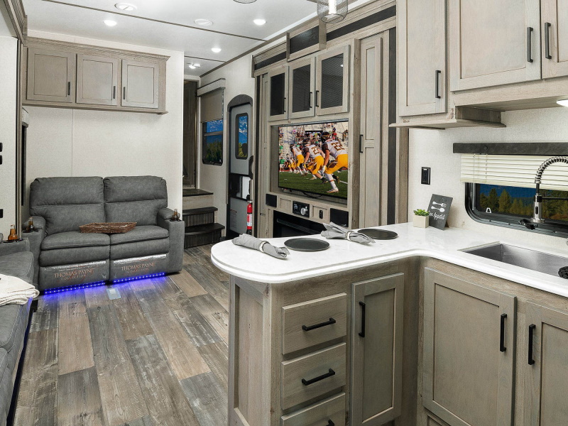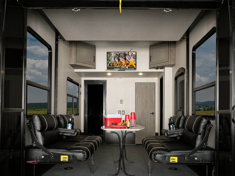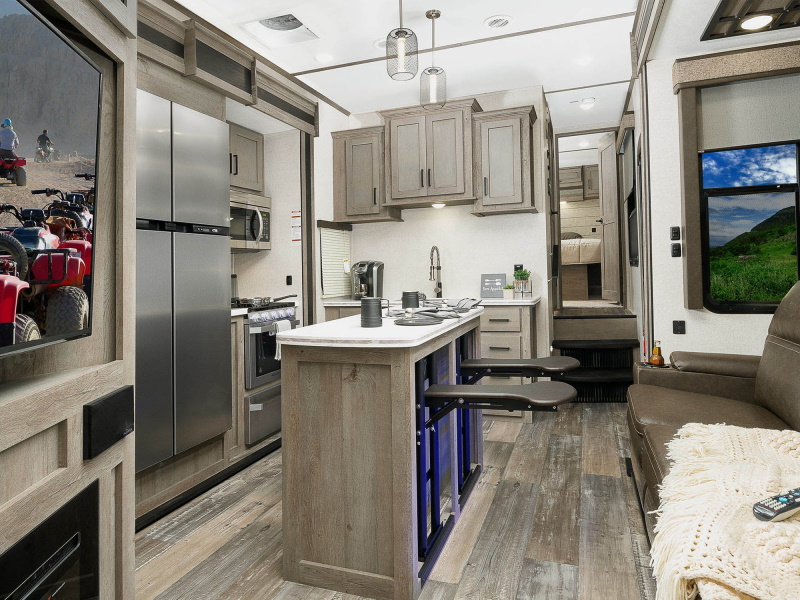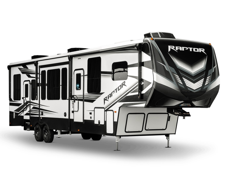 Keystone Raptor sets the standard for hardworking and innovative toy hauler fifth wheels. A favorite among thrill-seekers, Raptor has rapidly developed a new fan base. Working RVers, hobbyists, and outdoor enthusiasts of all types appreciate Raptor's flexible floorplans and large garages. Multi-zone living and sophisticated design make Raptors one of the best toy hauler brands for families as well. Raptor toy haulers strike the perfect balance of creature comfort and rugged flexibility to deliver no-limits adventure that evolves as you do.