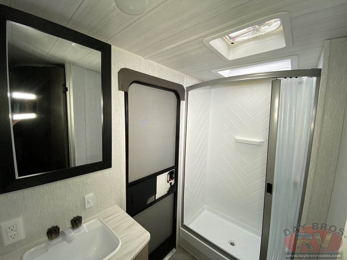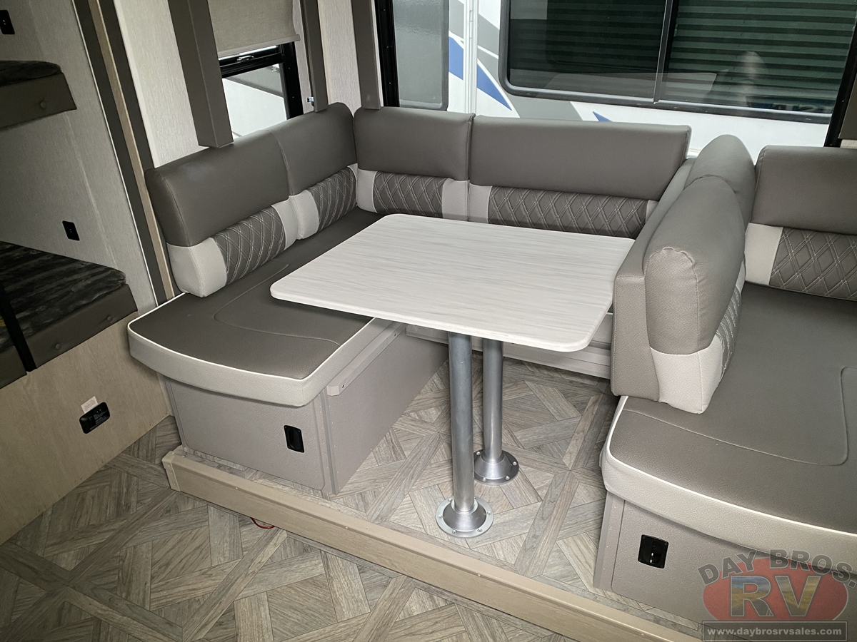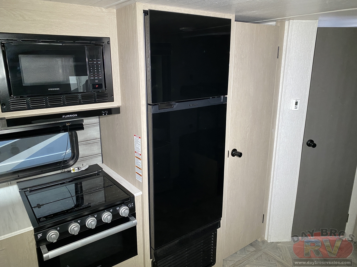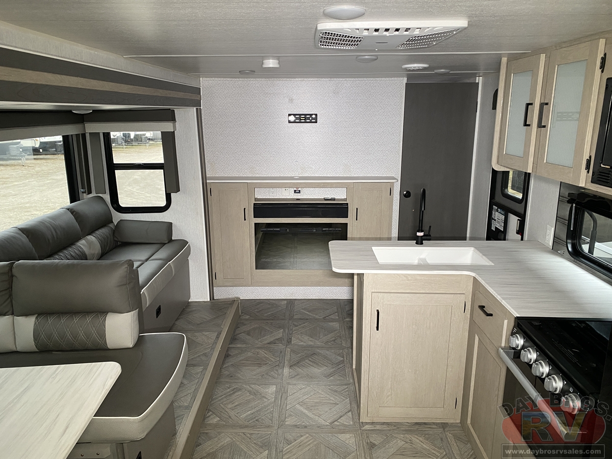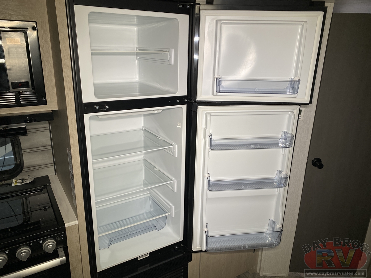 The 263BHXL is perfect for family travels. The rear features two oversized bunks for the kids, with plenty of space to stretch out. The grown-ups will sleep soundly in the front queen bedroom, which includes hanging closets and under-bed Stow N Go Storage. The living area includes panoramic windows and the Versa-Lounge. The kitchen provides a 11 CU. FT. refrigerator and TONS of storage.