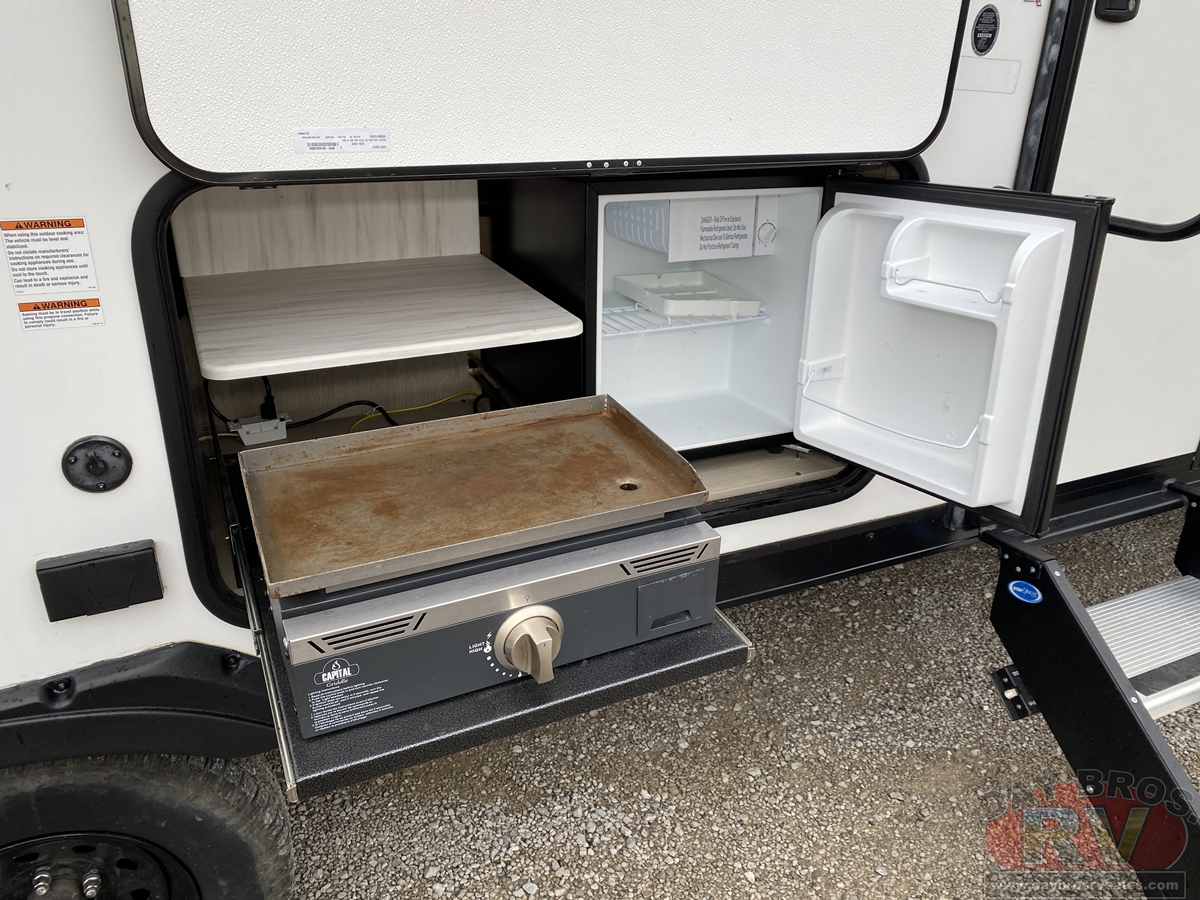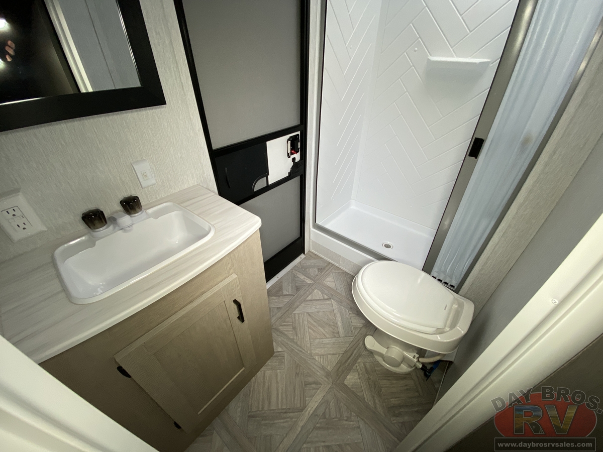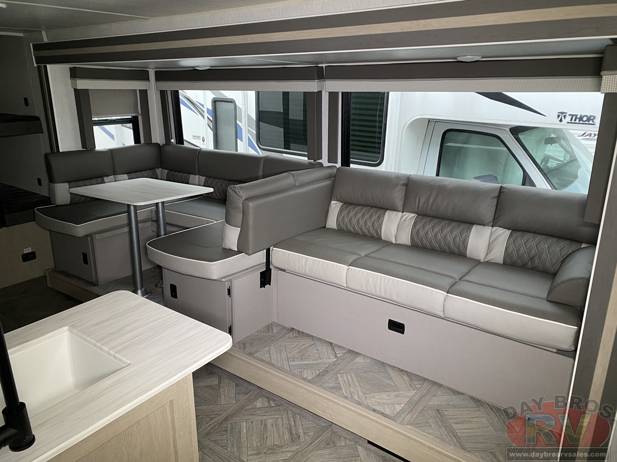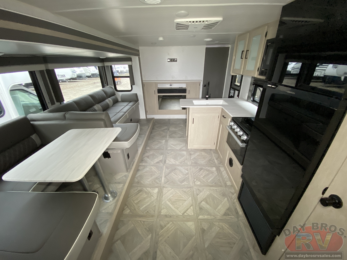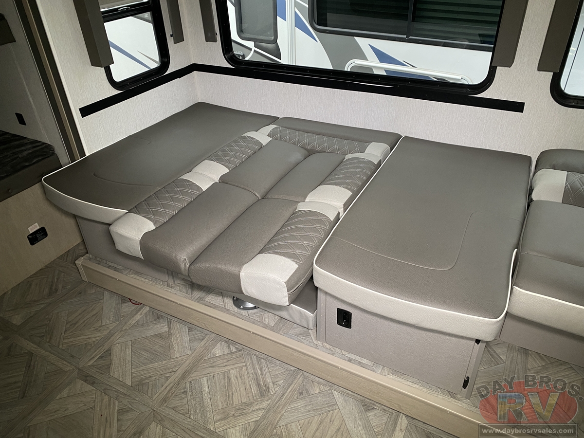 The 263BHXL is perfect for family travels. The rear features two oversized bunks for the kids, with plenty of space to stretch out. The grown-ups will sleep soundly in the front queen bedroom, which includes hanging closets and under-bed Stow N Go Storage. The living area includes panoramic windows and the Versa-Lounge. The kitchen provides a 11 CU. FT. refrigerator and TONS of storage.