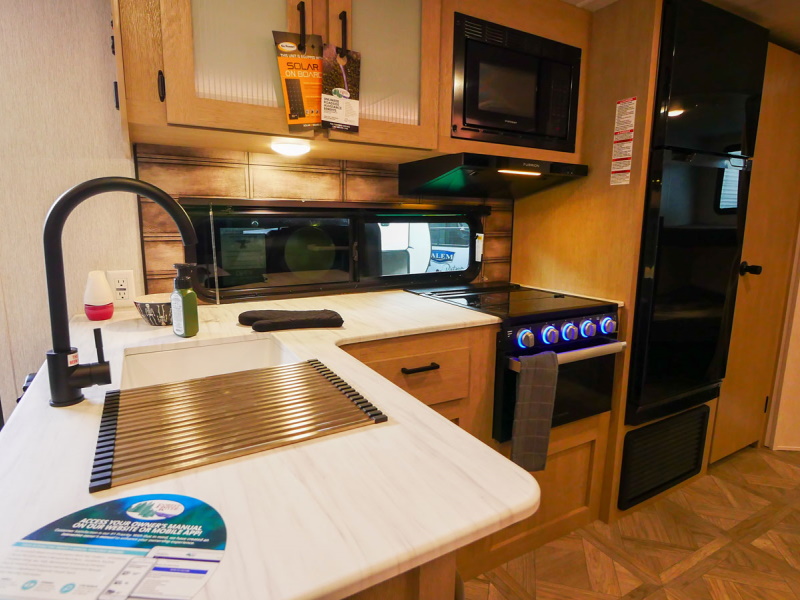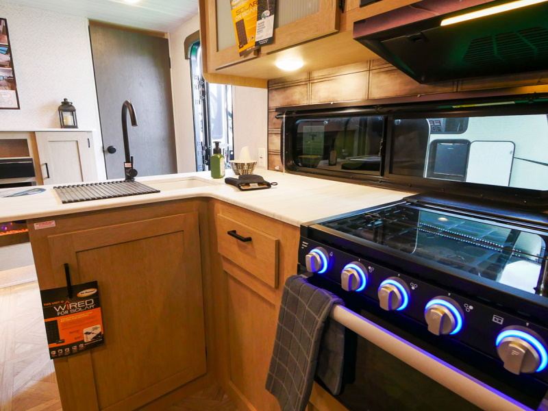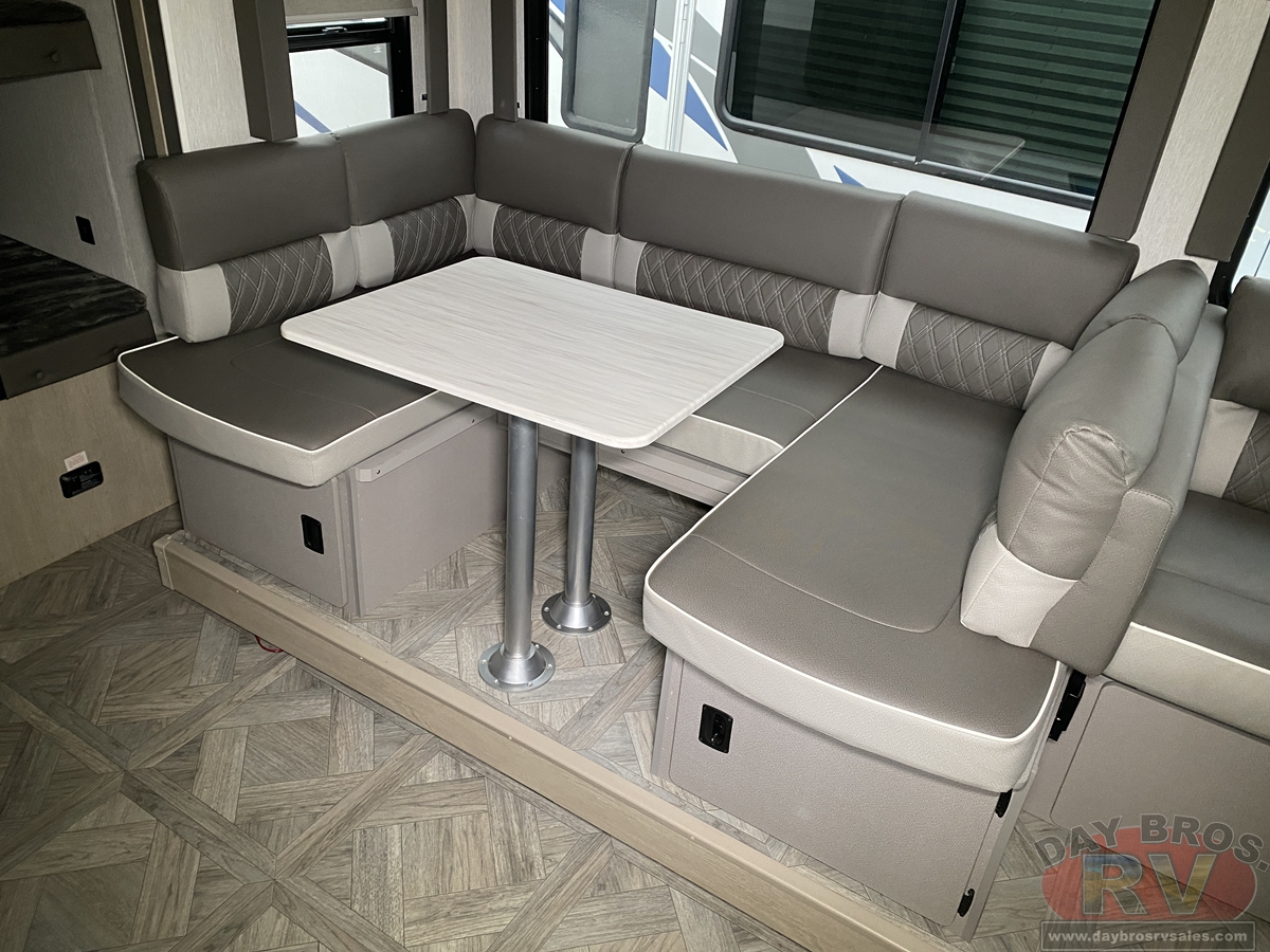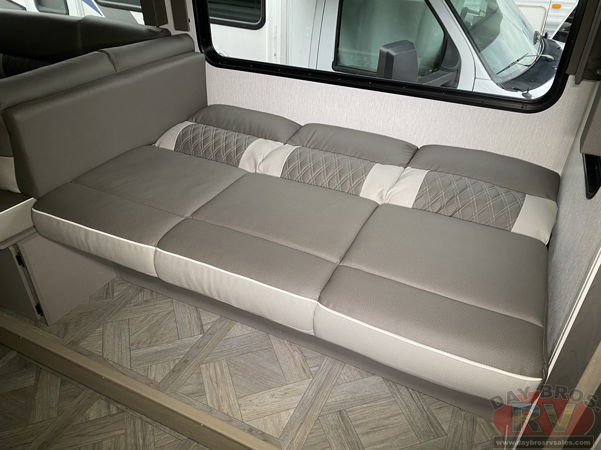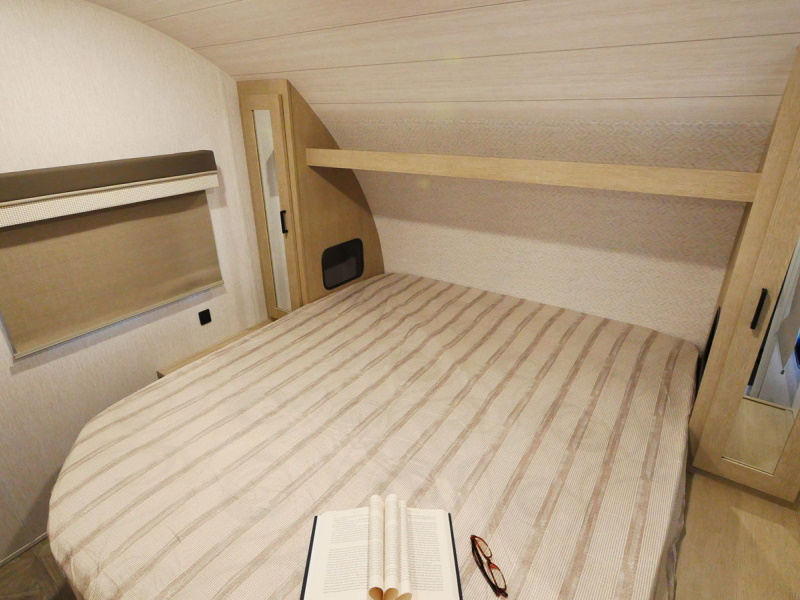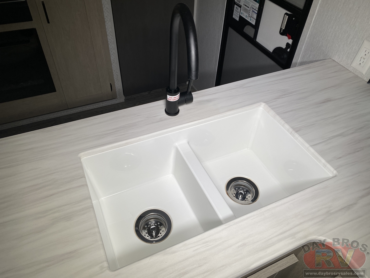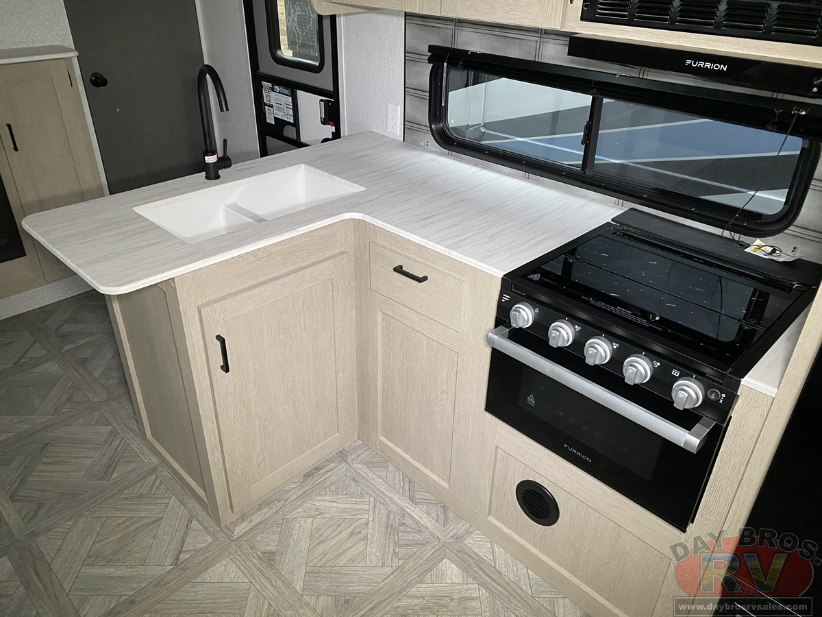 The 263BHXL is perfect for family travels. The rear features two oversized bunks for the kids, with plenty of space to stretch out. The grown-ups will sleep soundly in the front queen bedroom, which includes hanging closets and under-bed Stow N Go Storage. The living area includes panoramic windows and the Versa-Lounge. The kitchen provides a 11 CU. FT. refrigerator and TONS of storage.