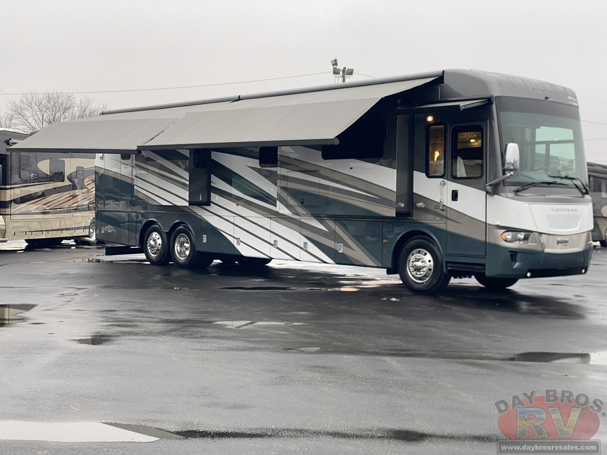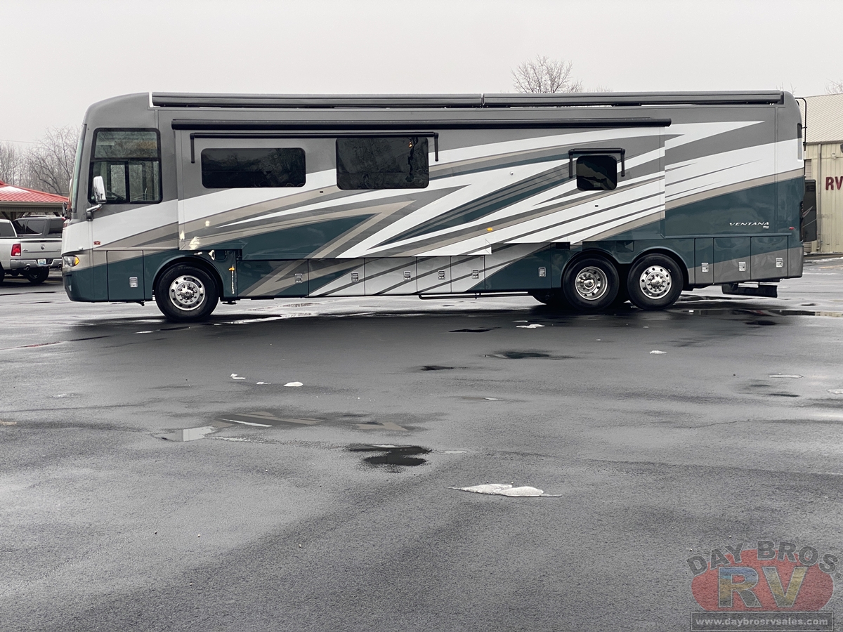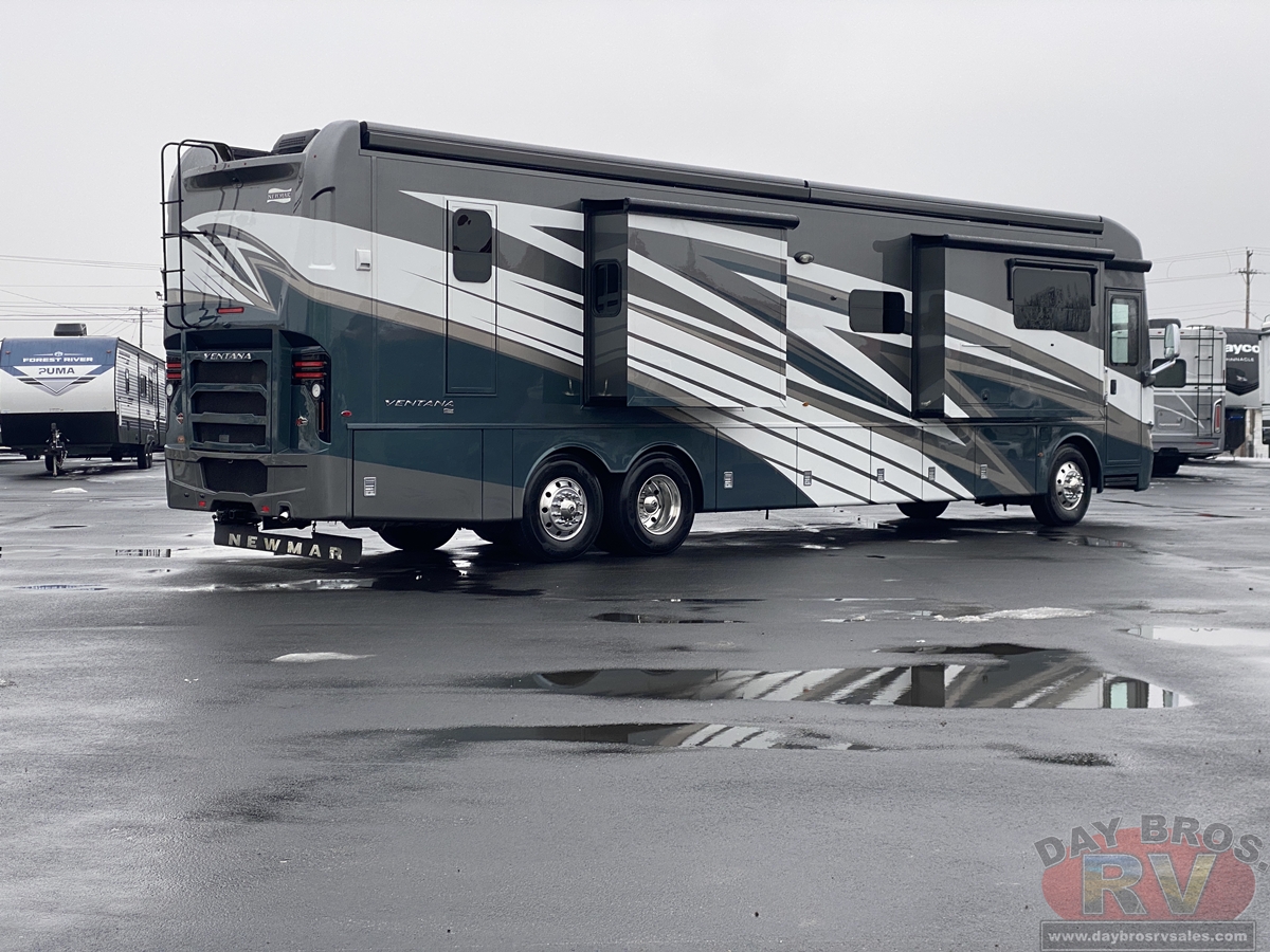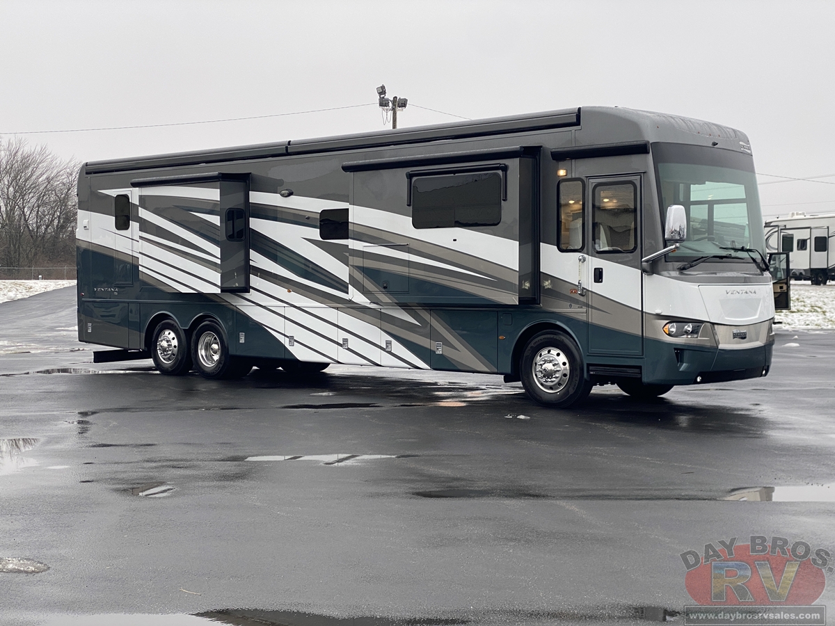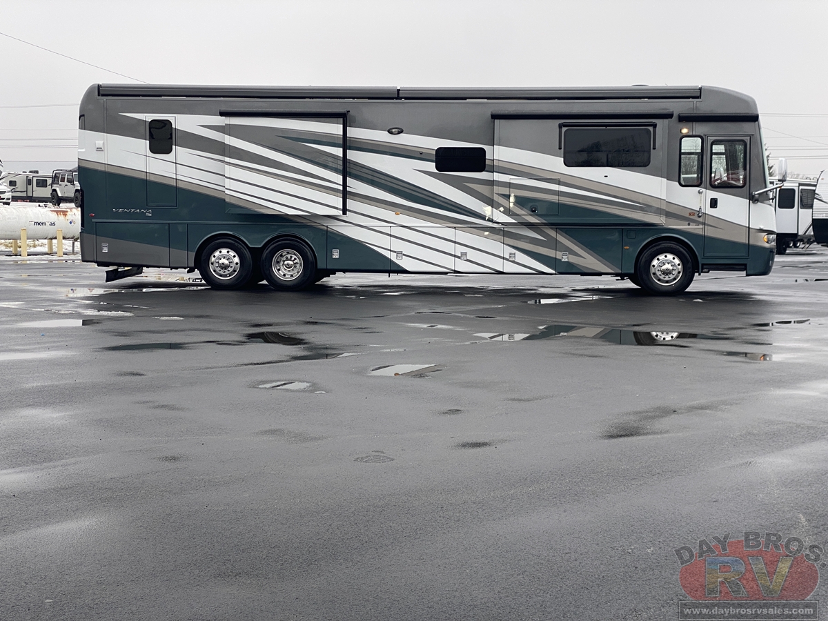 The 2023 Ventana diesel coach is available in eleven unique floor plans, providing plenty of options to suit your needs. Floor plan 4068 is a bath and a half model with a patio side dinette, while 4328 is a full wall slide with an angled galley.