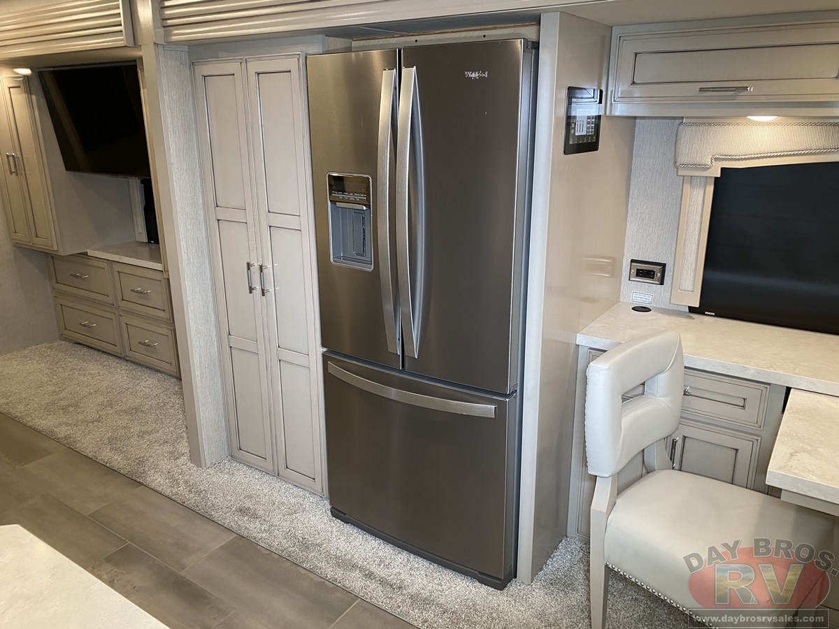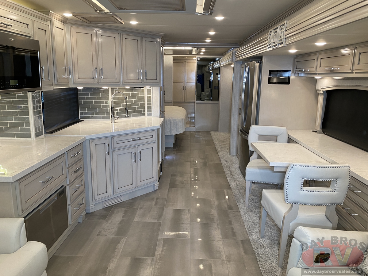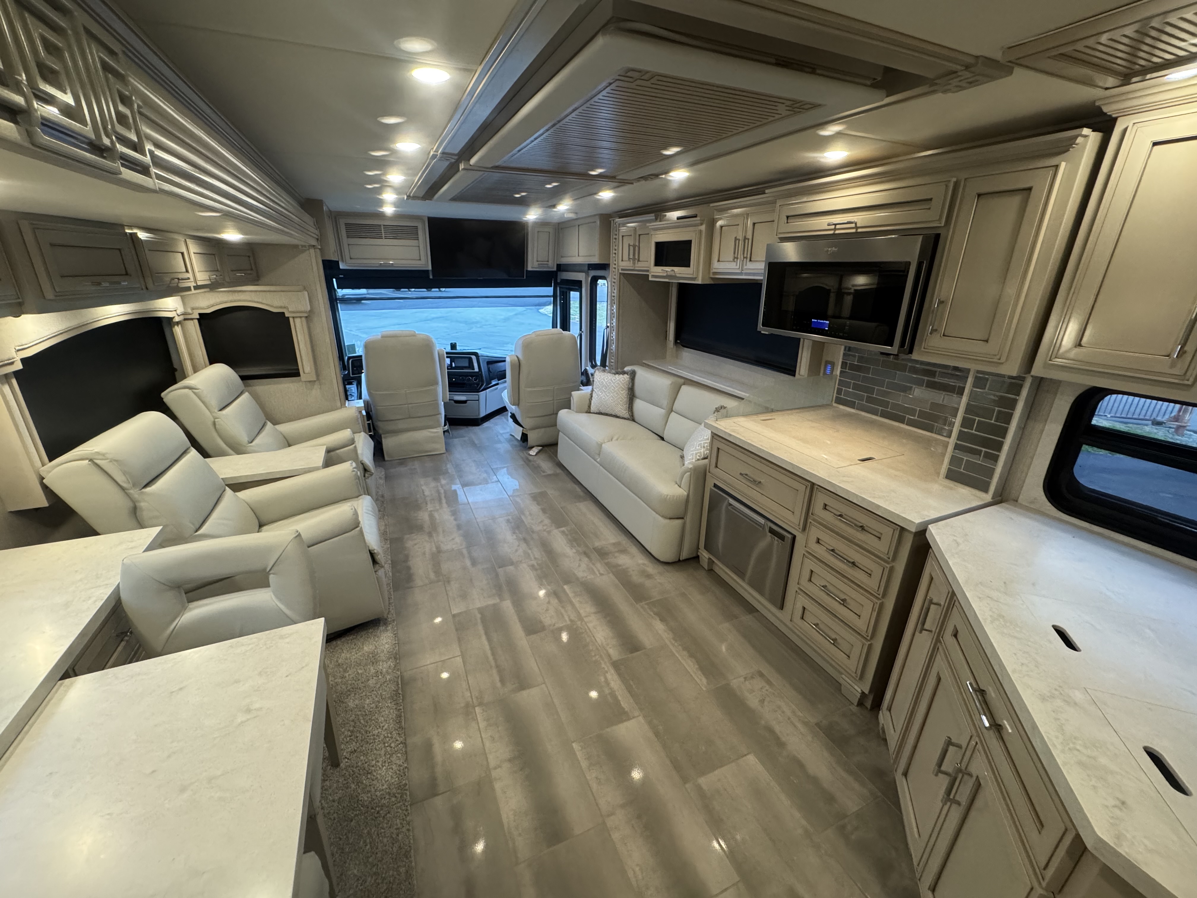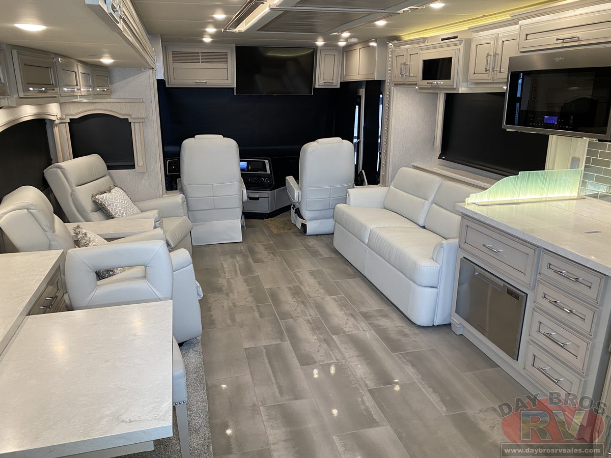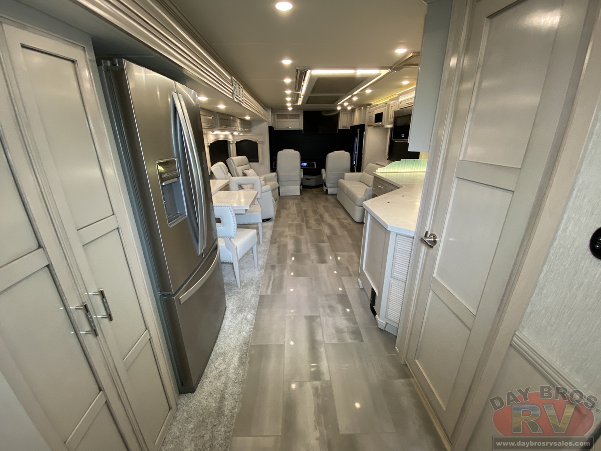 The 2023 Ventana diesel coach is available in eleven unique floor plans, providing plenty of options to suit your needs. Floor plan 4068 is a bath and a half model with a patio side dinette, while 4328 is a full wall slide with an angled galley.