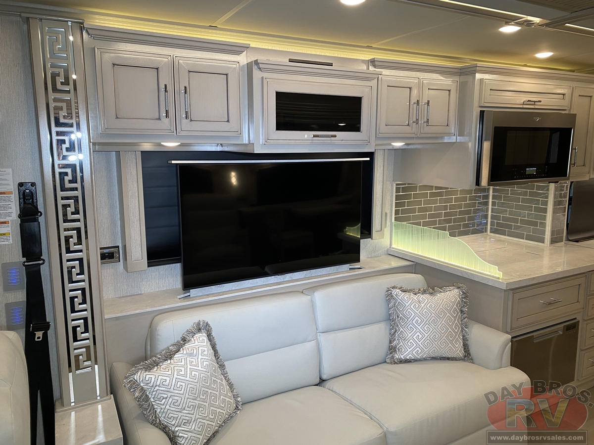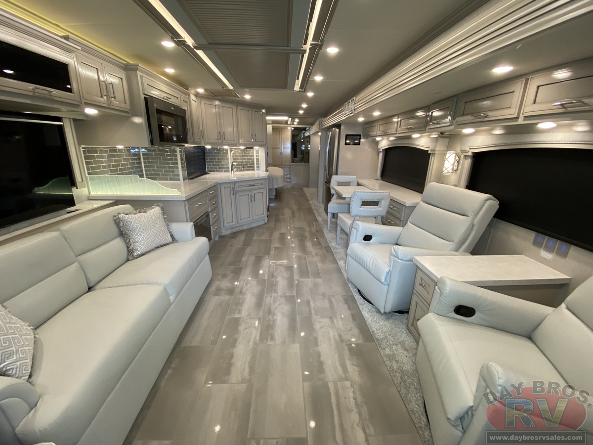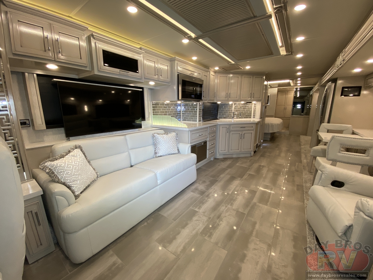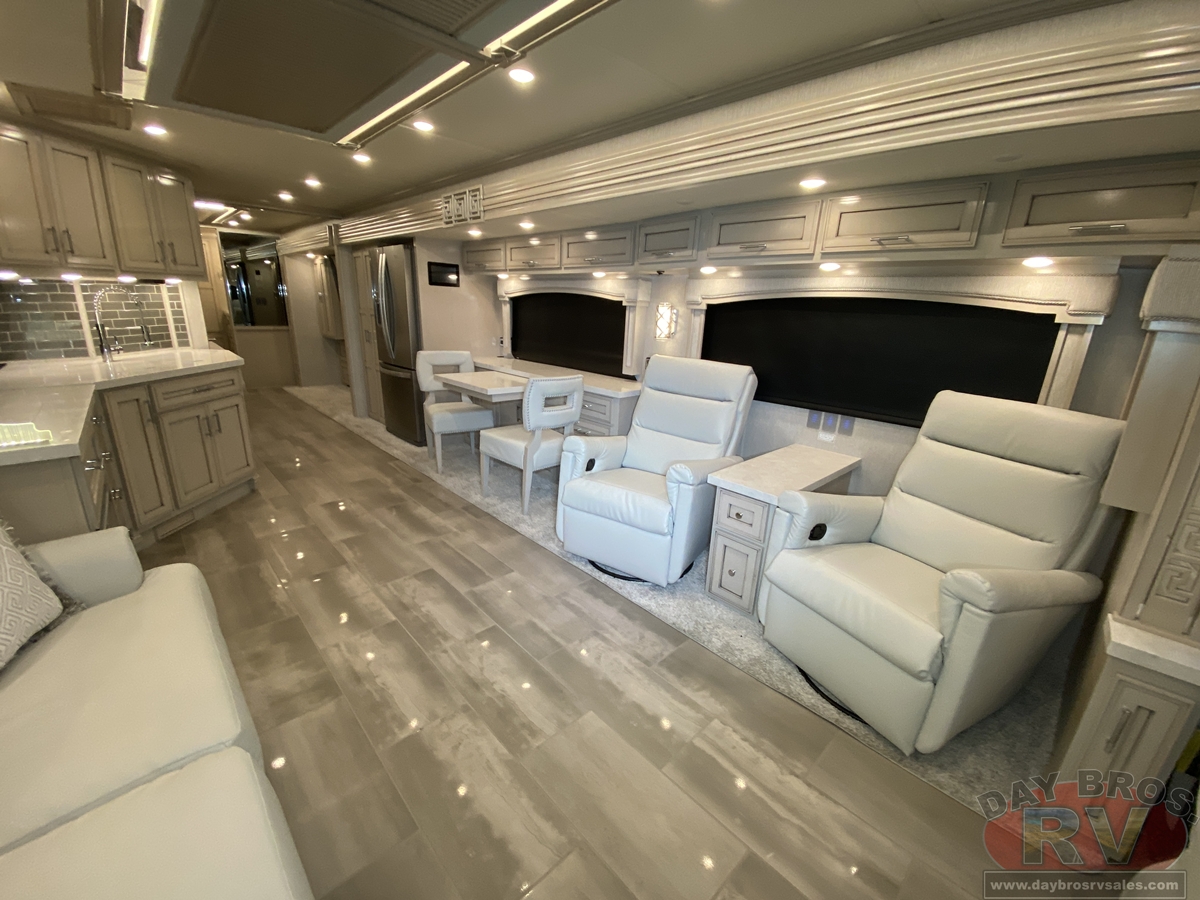 The 2023 Ventana diesel coach is available in eleven unique floor plans, providing plenty of options to suit your needs. Floor plan 4068 is a bath and a half model with a patio side dinette, while 4328 is a full wall slide with an angled galley.