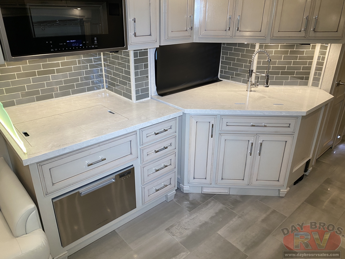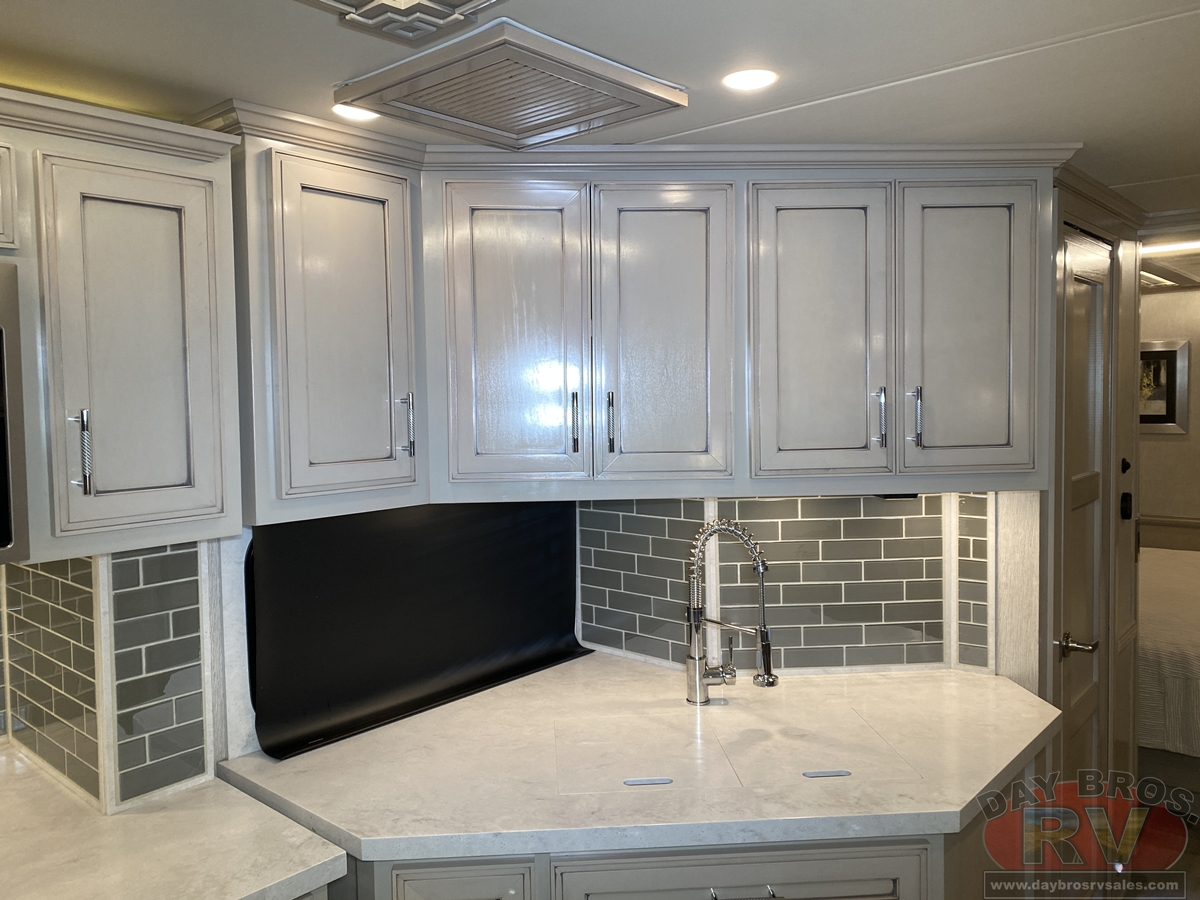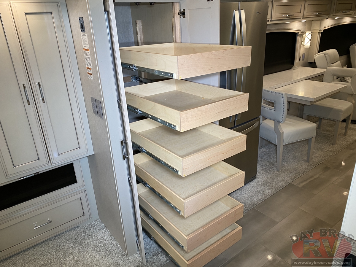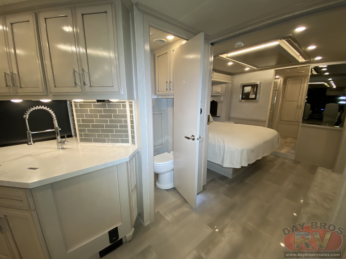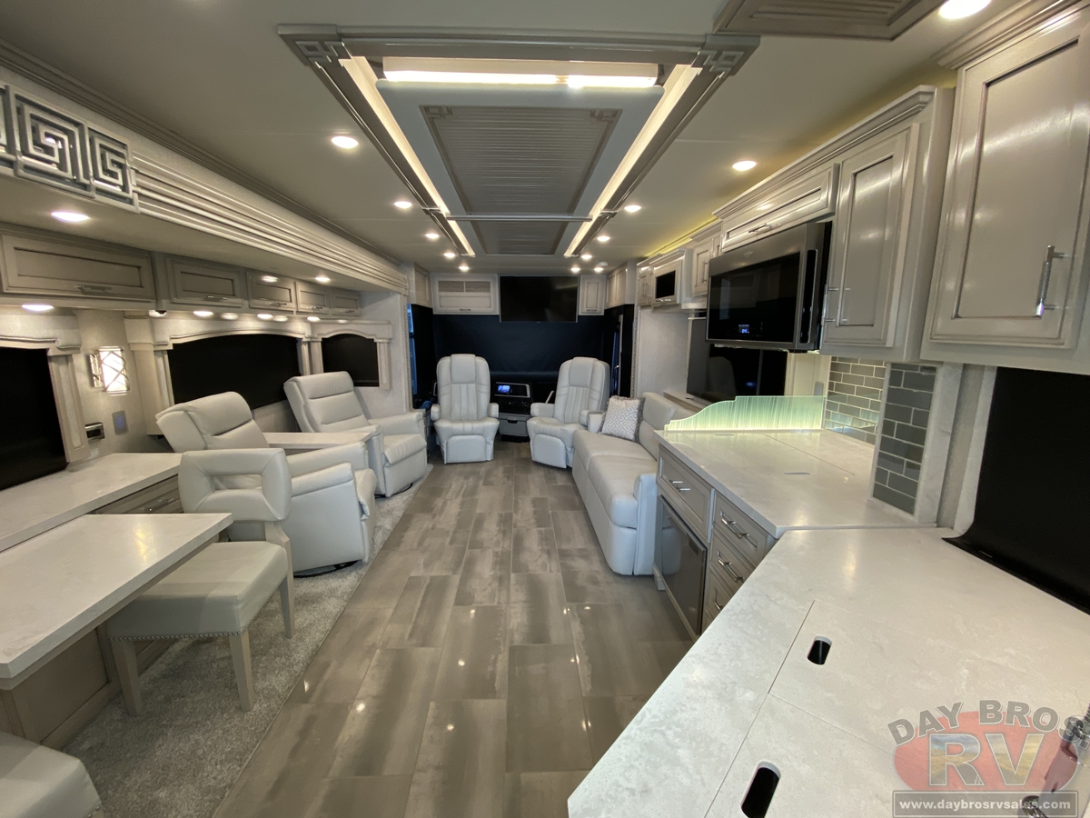 The 2023 Ventana diesel coach is available in eleven unique floor plans, providing plenty of options to suit your needs. Floor plan 4068 is a bath and a half model with a patio side dinette, while 4328 is a full wall slide with an angled galley.