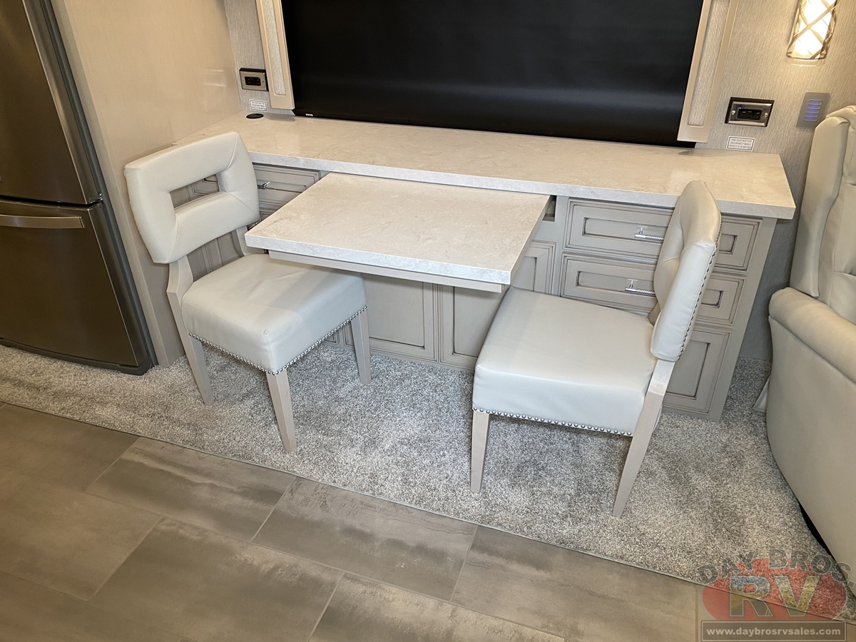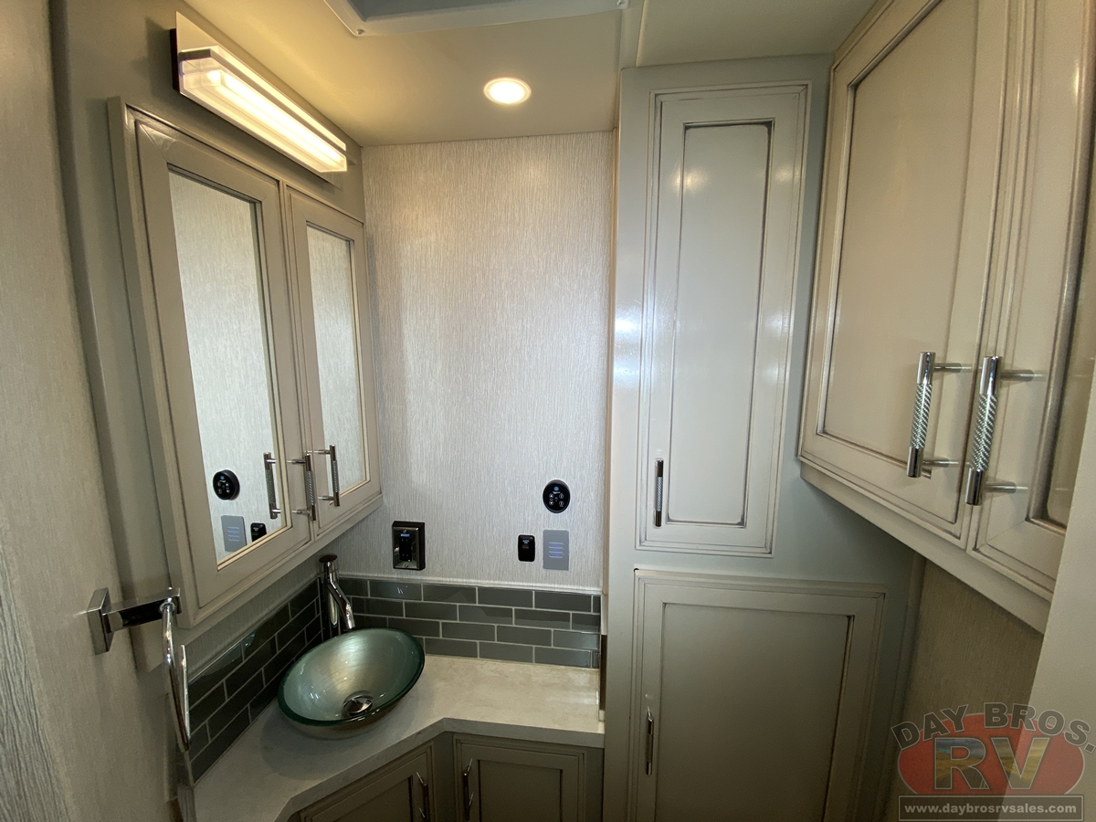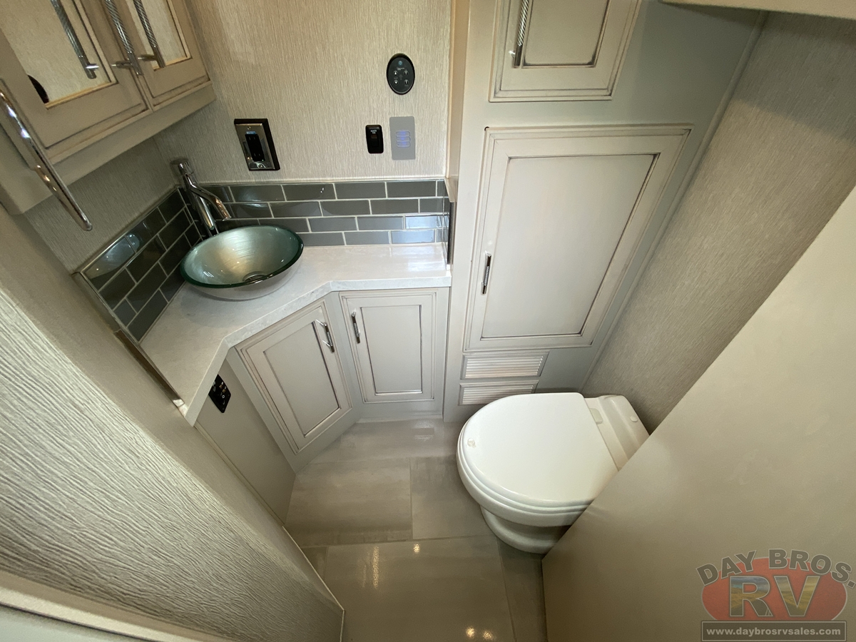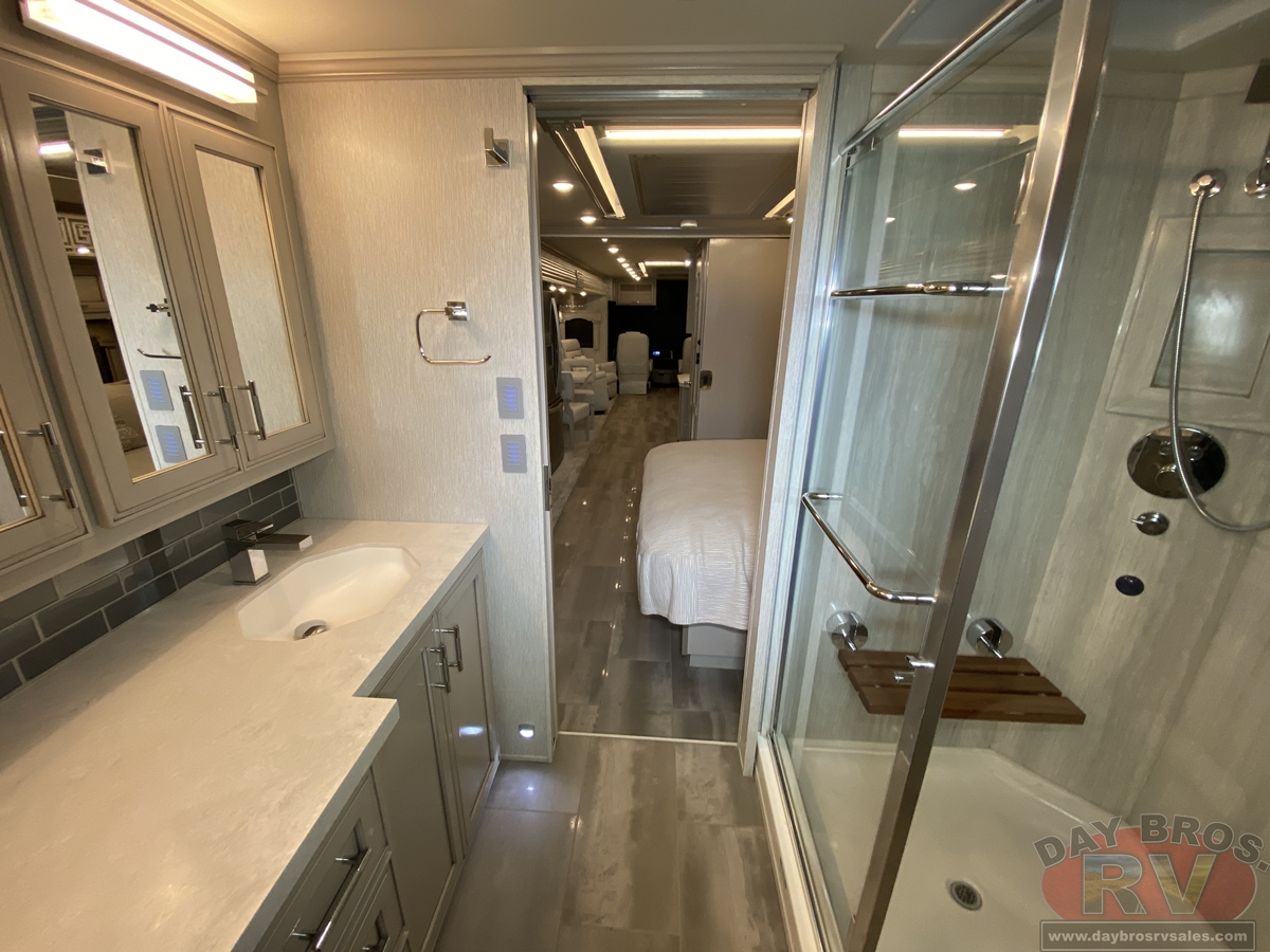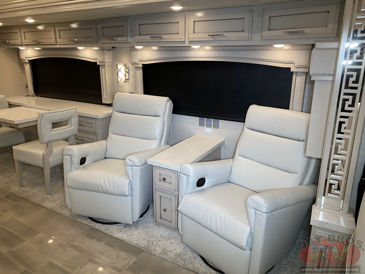 The 2023 Ventana diesel coach is available in eleven unique floor plans, providing plenty of options to suit your needs. Floor plan 4068 is a bath and a half model with a patio side dinette, while 4328 is a full wall slide with an angled galley.