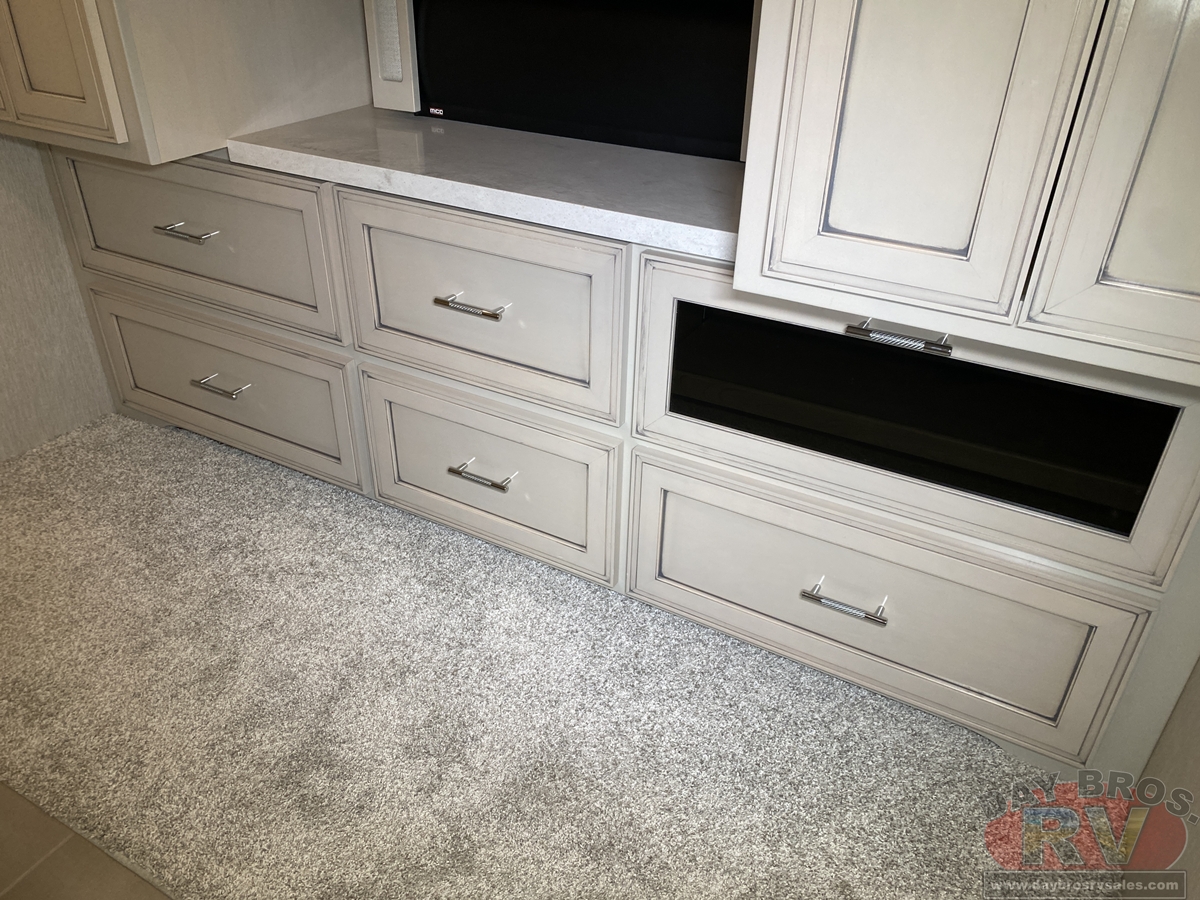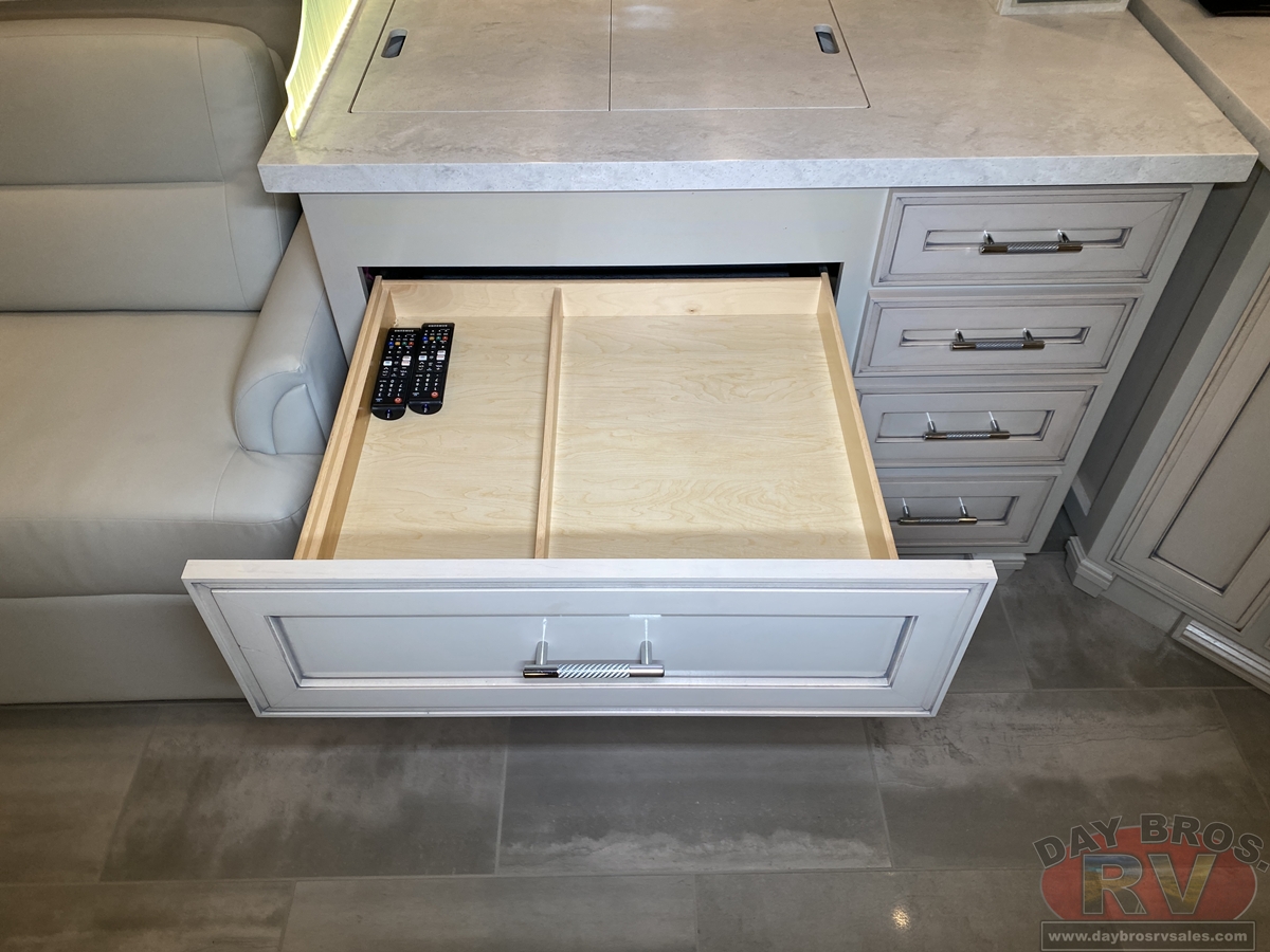 - TV Jack and 110 Volt Recept in Door Side Exterior Storage Compartment