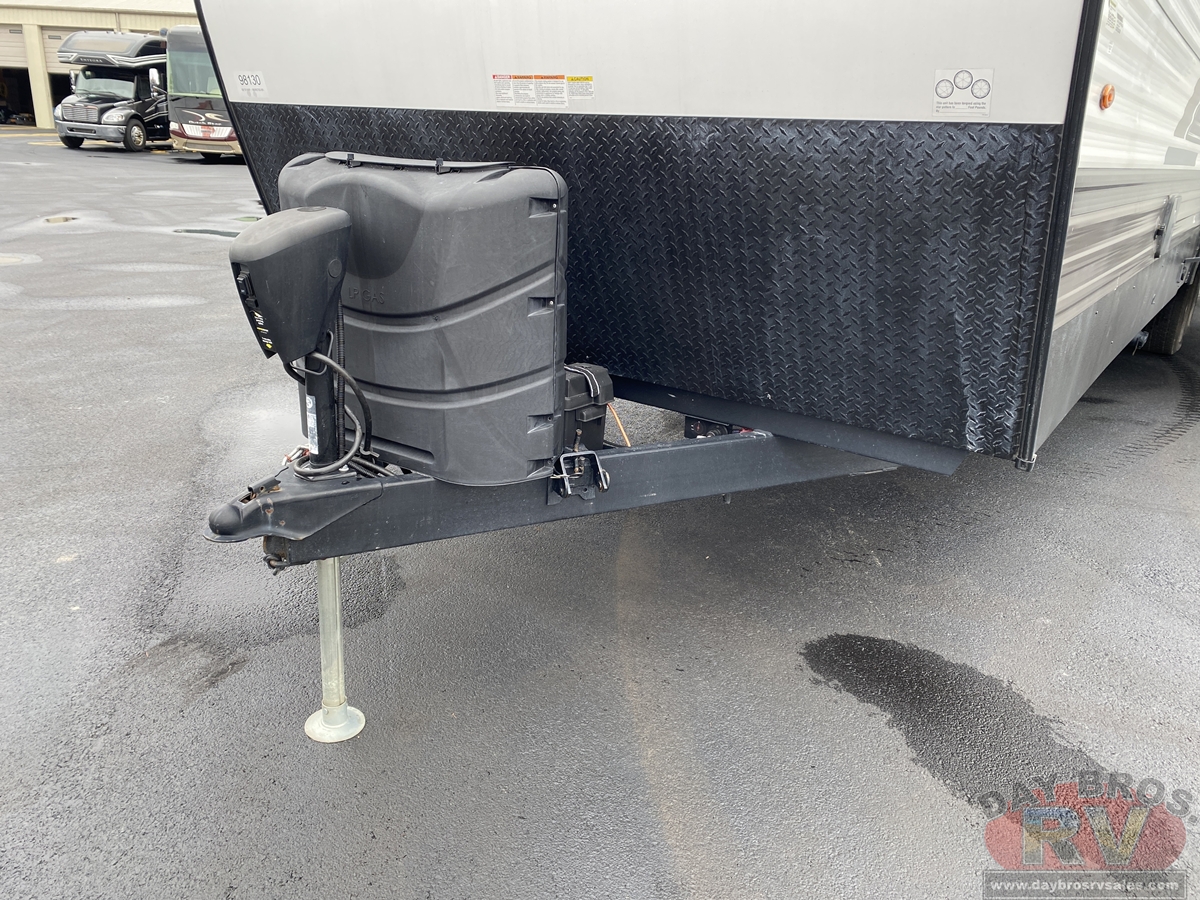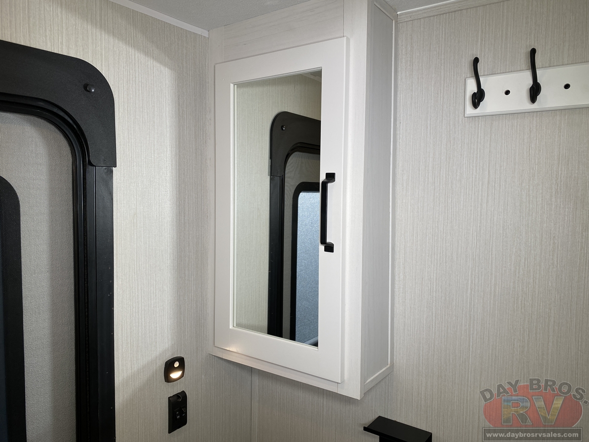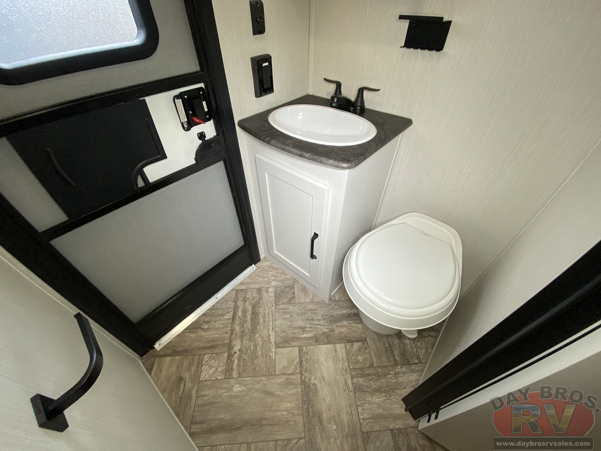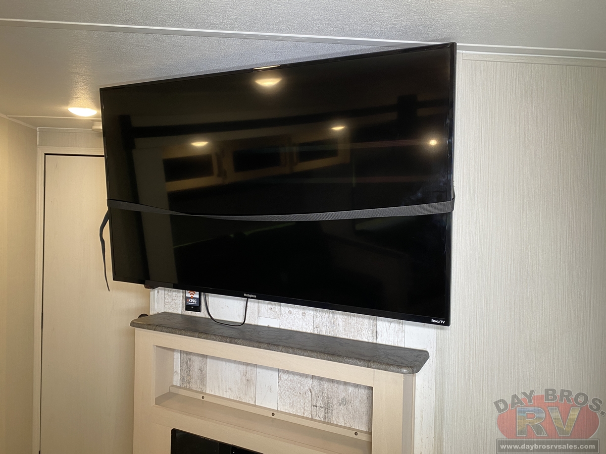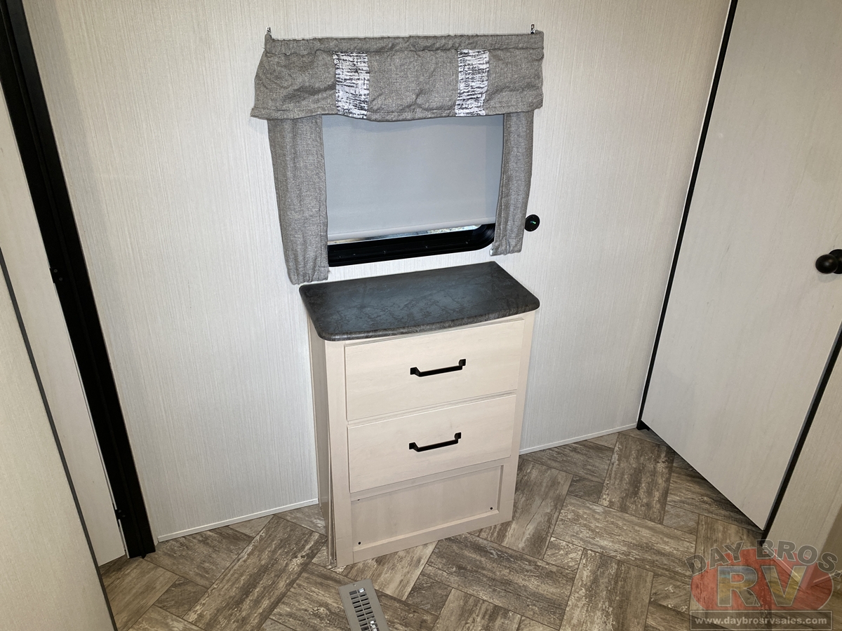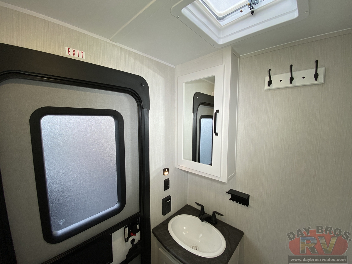 This bunk house travel trailer supplies you a great deal of space in the front bedroom. With a slide out and a large closet for all of your clothes, it will feel like your bedroom at home. The bunk house in the rear provides space for all guests to be comfortable and to make things a cut above, this floor plan provides two bathrooms. Furthermore, the exterior mini camp kitchen features a fridge and a griddle for those of you who like to cook in nature.
