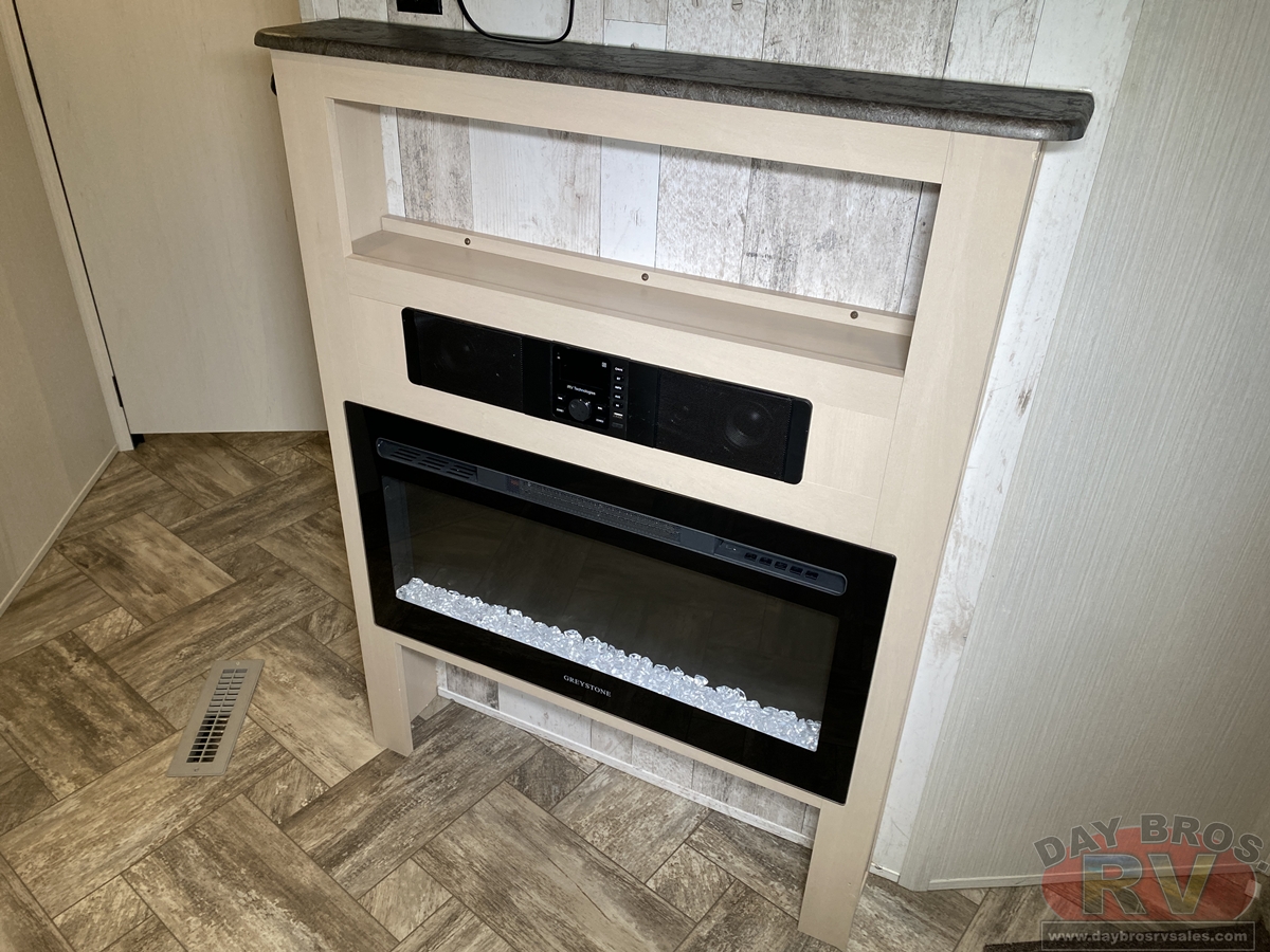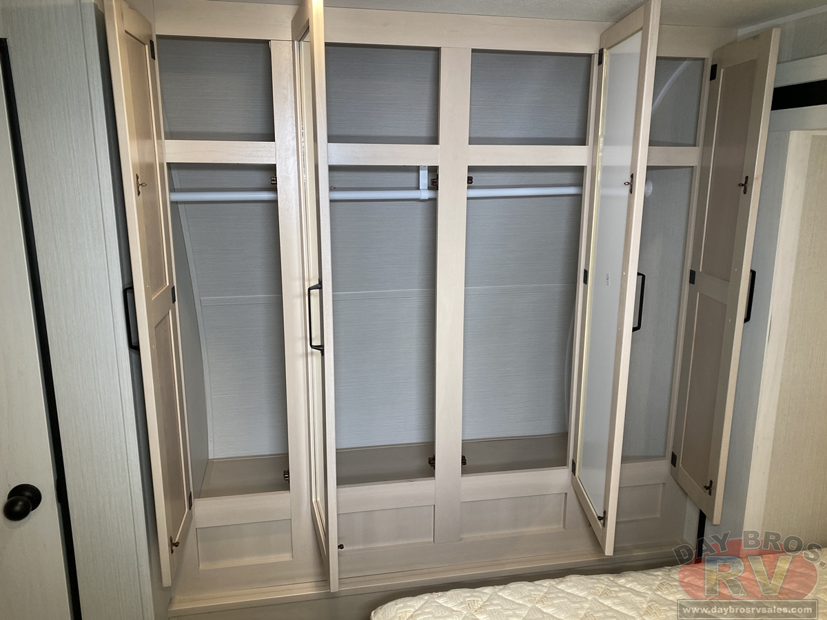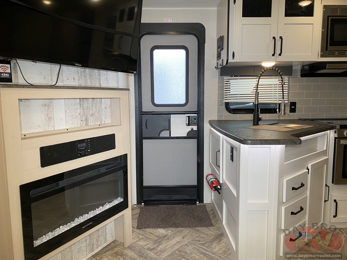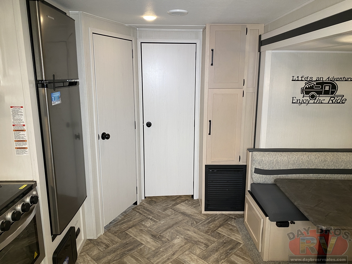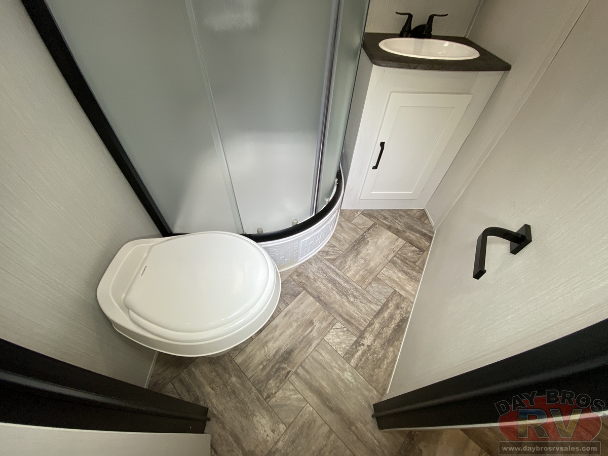 This bunk house travel trailer supplies you a great deal of space in the front bedroom. With a slide out and a large closet for all of your clothes, it will feel like your bedroom at home. The bunk house in the rear provides space for all guests to be comfortable and to make things a cut above, this floor plan provides two bathrooms. Furthermore, the exterior mini camp kitchen features a fridge and a griddle for those of you who like to cook in nature.