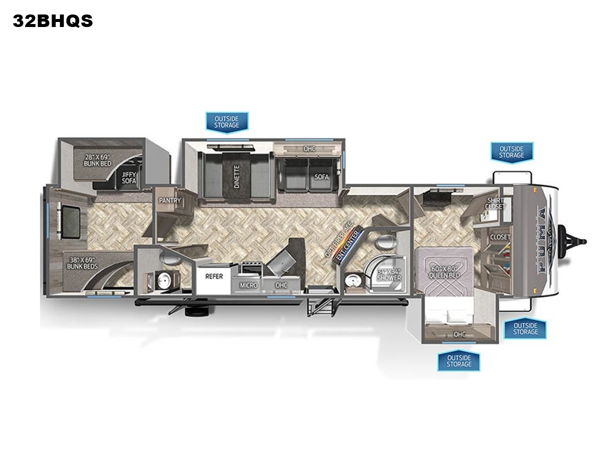 When you’re looking for adventure, nothing is better suited for family fun than a Puma. These rugged built, easy-to-tow, travel trailers make your next adventure fun & carefree. Puma offers you many floorplan choices including the largest selection of bunk models in the industry. The majority being 1/2 ton towable. So hook onto a Puma and go adventuring.