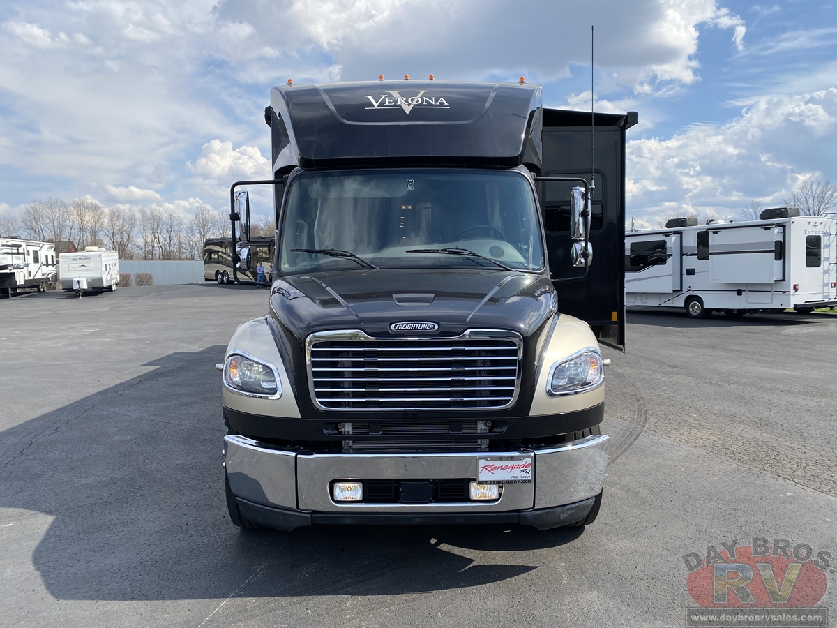 Verona is a city famous for its beauty and timeless elegance. Renegade’s Verona motorhome possesses its own refined splendor and represents our pursuit to infuse travel-friendly luxury into every detail of these road legends. A host of expertly engineered features creates an inviting living space that also boasts the functionality that active families demand. And continuing the Renegade legacy of inspired performance, the Freightliner M2 chassis delivers 20,000 lbs. of trailer towing capacity.