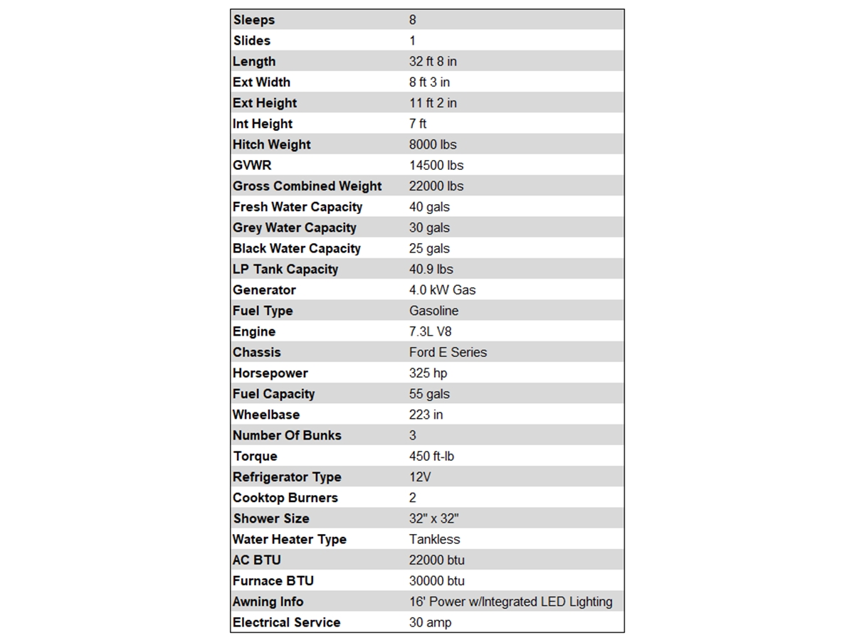 - Ford® E-Series Chassis - 7.3L V8, 325HP 450 lb-ft Torque with TPM's