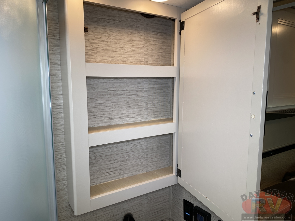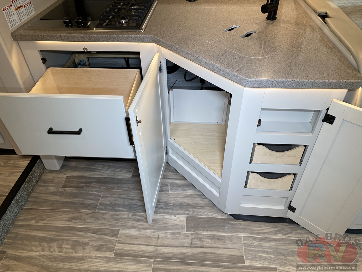 Organizing an RV is simple when you have the Four Winds MEGA-Storage™ compartment on select floor plans. Pack up with ease with plenty of room. Enjoying the outdoors is the best part of RVing. Some models come with a portable table in the MEGA-Storage that’s perfect for lunch outdoors. If you need some shade, simply extend the powered patio awning with LED lighting. Some models offer an exterior TV with a Bluetooth® soundbar and radio or an exterior pull-out kitchen with a griddle.